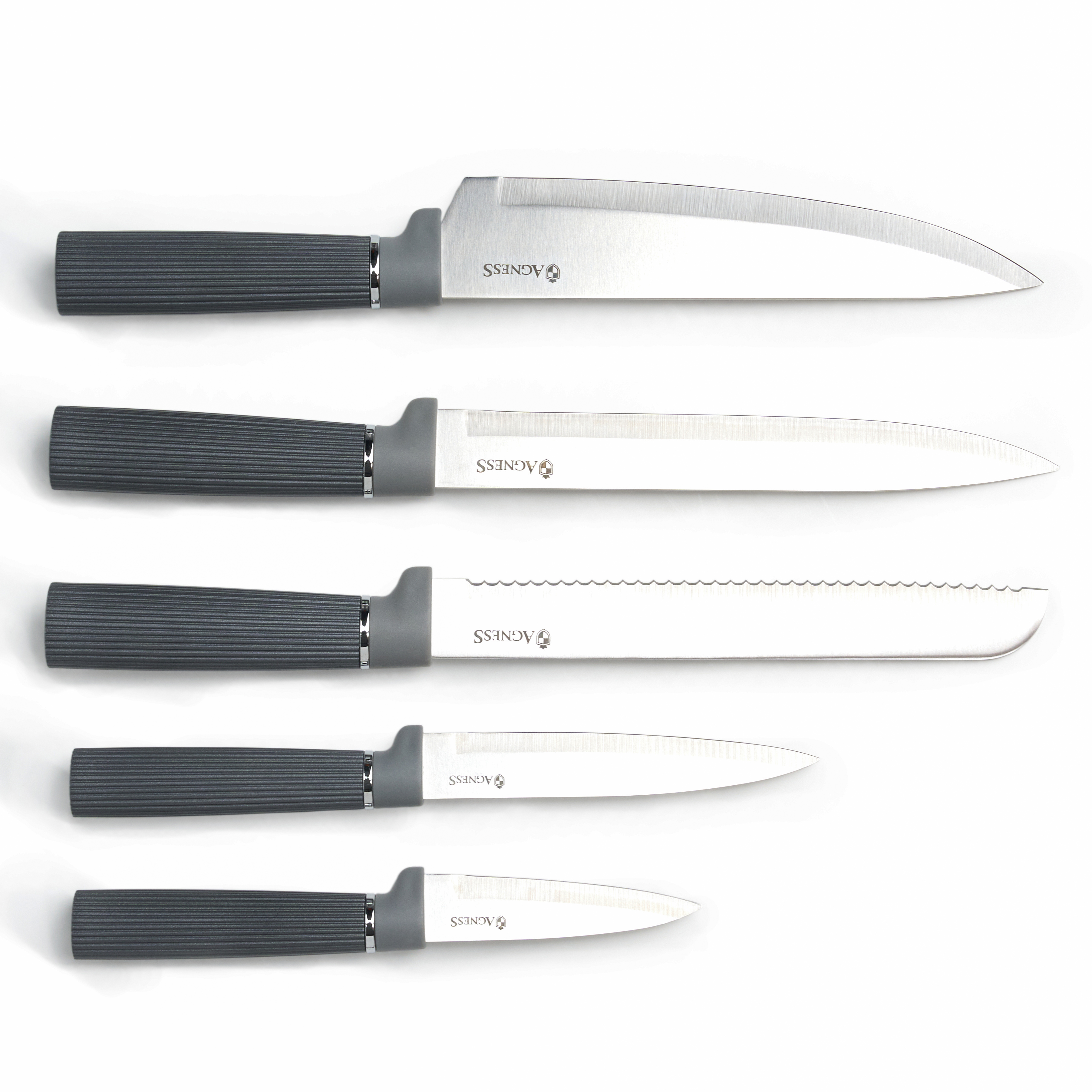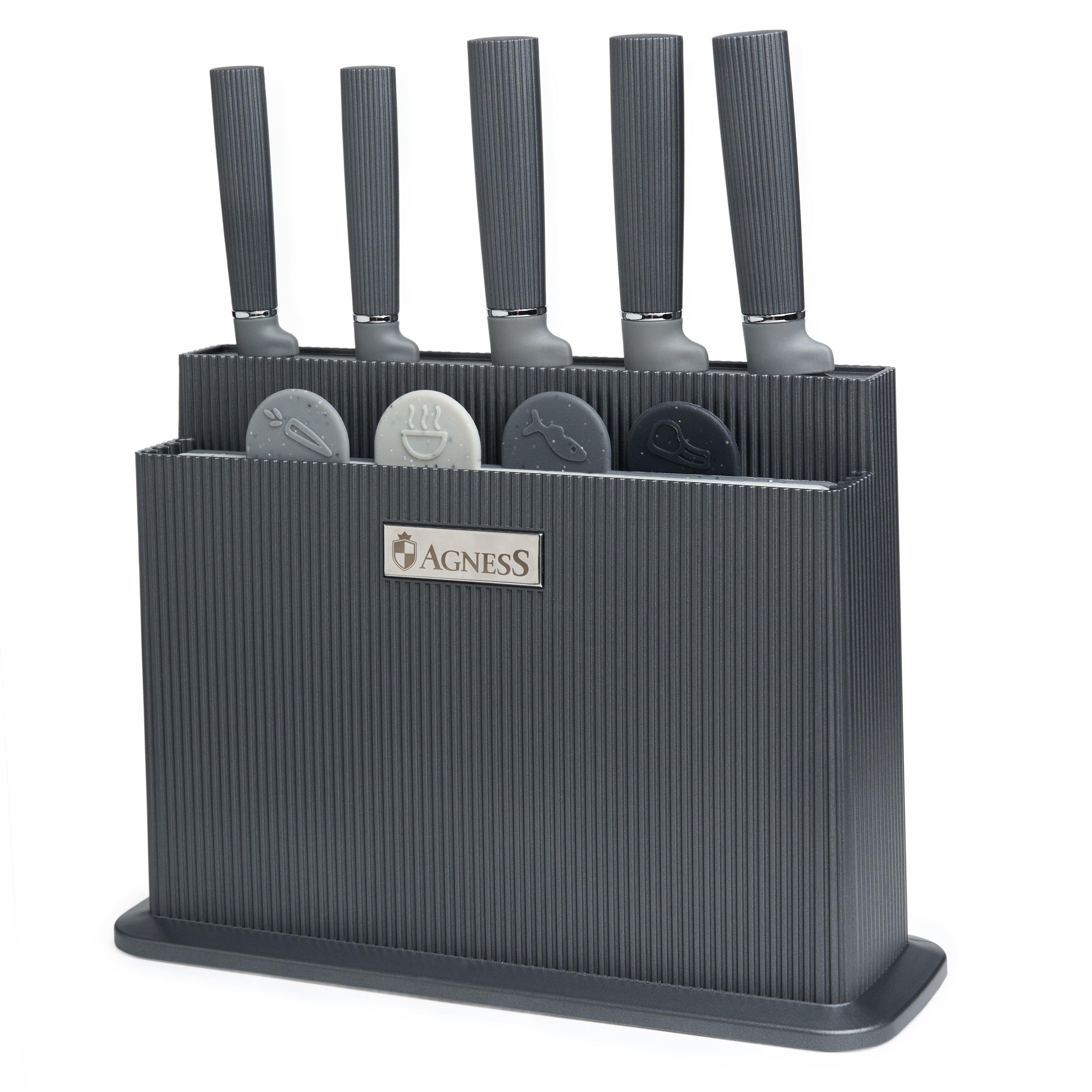 НАБОР AGNESS ИЗ 10ПР: 5 НОЖЕЙ, 4 ДОСКИ И ПОДСТАВКА, ЦВЕТ: ЧЕРНО-СЕРЫЙ