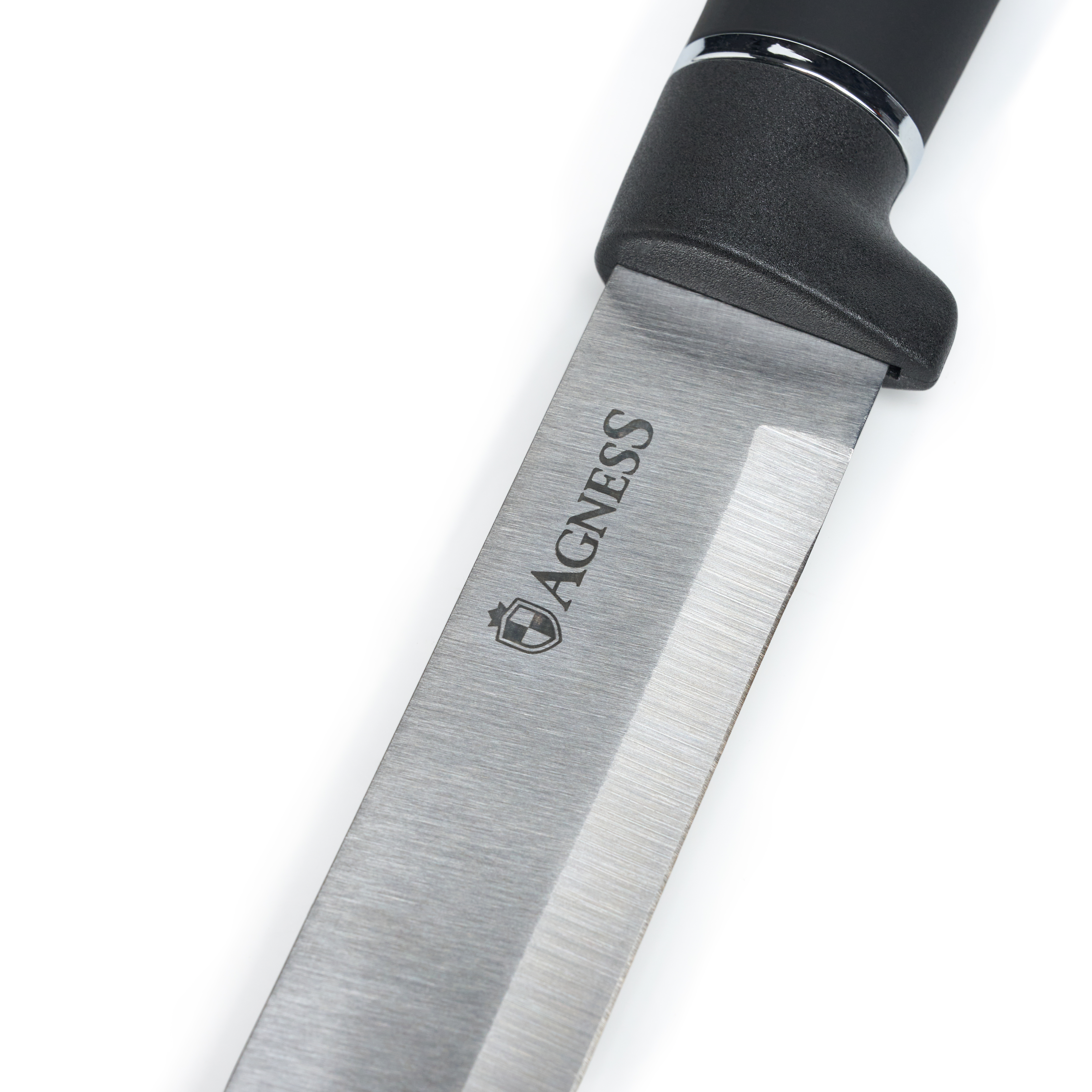 НАБОР AGNESS ИЗ 11ПР:5 НОЖЕЙ,ПОЛОВНИК,ЛОПАТКА,ШУМОВКА,ПОДСТАВКА,НОЖЕТОЧКА,НОЖНИЦЫ,ЧЕРНЫЙ МРАМОР/СЕРЫ