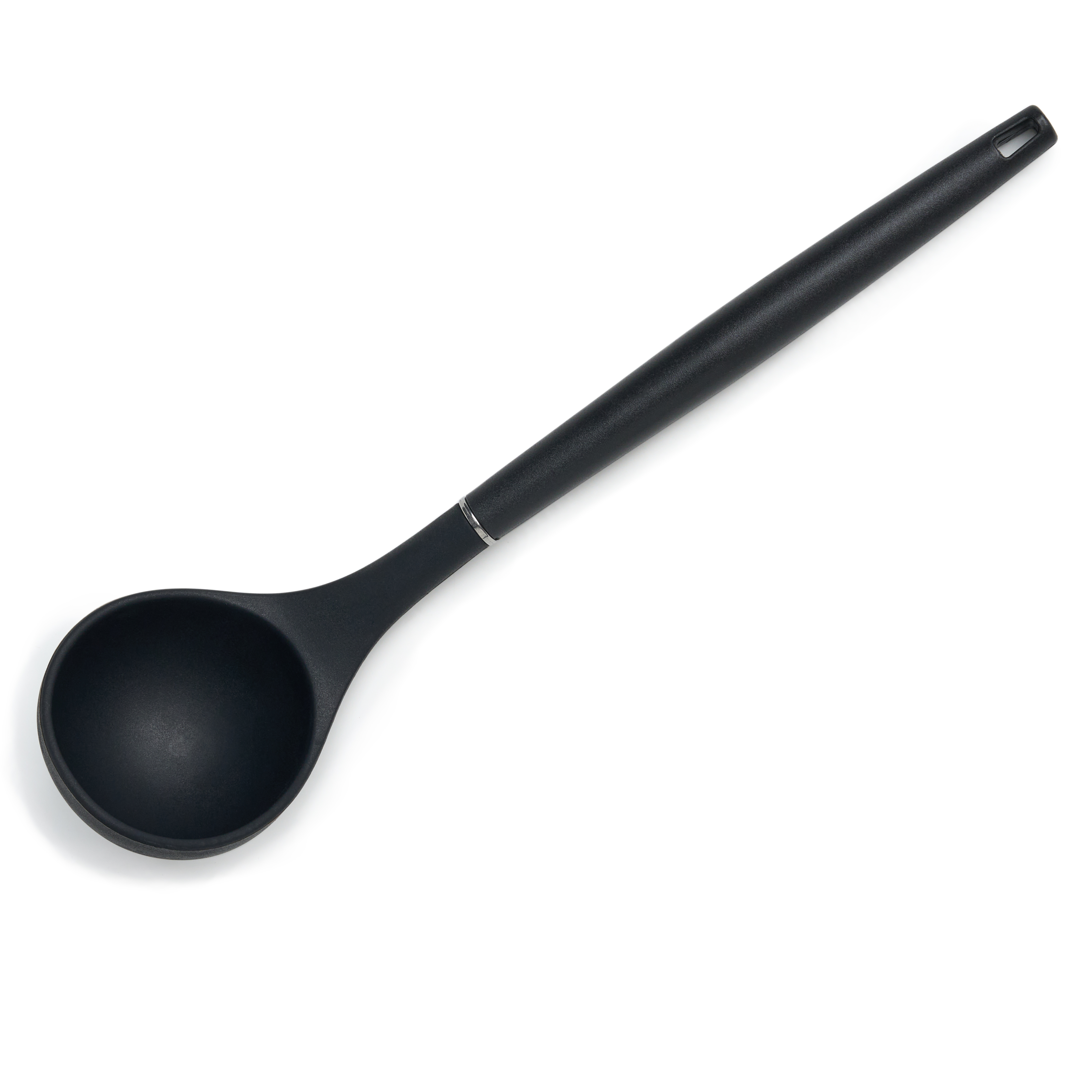 Состав набора: нож поварско 19,5см, нож для хлеба 20см, разделочный нож 20см, нож универсальный 12,5см, нож для чистки овощей 8,9 см, ножницы кухонные, половник 31,5см, шумовка 32см, лопатка 32см, ножеточка, подставка.