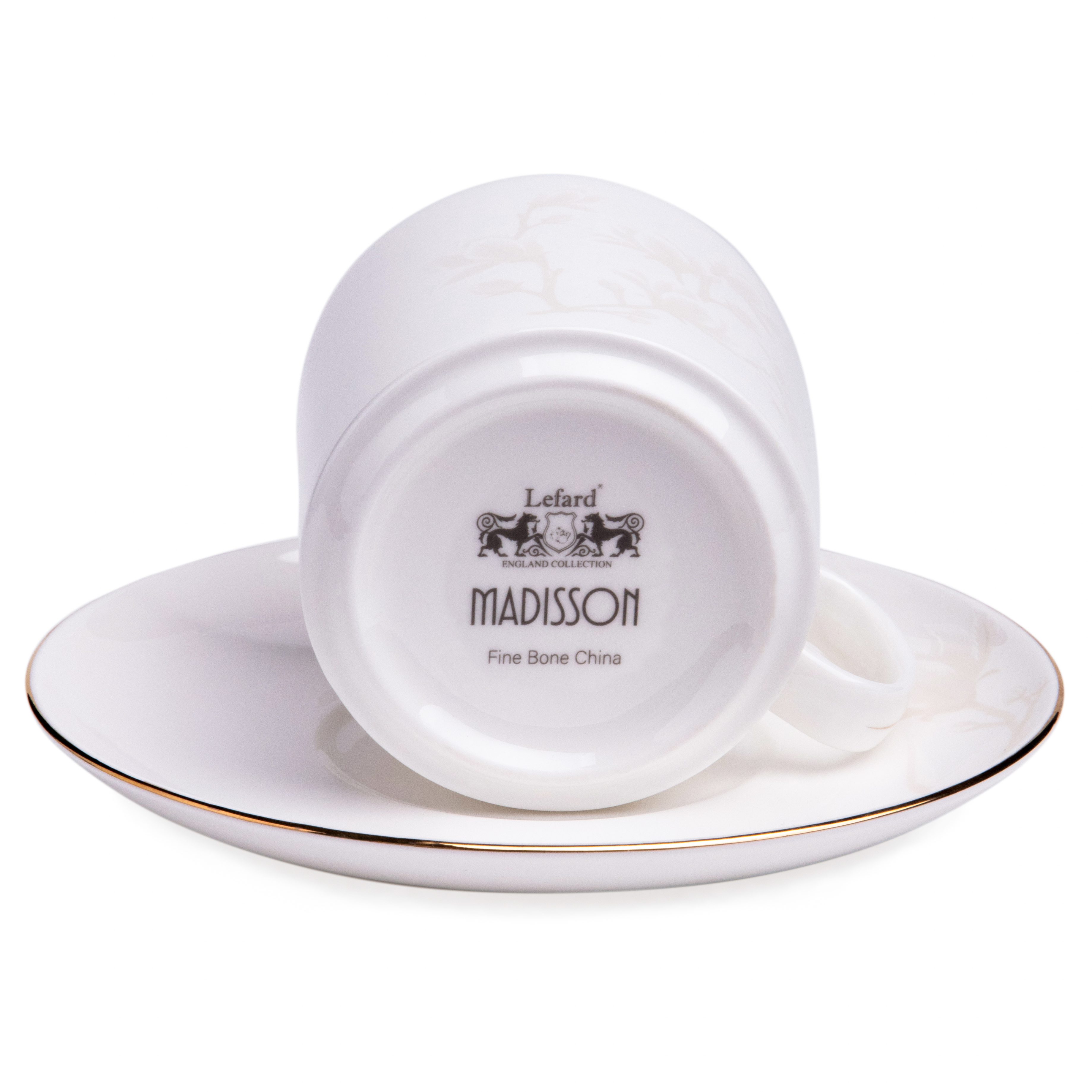 ТМ LEFARD предлагает коллекции столовой посуды из костяного фарфора. "Медиссон" не оставит равнодушным и украсит любой праздничный стол. Ваш стол стильный и элегантный, сверкающий белый с серебристой магнолией и тонкой золотой окантовкой. 45 % костной золы. Изделия тонкие, прочные и прозрачные. Фарфор мягкого молочного цвета. Изготовление изделий из костяного фарфора не поддаётся автоматизации, производство таких вещей возможно только с использованием ручного труда. Не рекомендуется использовать в микроволной печи, мыть в посудомоечной машине.