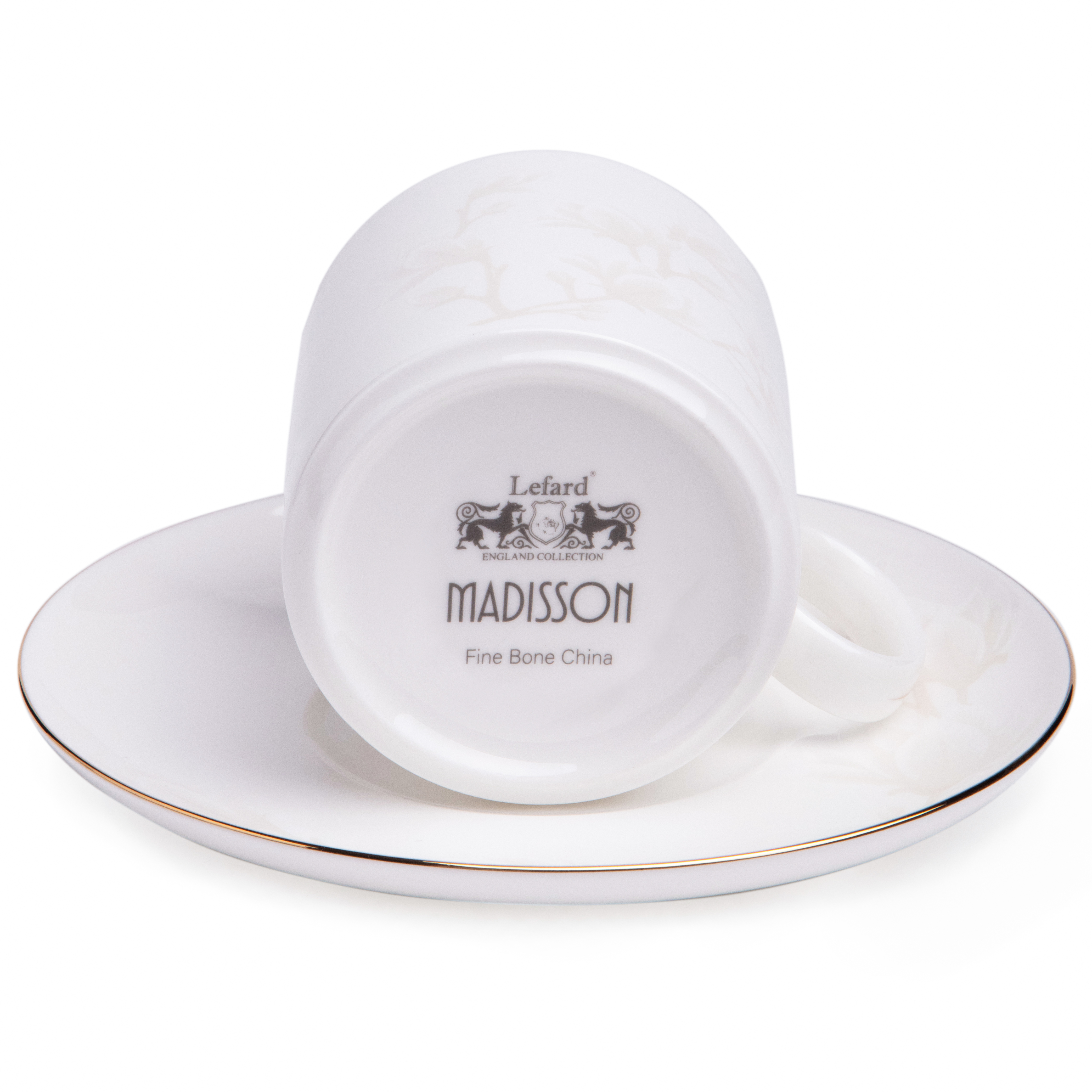 ТМ LEFARD предлагает коллекции столовой посуды из костяного фарфора. "Медиссон" не оставит равнодушным и украсит любой праздничный стол. Ваш стол стильный и элегантный, сверкающий белый с серебристой магнолией и тонкой золотой окантовкой. 45 % костной золы. Изделия тонкие, прочные и прозрачные. Фарфор мягкого молочного цвета. Изготовление изделий из костяного фарфора не поддаётся автоматизации, производство таких вещей возможно только с использованием ручного труда. Не рекомендуется использовать в микроволной печи, мыть в посудомоечной машине.
