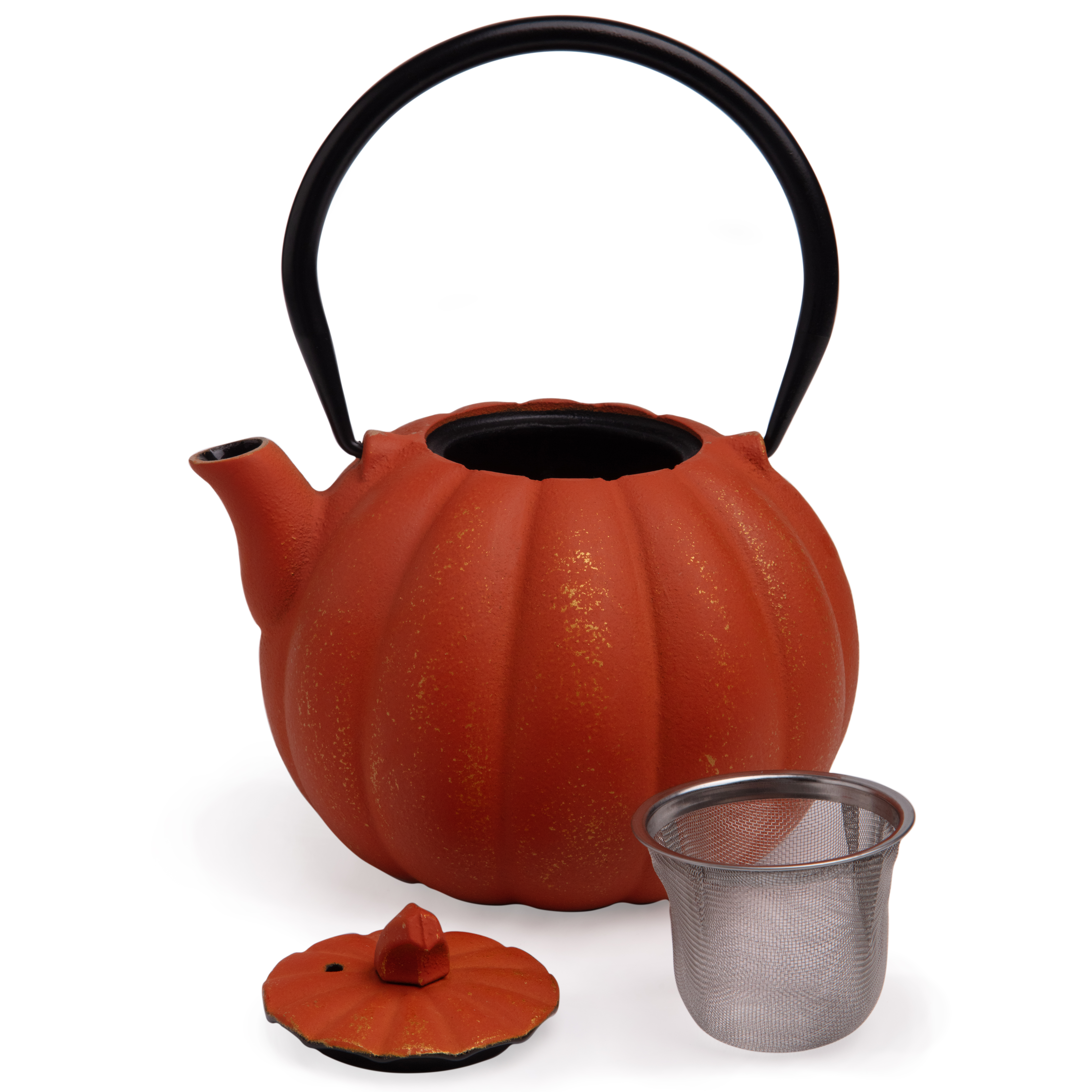 Устройте себе настоящую чайную церемонию с традиционным чугунным заварочным чайником. Внутренняя поверхность чайника покрыта эмалью, которая надежно защищает чайник от ржавчины и препятствует возникновению металлического привкуса у напитка, в связи с чем чайник идеально подойдет для заваривания Вашего любимого пуэра, улуна, черного, травяного или ароматизированного чая, раскрывая всю полноту вкуса напитка. В комплекте идет ситечко, которое надежно удерживает заварку. Не смотря на свои маленькие компактные размеры, этот чайник вмещает в себя 900 мл, а его презентабельный внешний вид будет выигрышно смотреться на любом празднике.