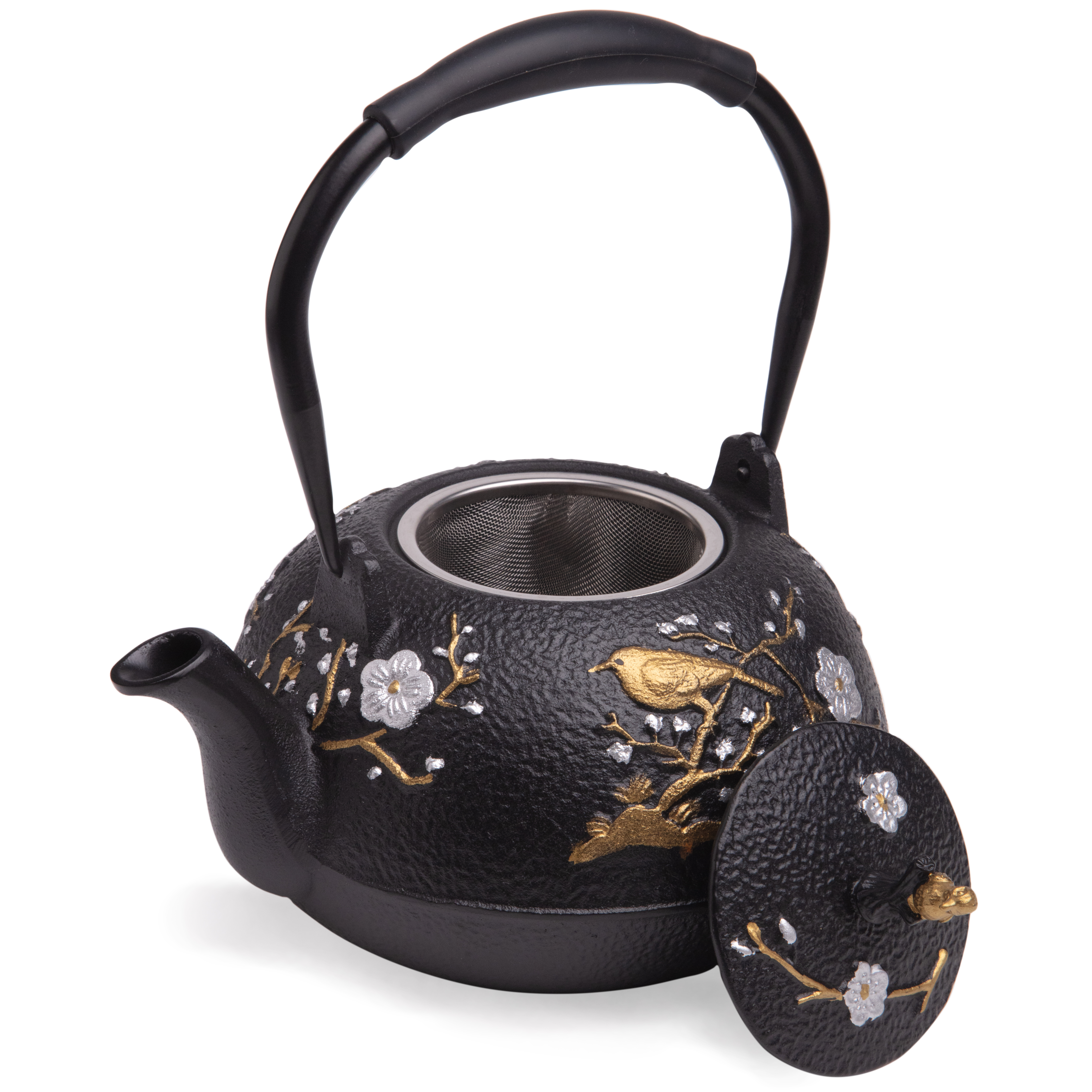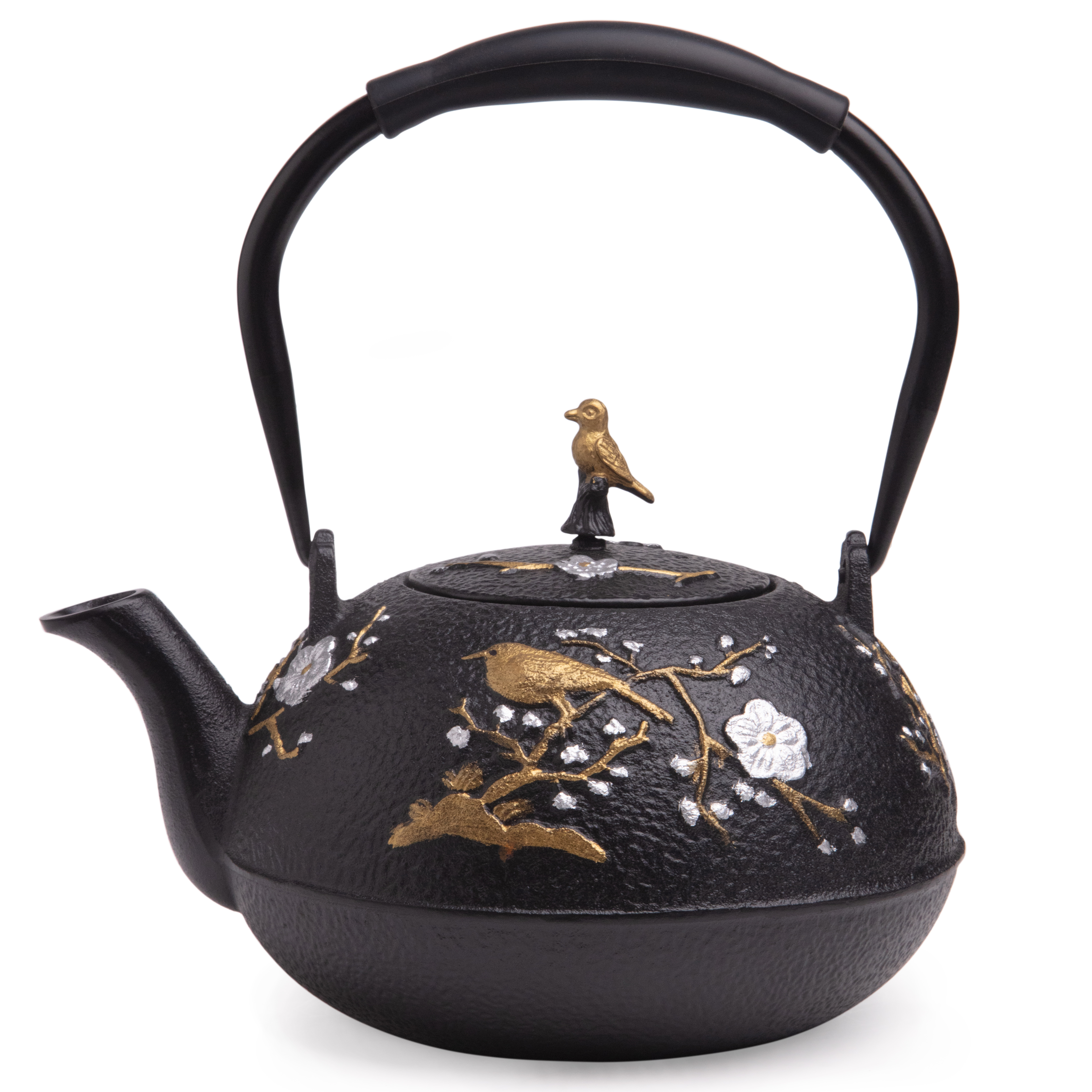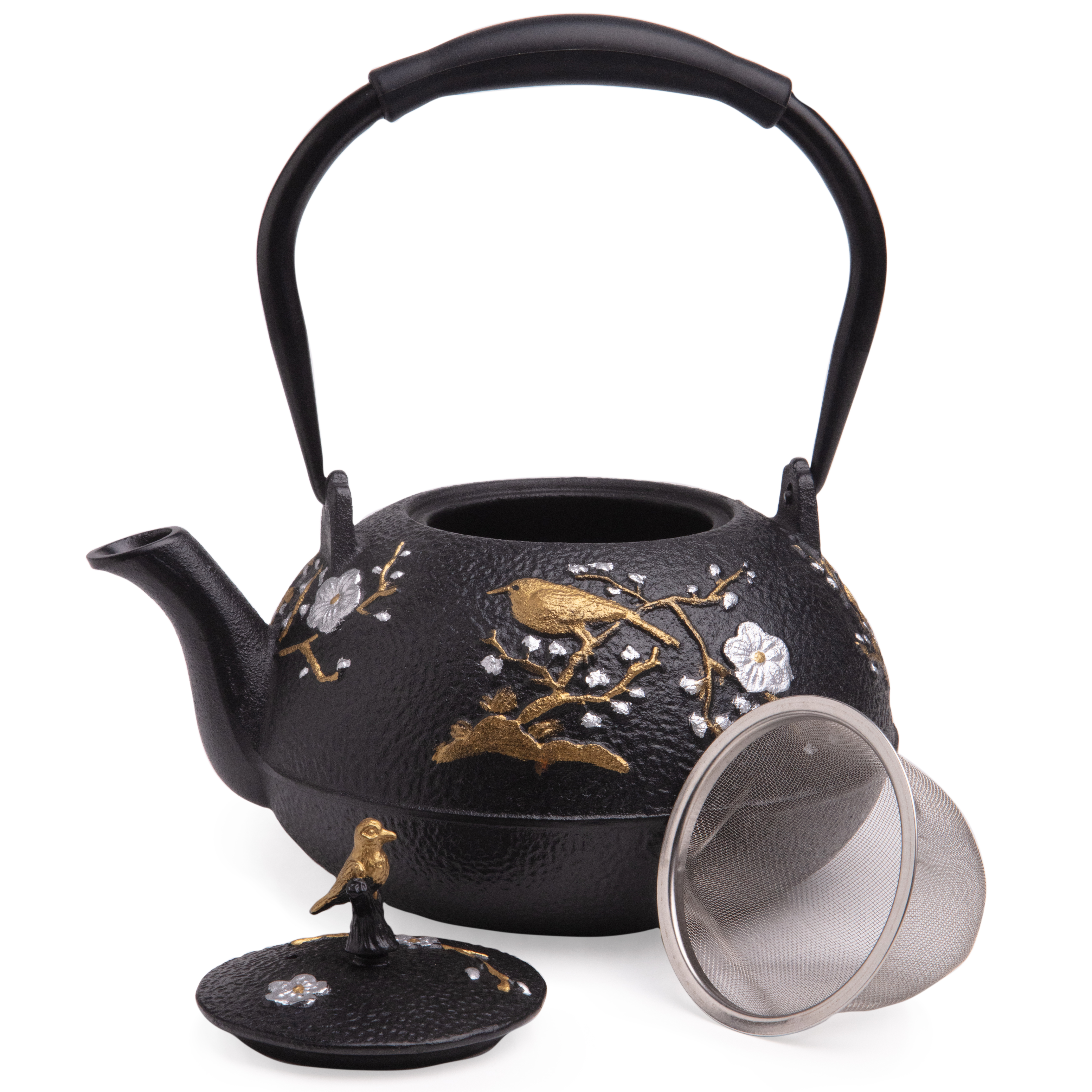 Устройте себе настоящую чайную церемонию с традиционным чугунным заварочным чайником. Внутренняя поверхность чайника покрыта эмалью, которая надежно защищает чайник от ржавчины и препятствует возникновению металлического привкуса у напитка, в связи с чем чайник идеально подойдет для заваривания Вашего любимого пуэра, улуна, черного, травяного или ароматизированного чая, раскрывая всю полноту вкуса напитка. В комплекте идет ситечко, которое надежно удерживает заварку. Не смотря на свои маленькие компактные размеры, этот чайник вмещает в себя 1200 мл, а его презентабельный внешний вид будет выигрышно смотреться на любом празднике.