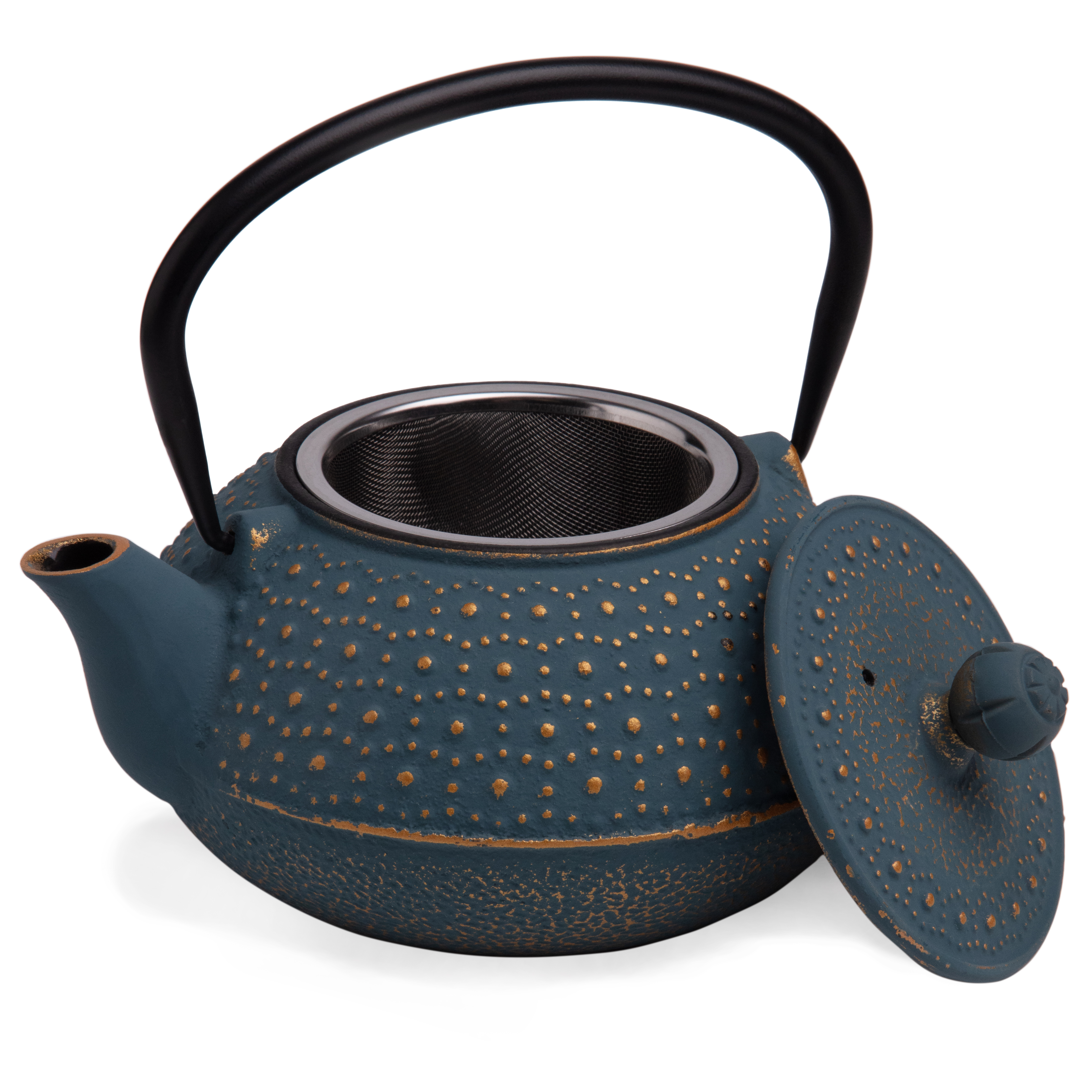 Устройте себе настоящую чайную церемонию с традиционным чугунным заварочным чайником. Внутренняя поверхность чайника покрыта эмалью, которая надежно защищает чайник от ржавчины и препятствует возникновению металлического привкуса у напитка, в связи с чем чайник идеально подойдет для заваривания Вашего любимого пуэра, улуна, черного, травяного или ароматизированного чая, раскрывая всю полноту вкуса напитка. В комплекте идет ситечко, которое надежно удерживает заварку. Не смотря на свои маленькие компактные размеры, этот чайник вмещает в себя 800 мл, а его презентабельный внешний вид будет выигрышно смотреться на любом празднике.