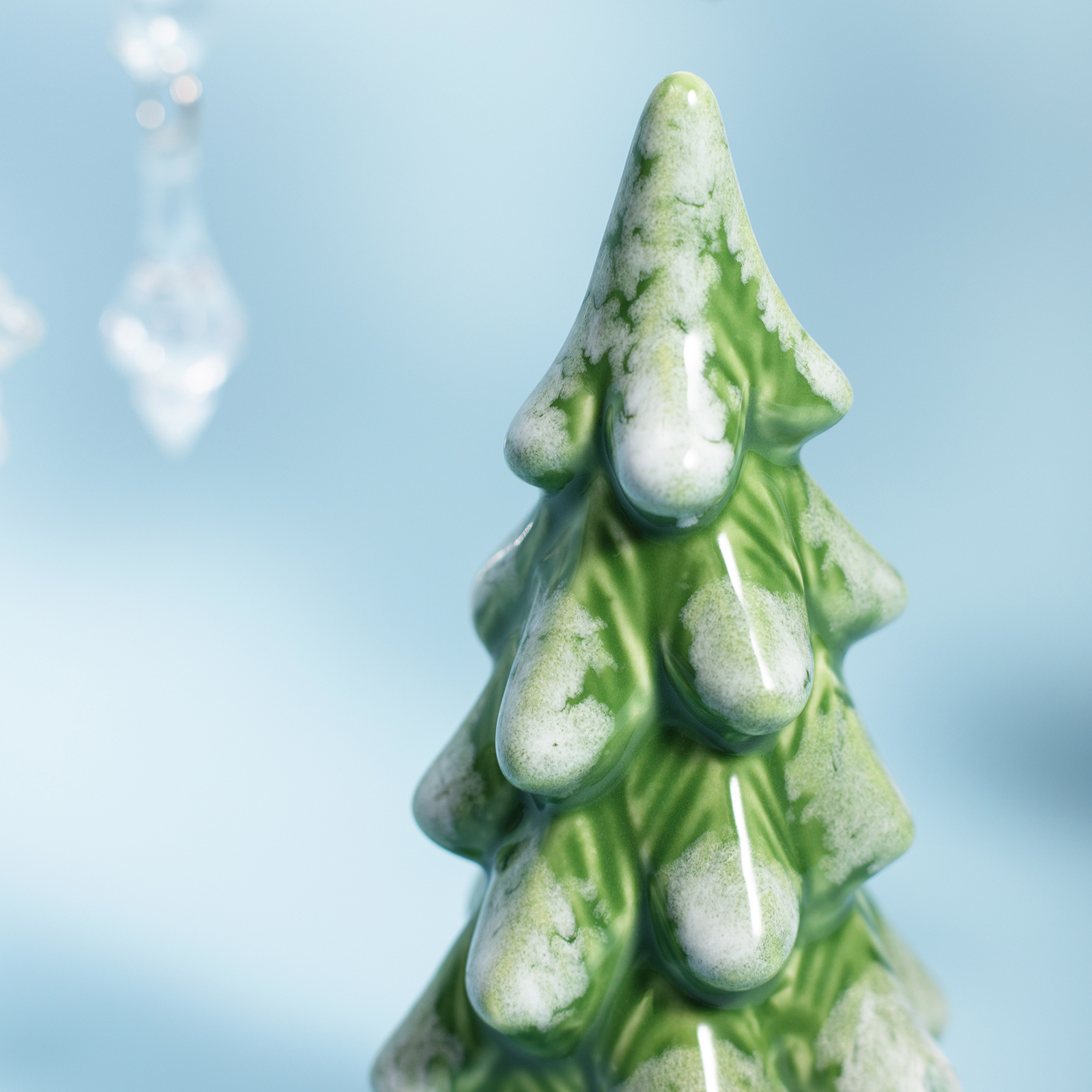 Пусть эта изящная фигурка станет вашим маленьким чудом — символом зимней сказки, спокойствия и праздничного настроения. Изготовленная из фарфора — материала, который веками воплощает изящество и утончённость, — эта фигурка не просто декор. Это миниатюрное произведение искусства, созданное для тех, кто ценит детали. Холодный блеск белого покрытия контрастирует с глубоким, живым зелёным — как будто природа сама решила замерзнуть в момент совершенства.