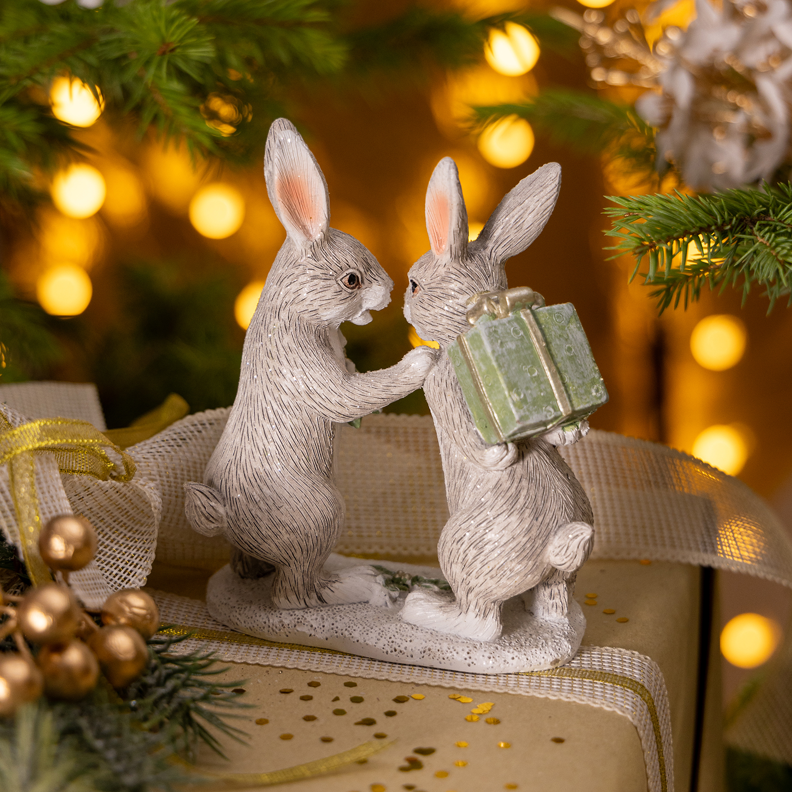 Статуэтка «Кролики» — нежная зимняя история в деталях.