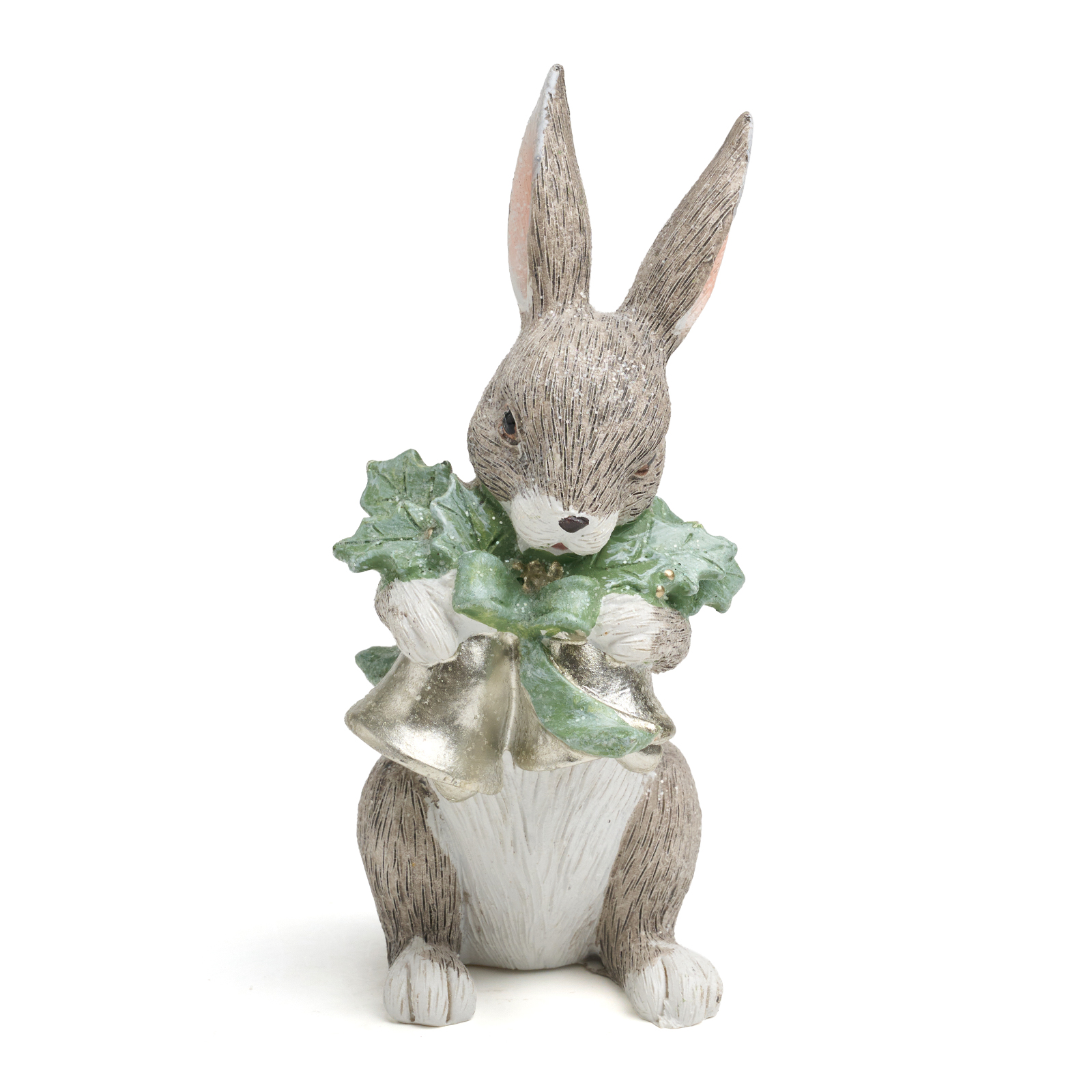 Изготовлена из прочного полистоуна — материал передаёт нежную текстуру шерсти, едва заметный румянец на мордочке и даже блеск листьев. Лёгкая, но устойчивая — идеальна для полки, подоконника или рядом с ёлкой.