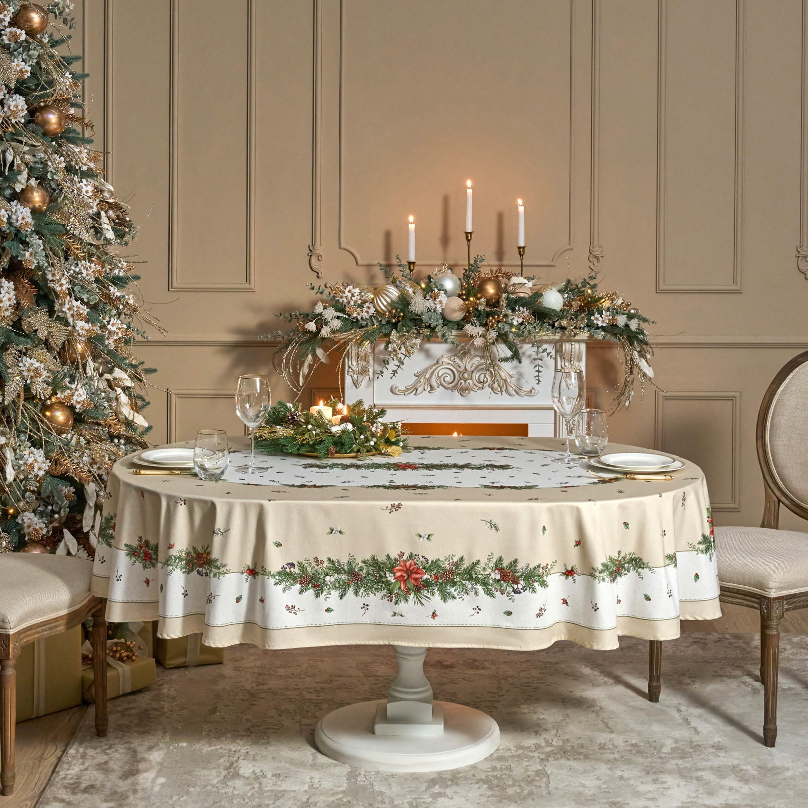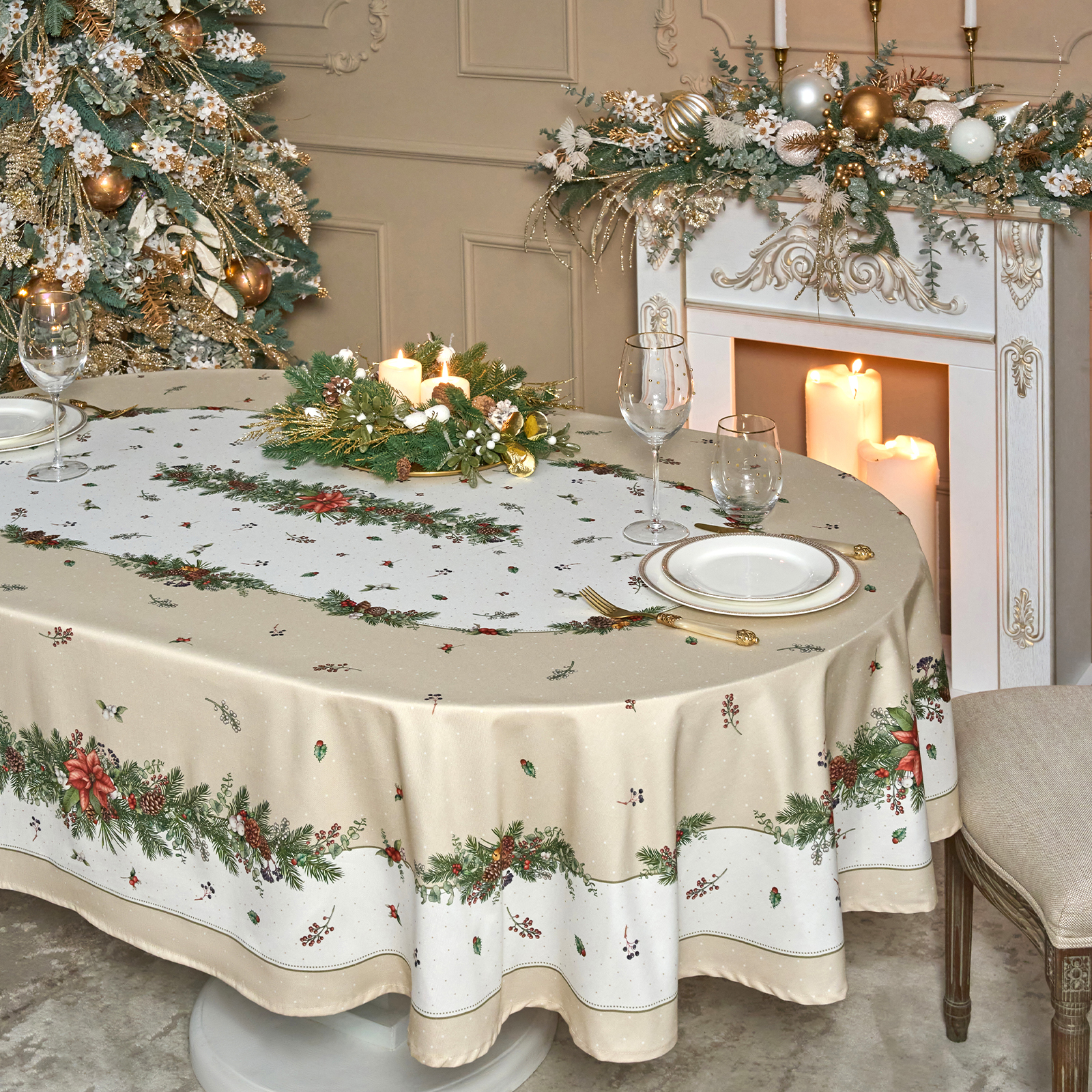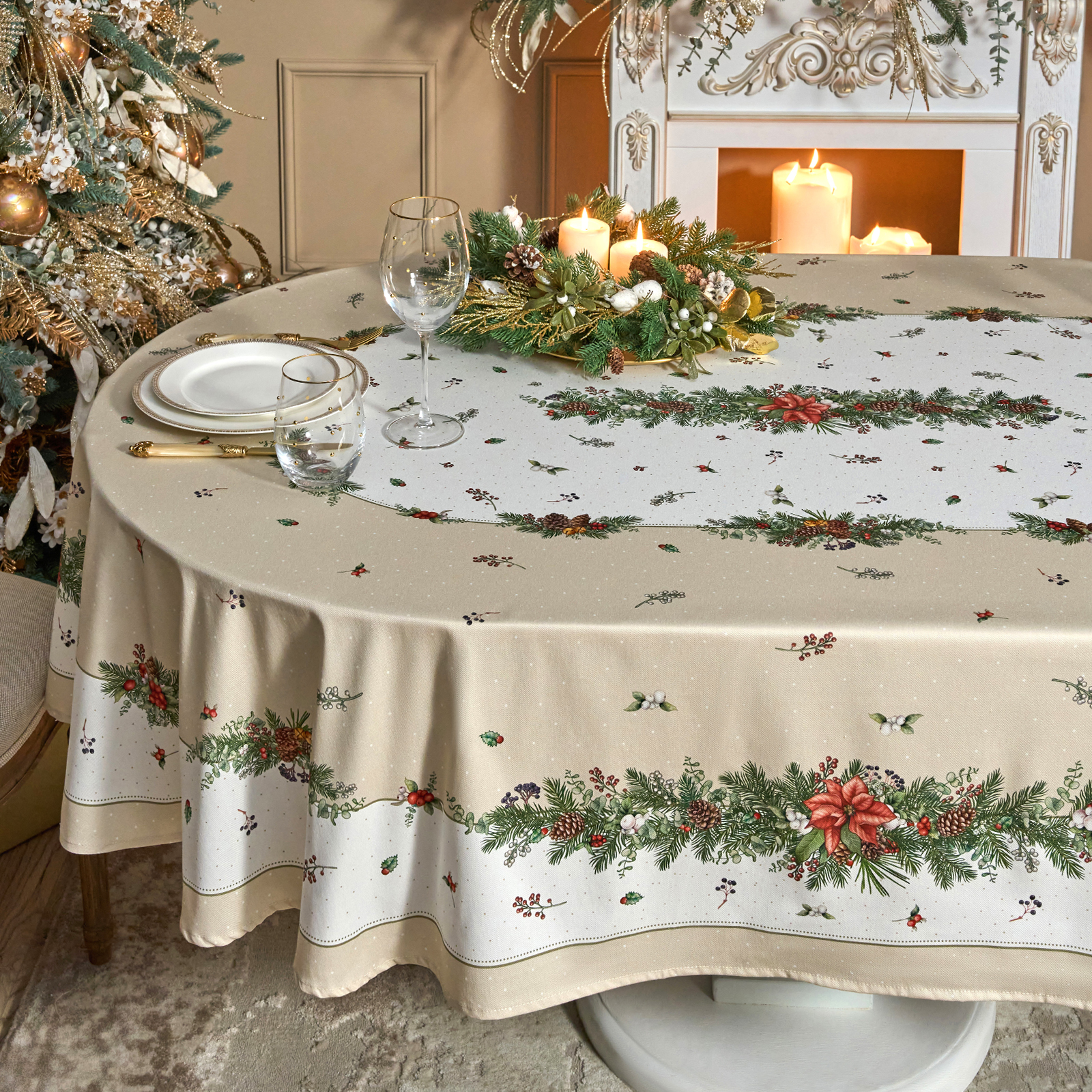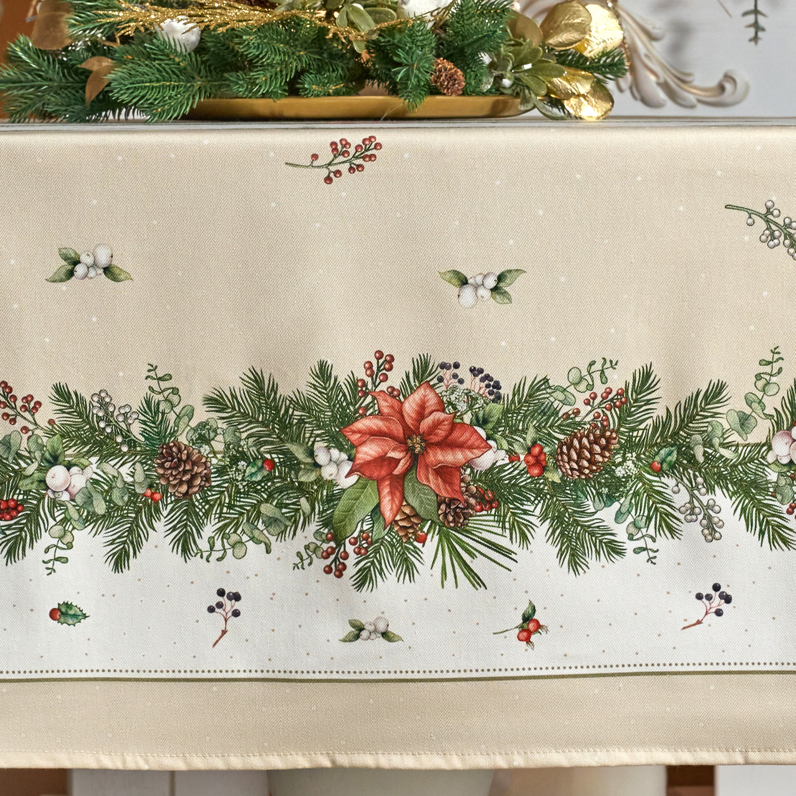 Эта новогодняя скатерть создана производителем Lefard по эксклюзивному дизайну для серии посуды "Celebration" бренда Lefard.