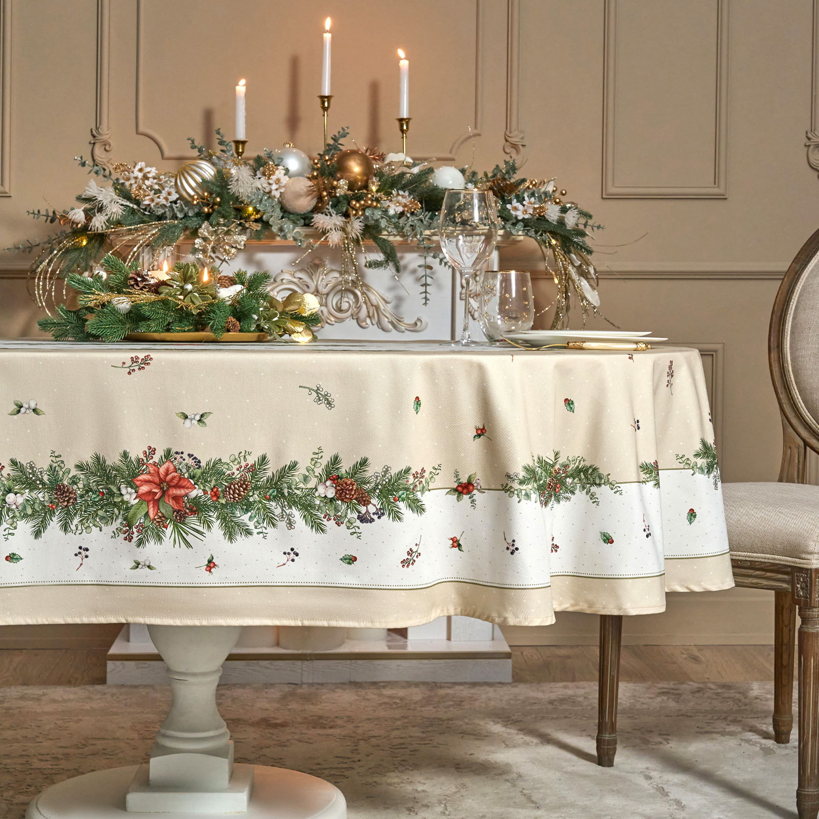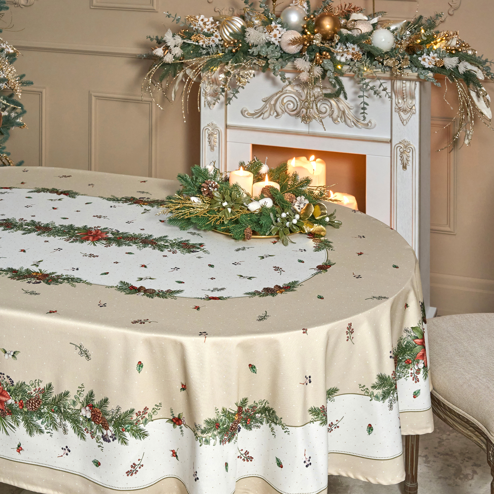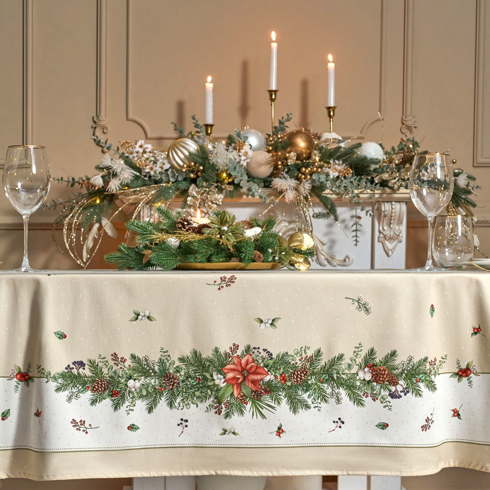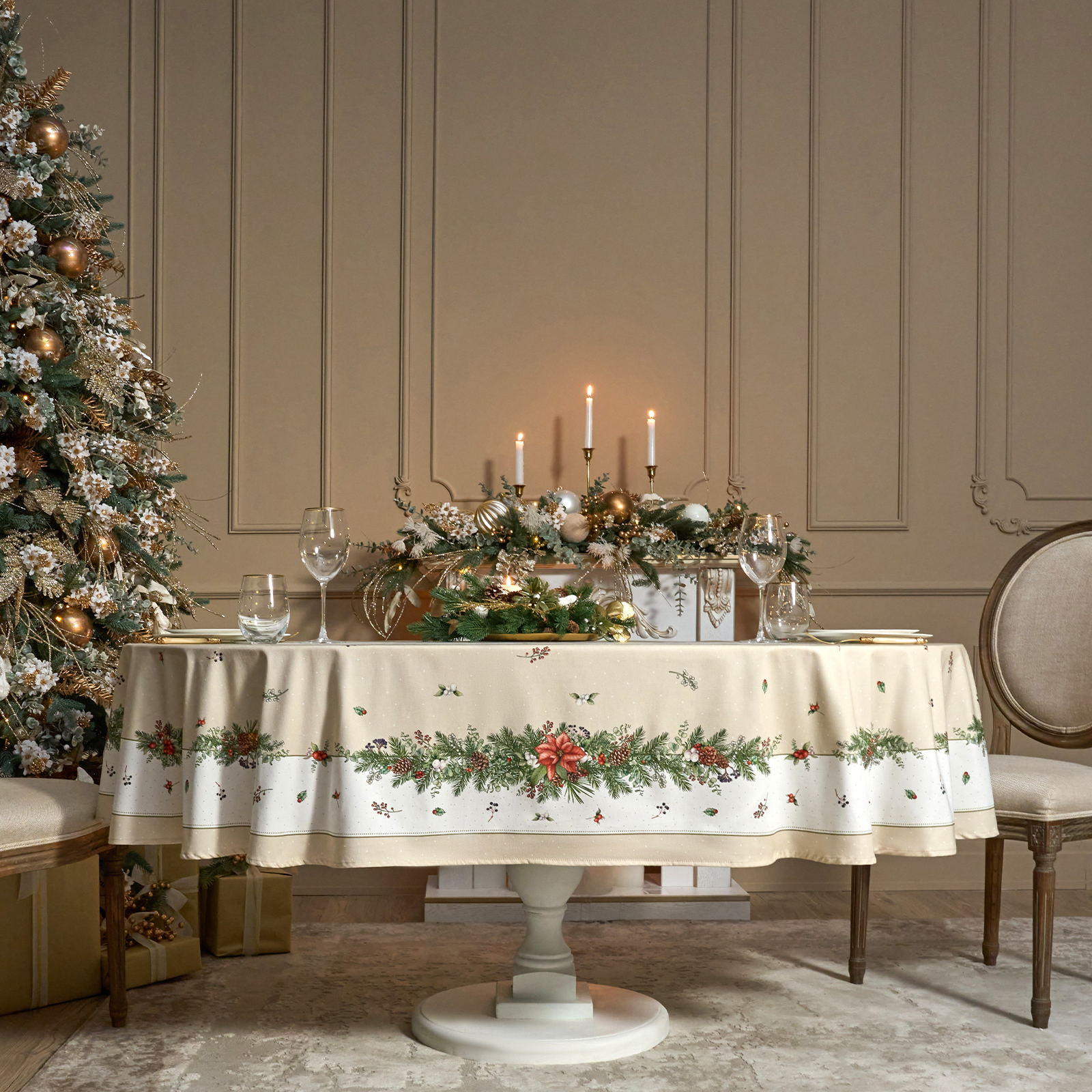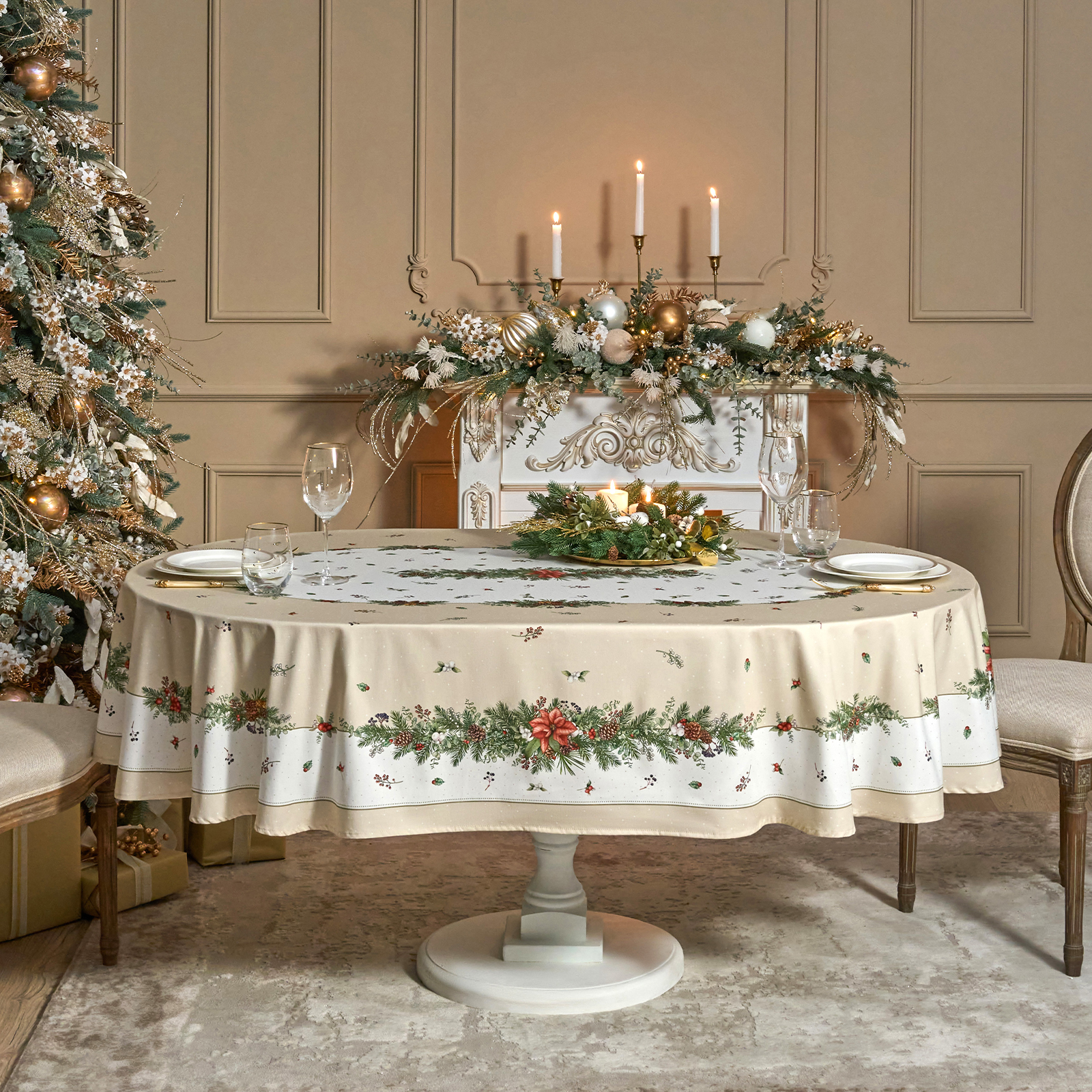 Эта новогодняя скатерть создана производителем Lefard по эксклюзивному дизайну для серии посуды "Celebration" бренда Lefard.