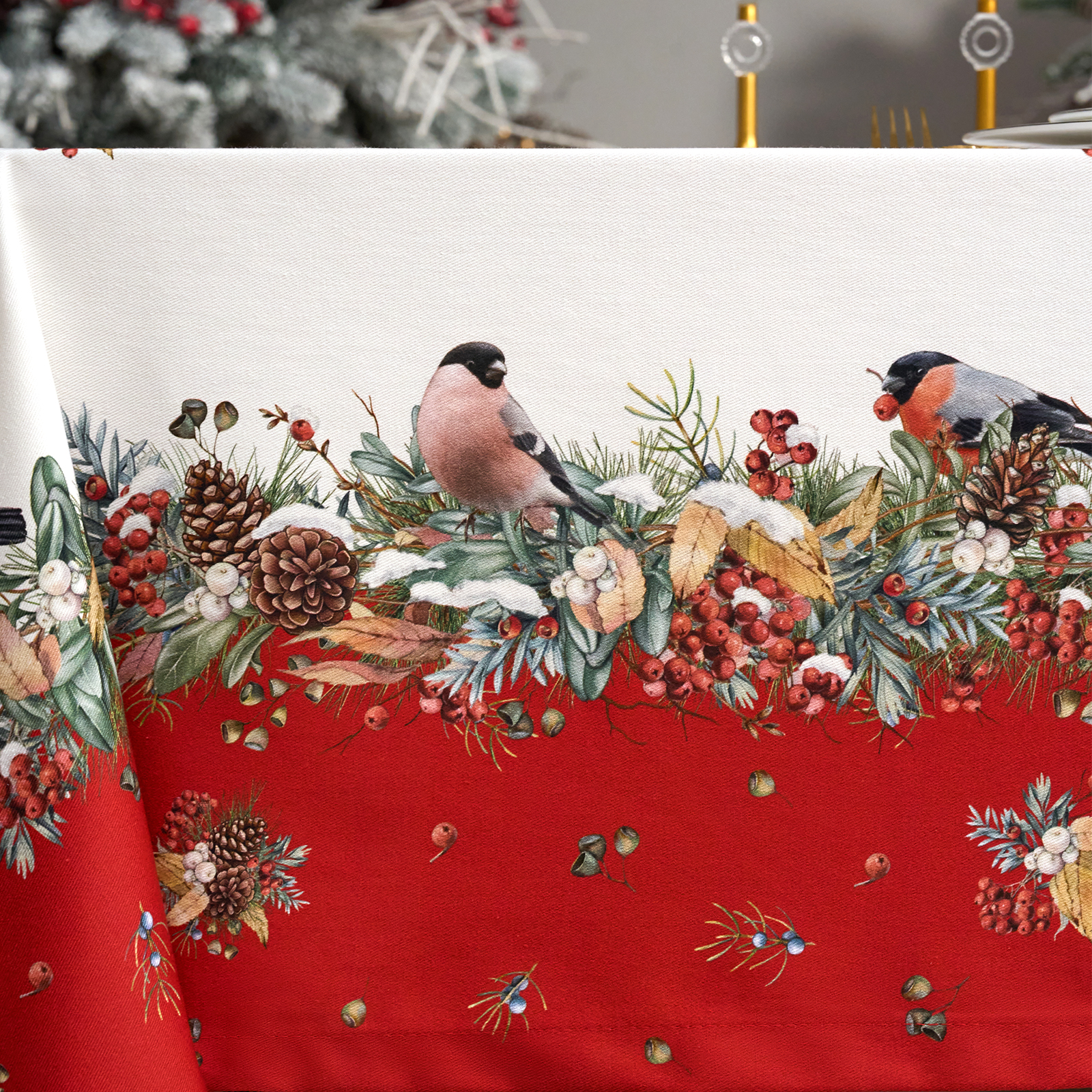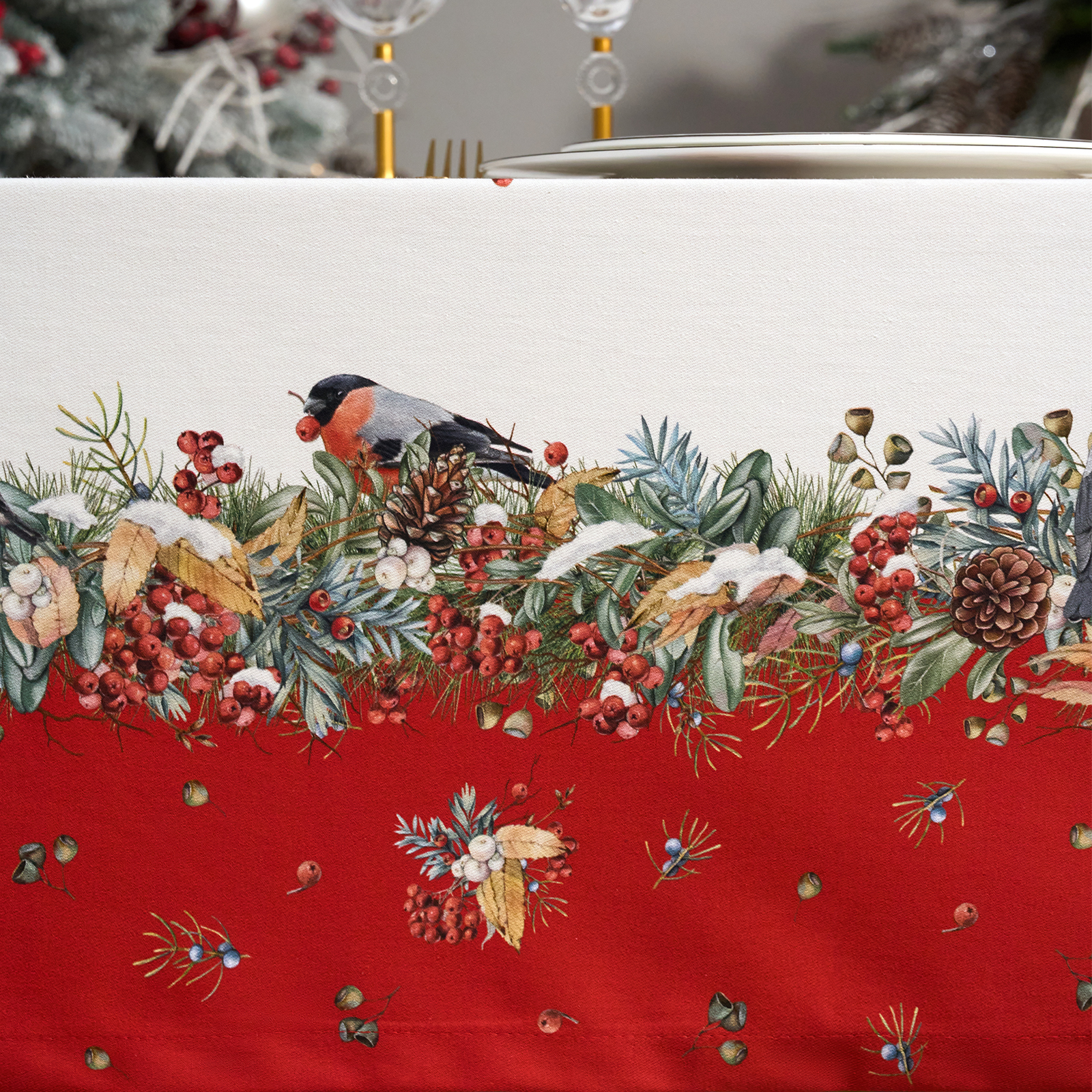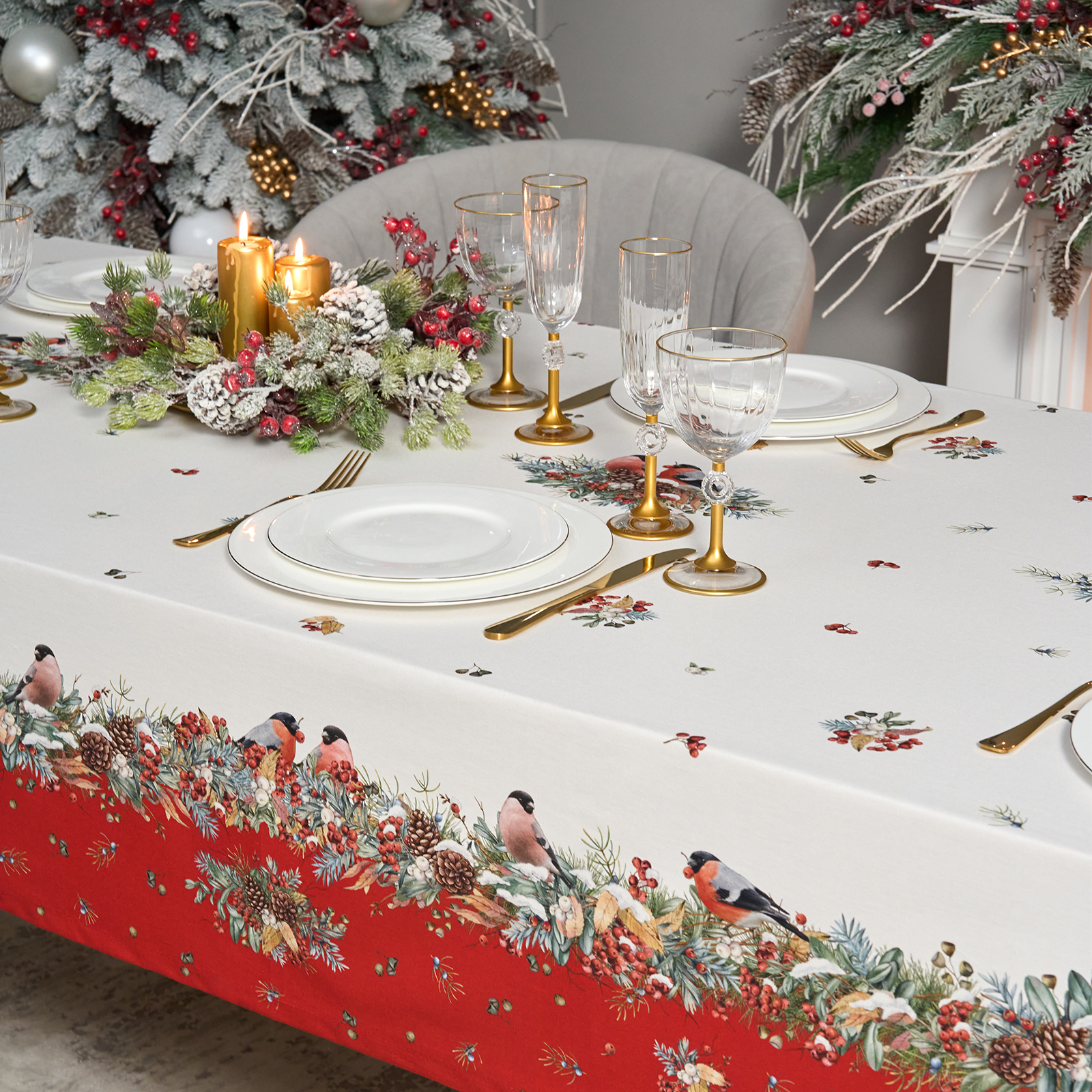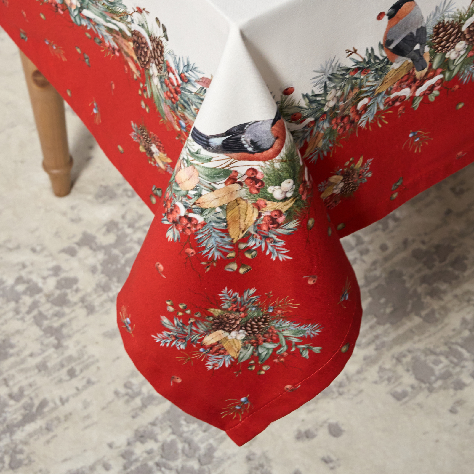 СКАТЕРТЬ "МОРОЗКО.СНЕГИРИ" 140Х180СМ, КРАСНЫЙ, 100% ХЛОПОК,ТВИЛ ПРОПИТКА