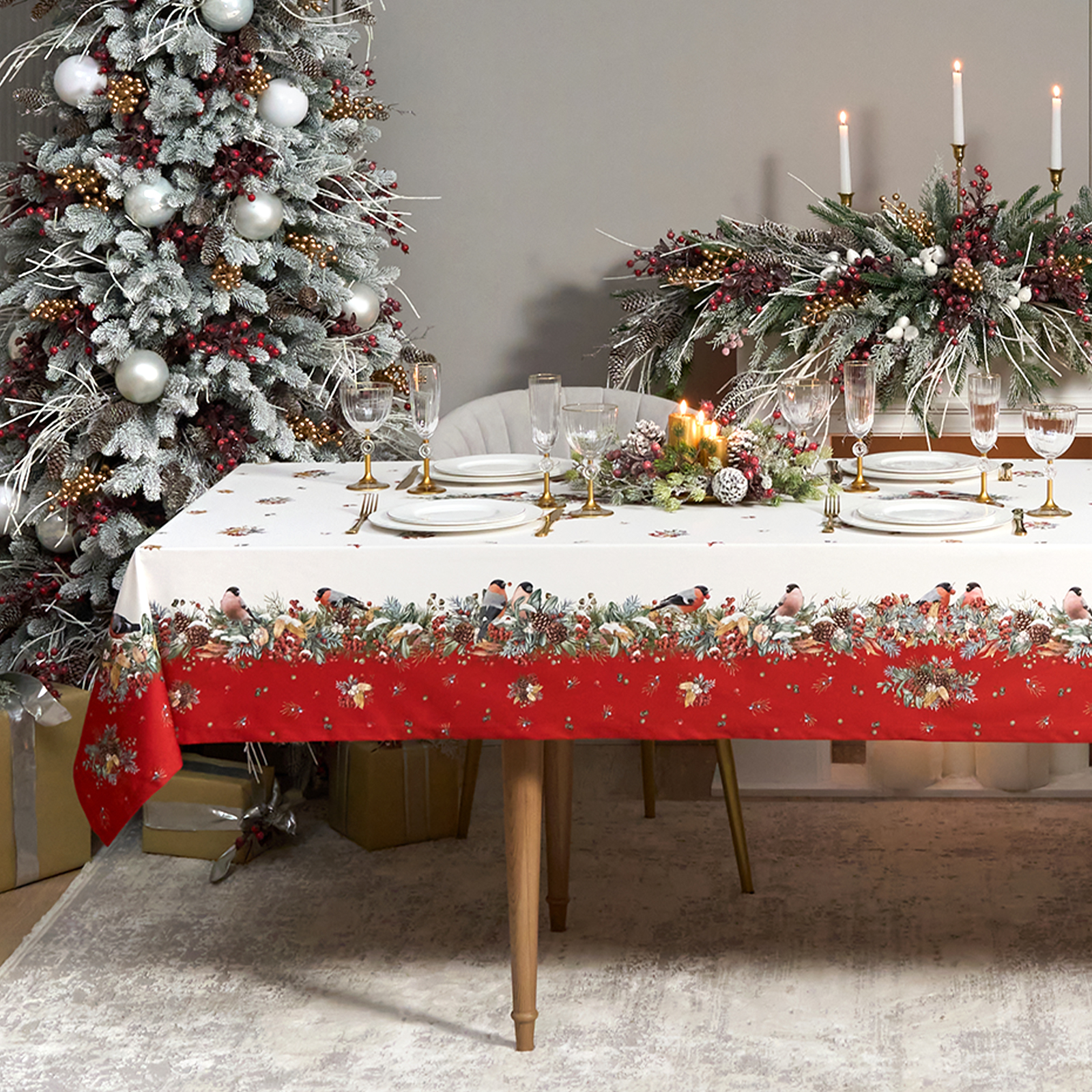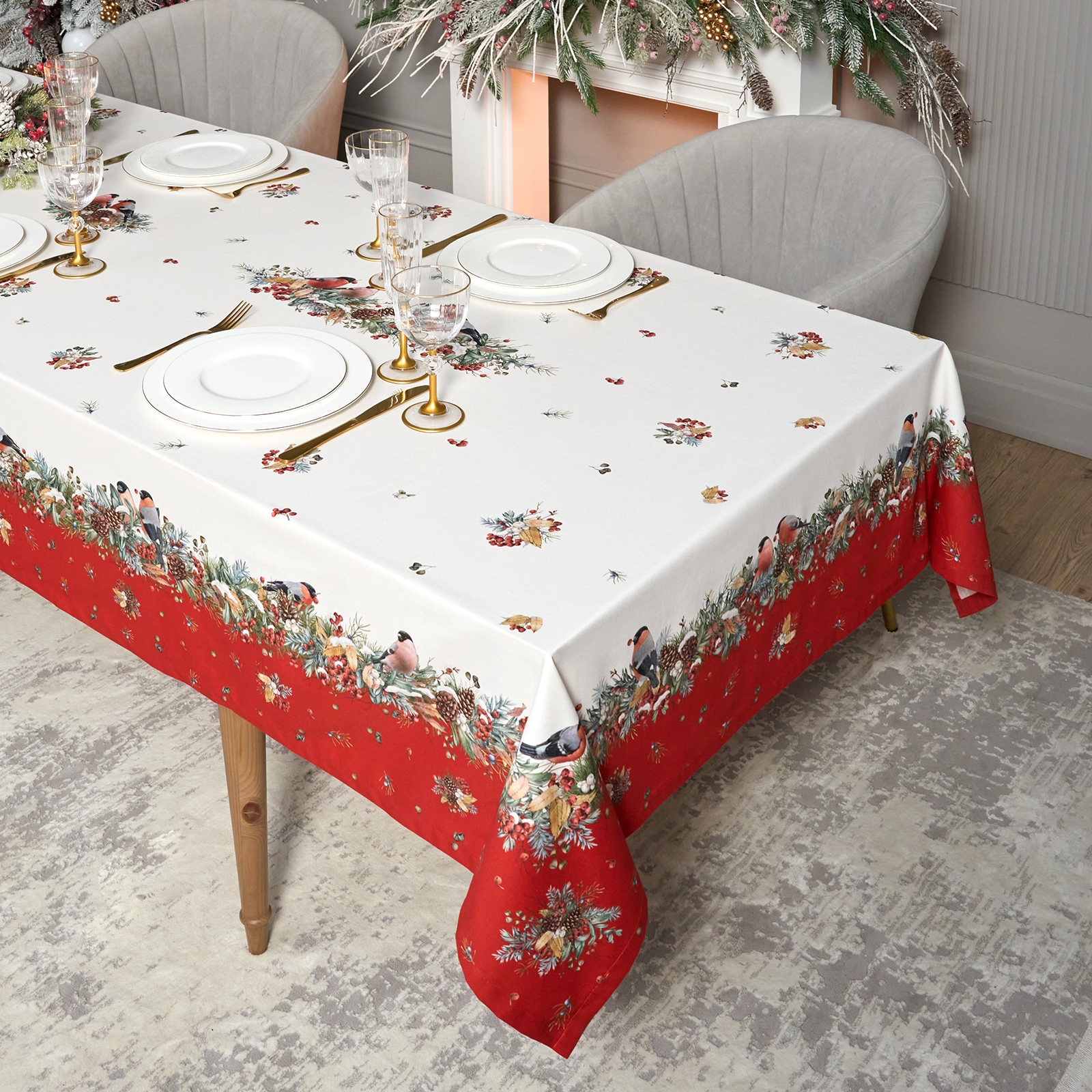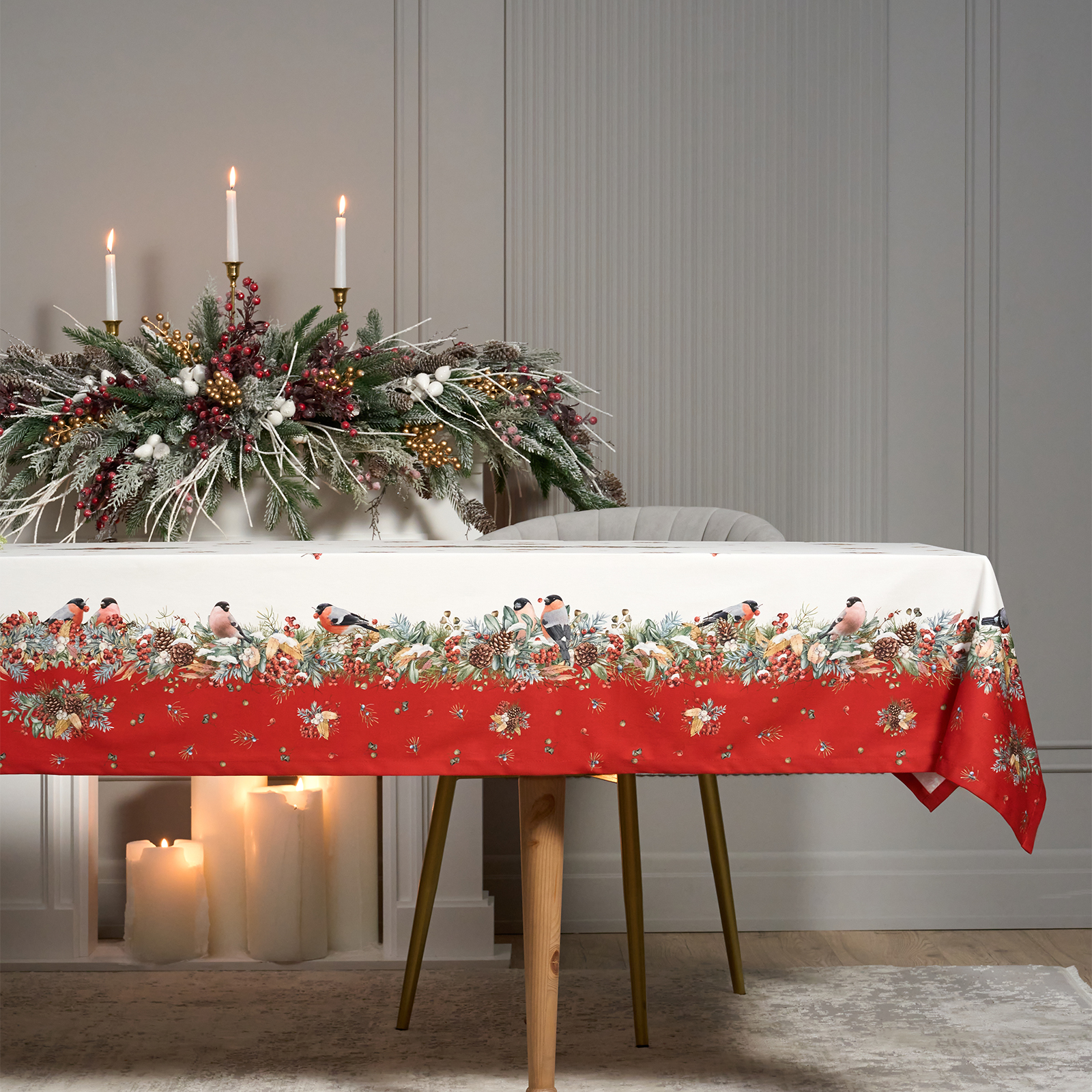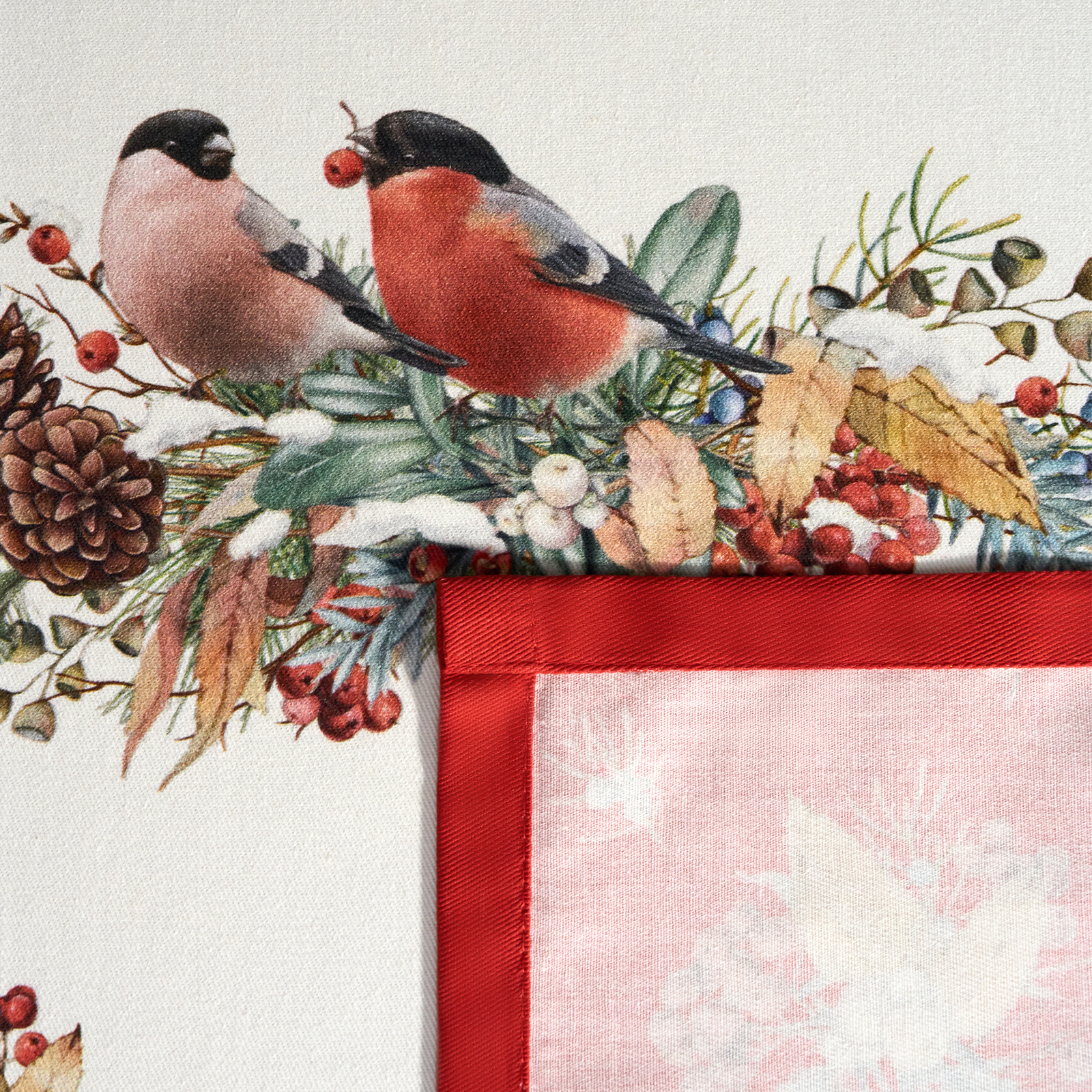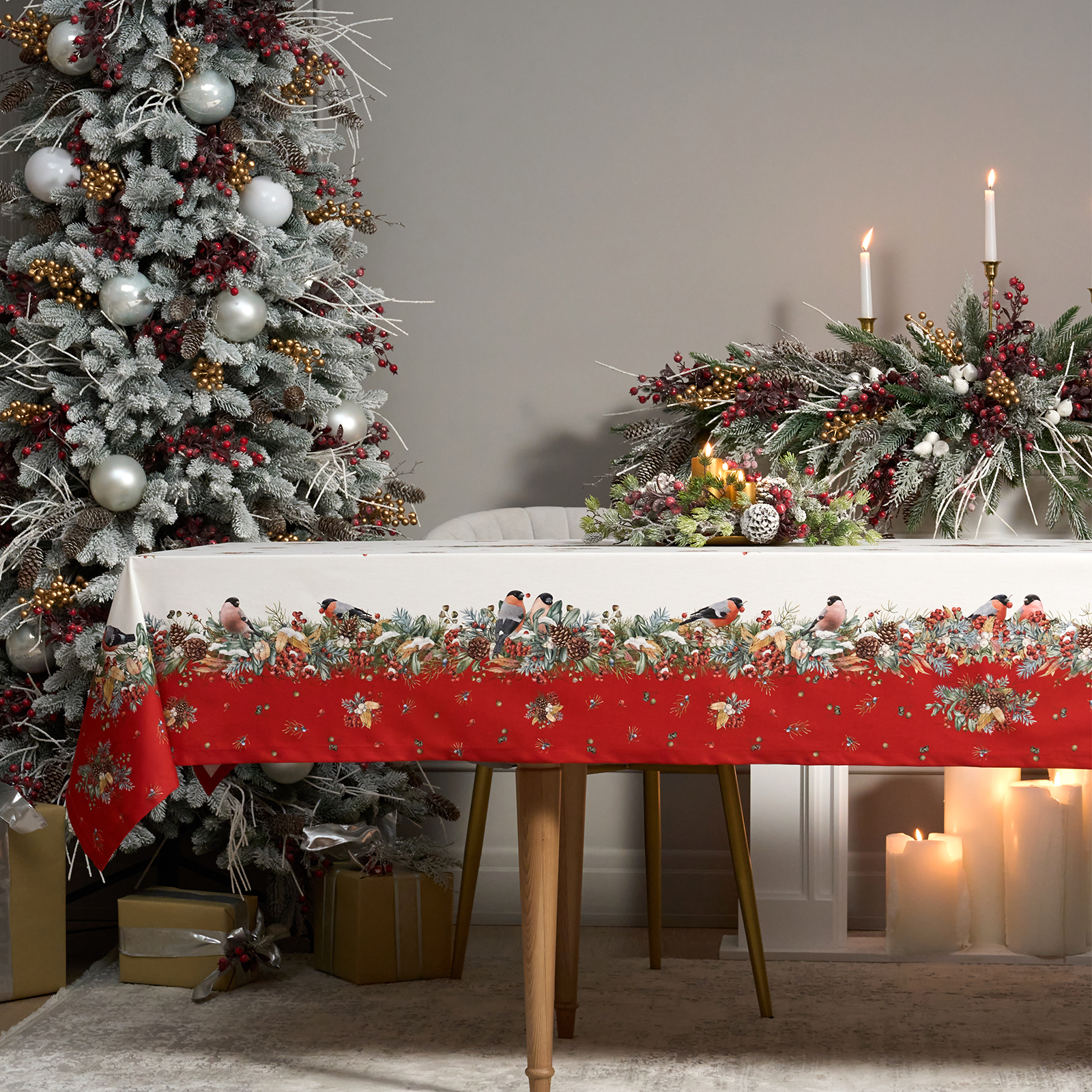 СКАТЕРТЬ "МОРОЗКО.СНЕГИРИ" 140Х180СМ, КРАСНЫЙ, 100% ХЛОПОК,ТВИЛ ПРОПИТКА