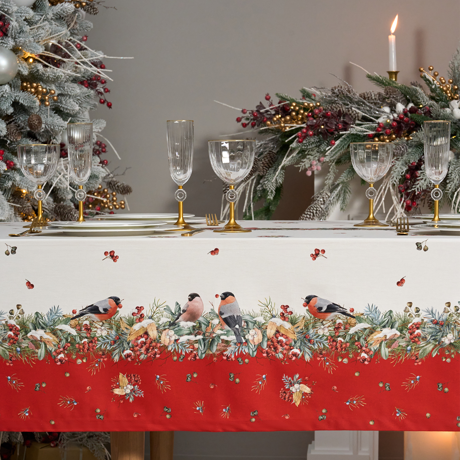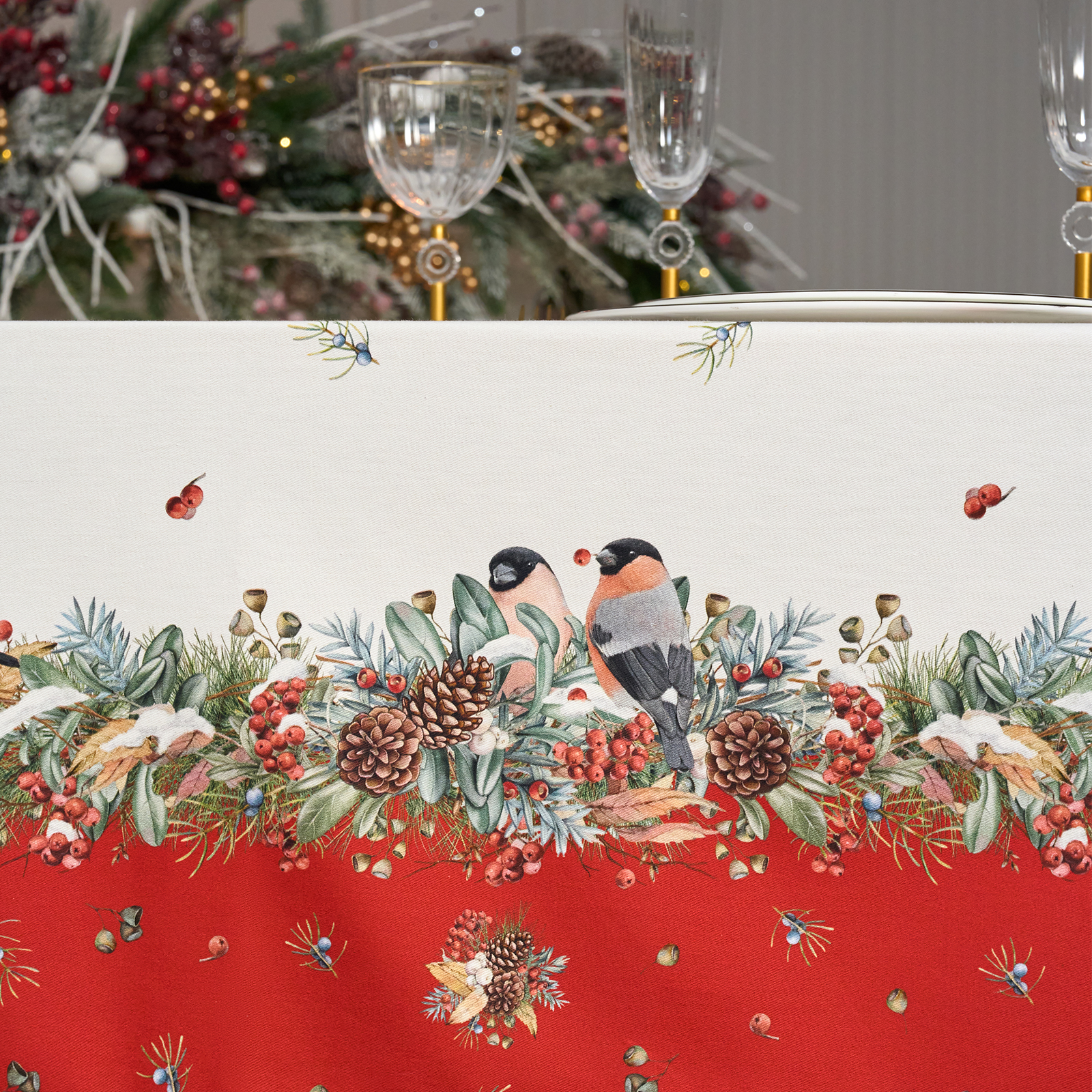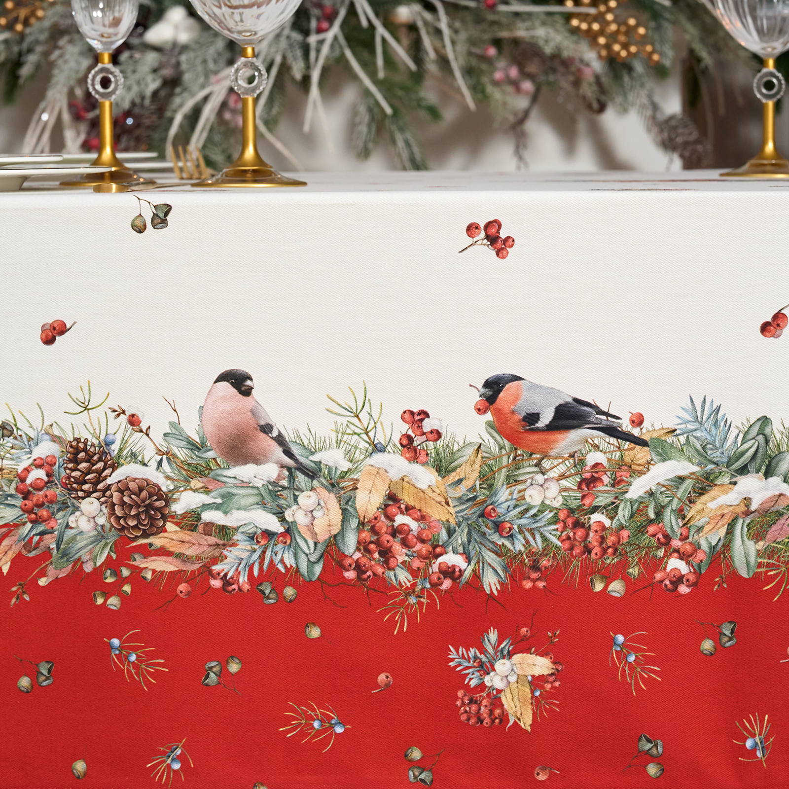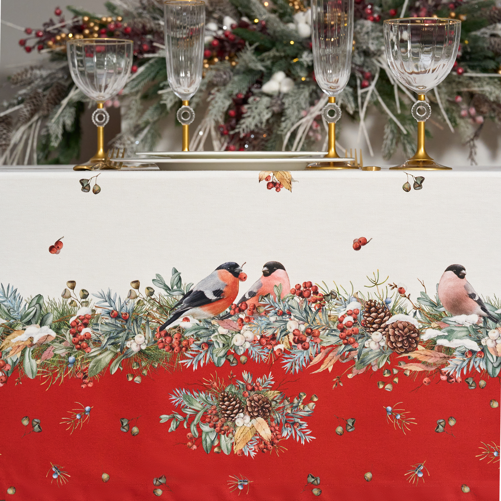 СКАТЕРТЬ "МОРОЗКО.СНЕГИРИ" 140Х400СМ ,КРАСНЫЙ, 100% ХЛОПОК,ТВИЛ ПРОПИТКА