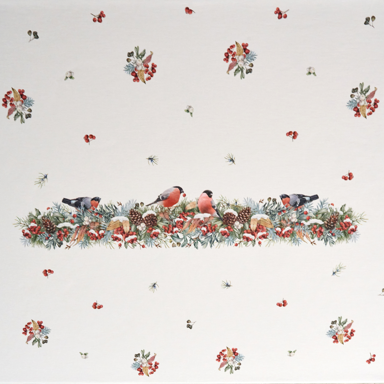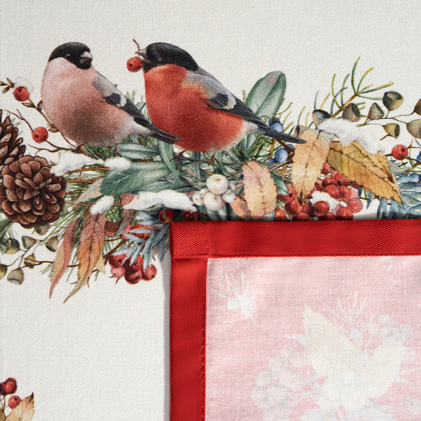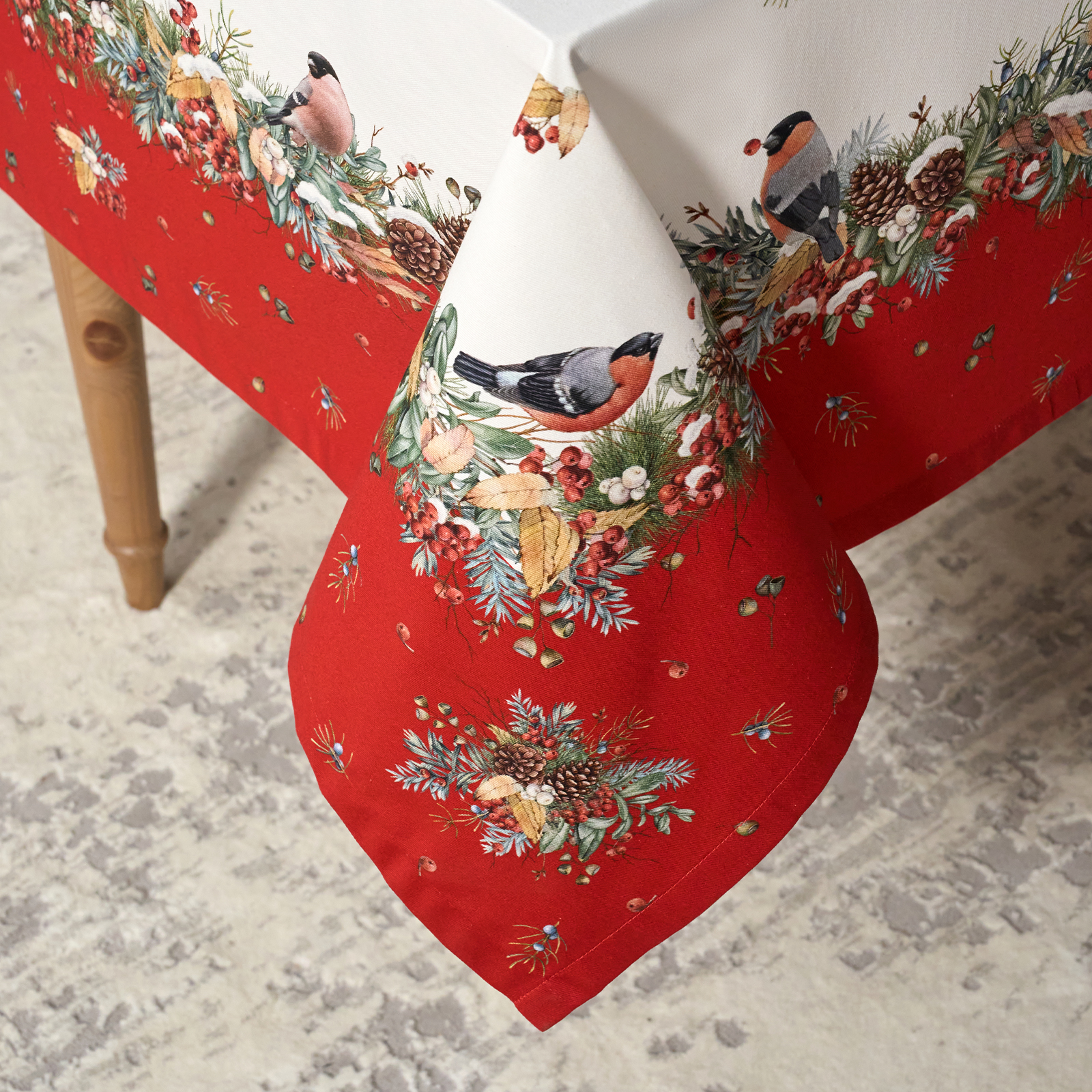 СКАТЕРТЬ "МОРОЗКО.СНЕГИРИ" 140Х400СМ ,КРАСНЫЙ, 100% ХЛОПОК,ТВИЛ ПРОПИТКА