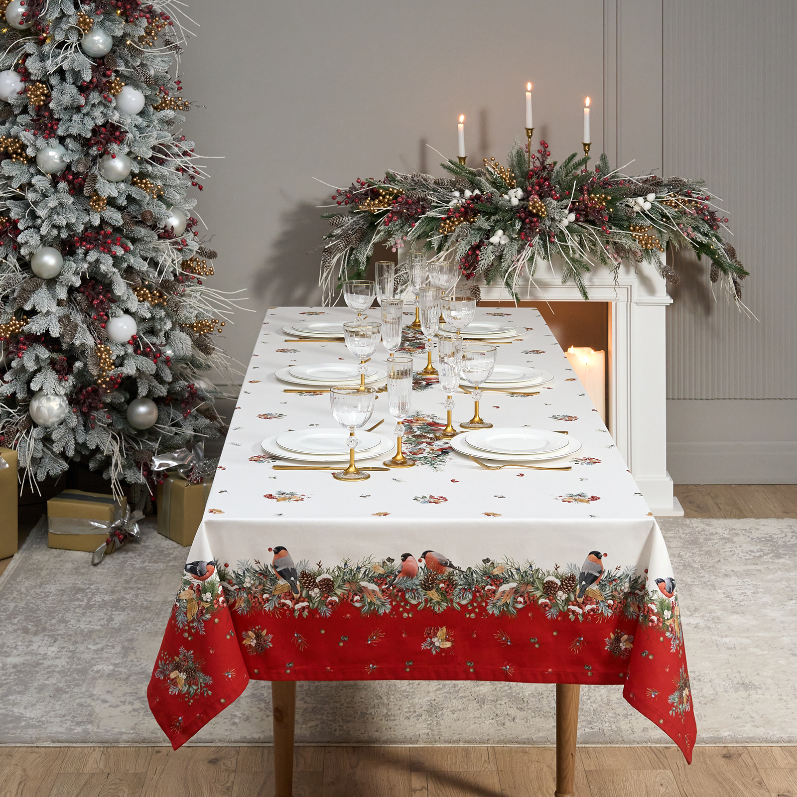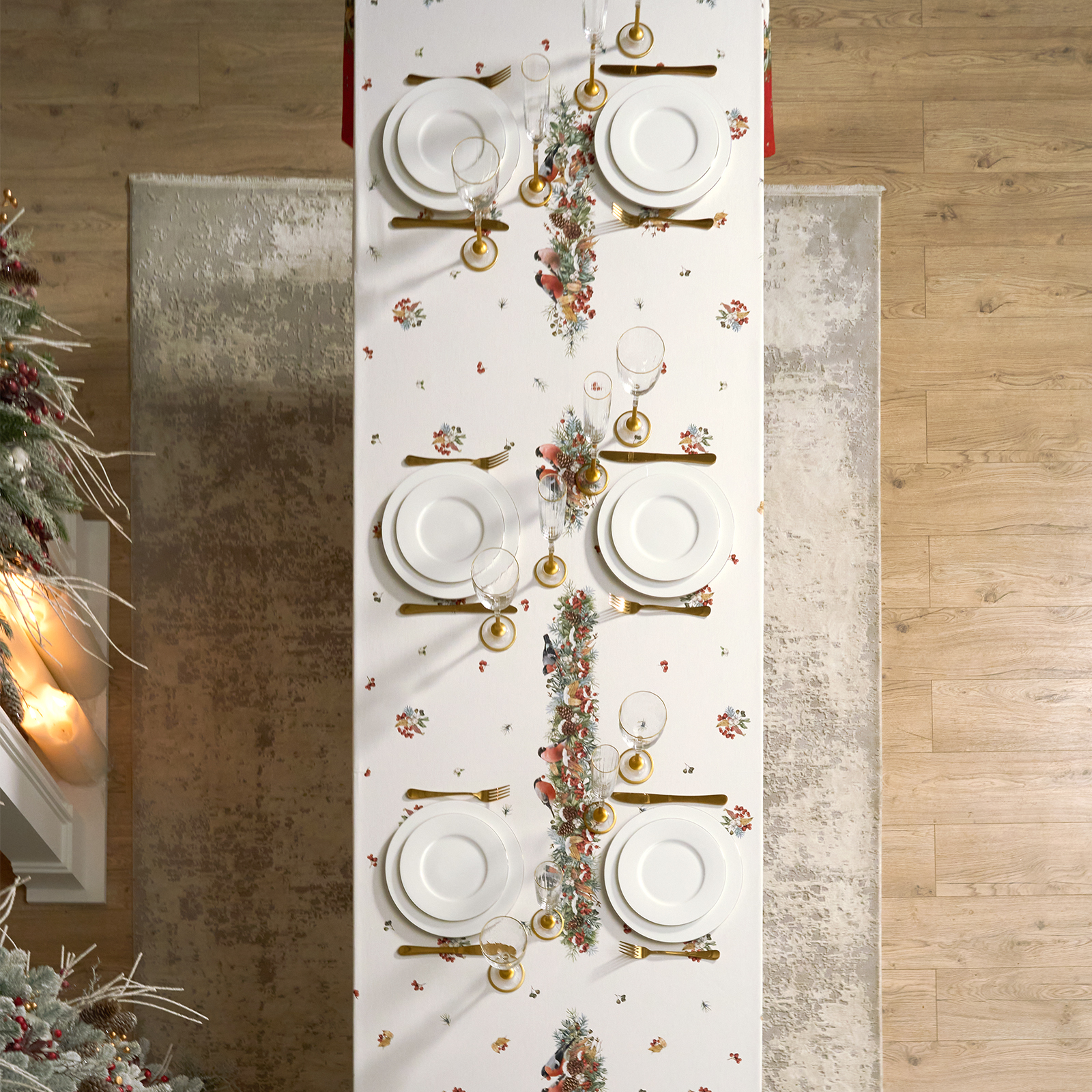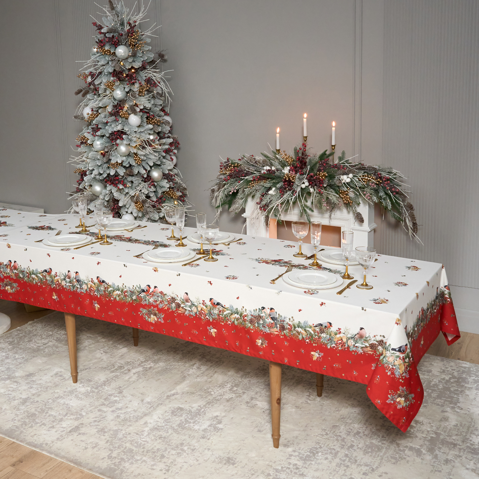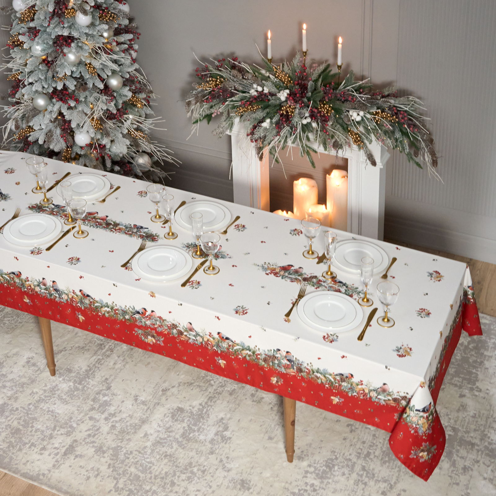 СКАТЕРТЬ "МОРОЗКО.СНЕГИРИ" 140Х400СМ ,КРАСНЫЙ, 100% ХЛОПОК,ТВИЛ ПРОПИТКА