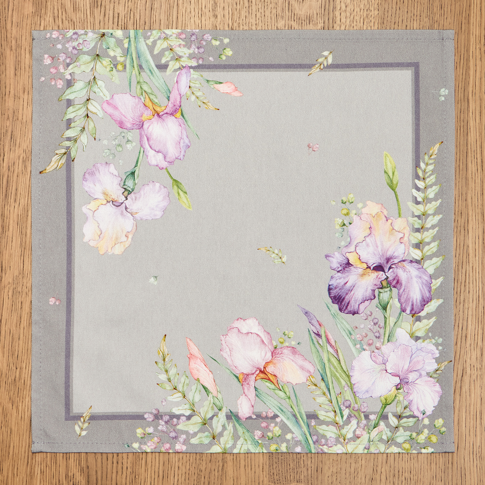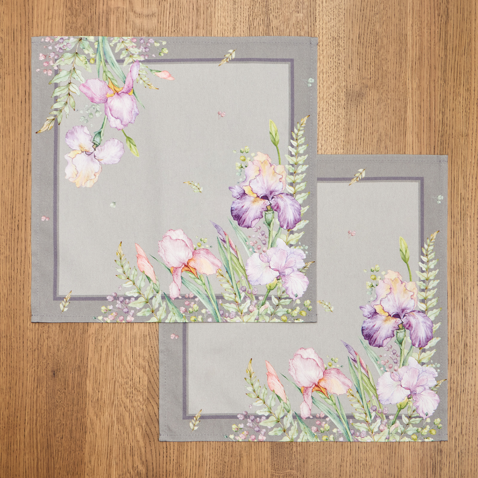 Яркий цветочный принт с ирисами выполнен методом цифровой печати — рисунок сохраняет чёткость и насыщенность даже после частых стирок. Салфетки станут эффектным акцентом при сервировке стола, подойдут как подставка под тарелки, приборы, вазы или декор на прикроватную тумбу.