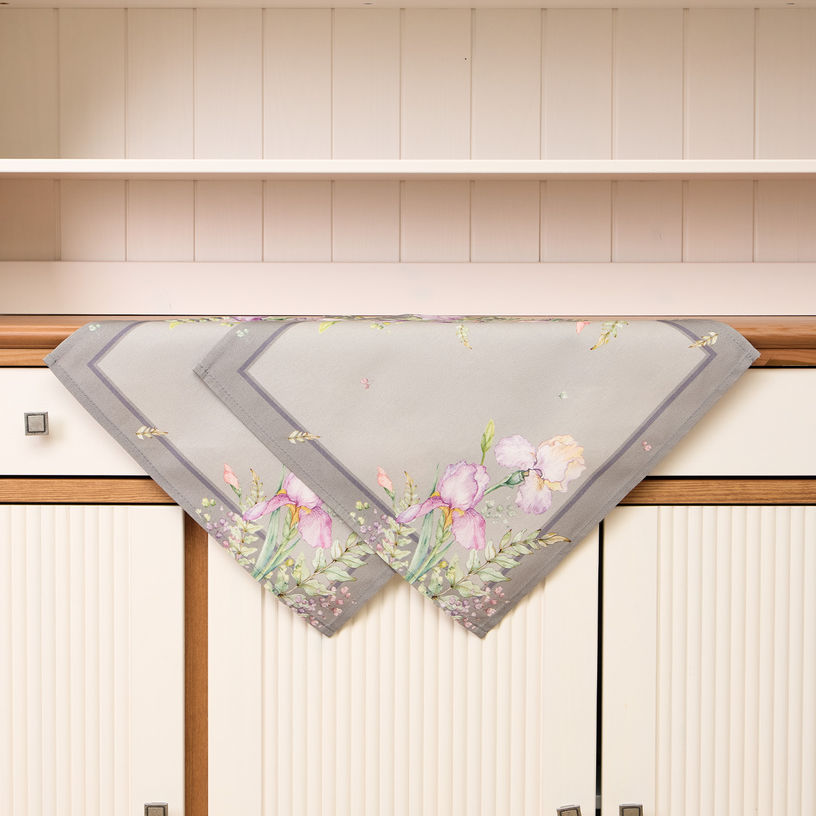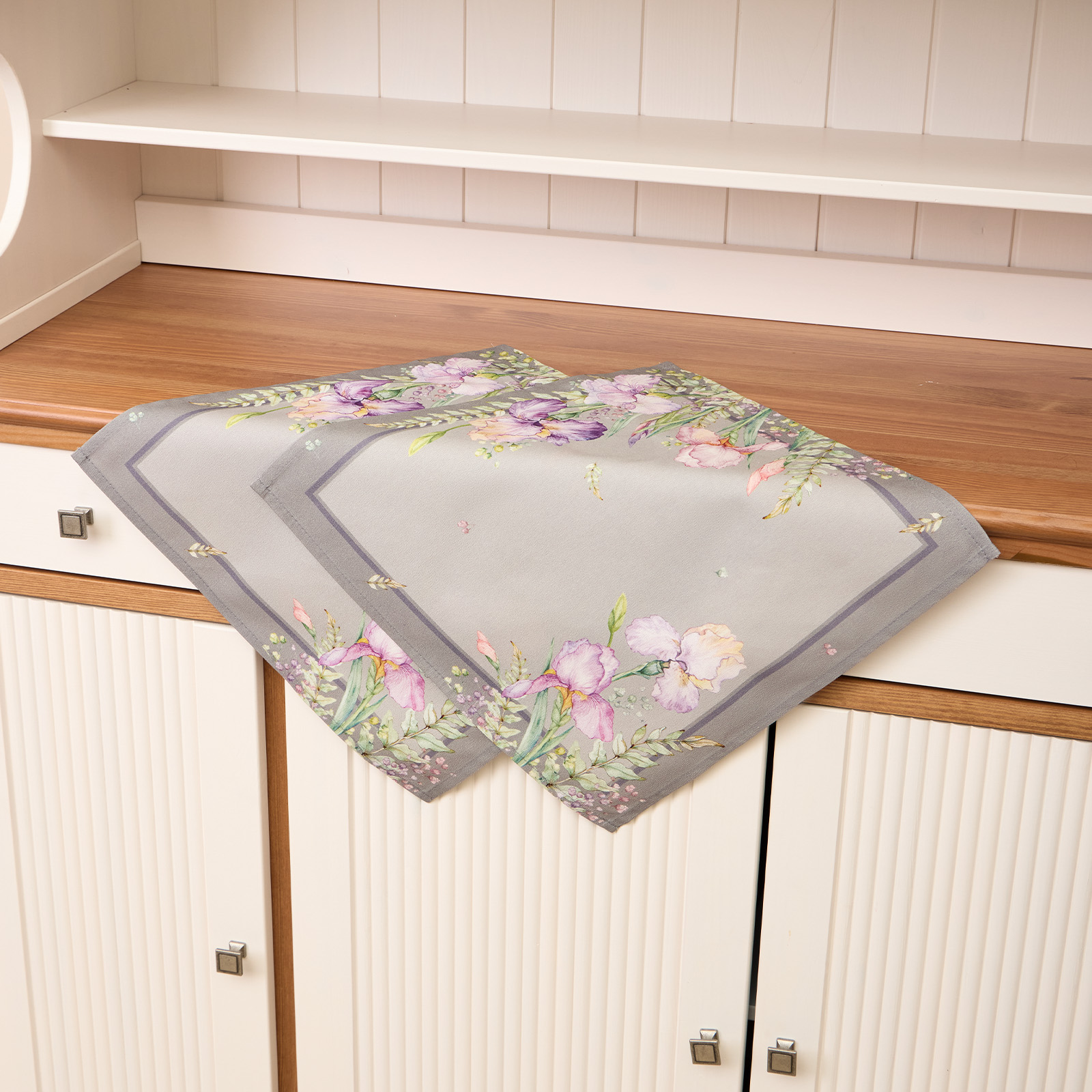 НАБОР САЛФЕТОК ИЗ 2-Х ШТ "ИРИСЫ",40Х40СМ, 100% ХЛОПОК,СЕРЫЙ,ТВИЛ,