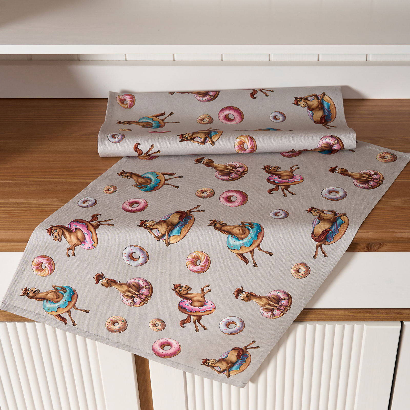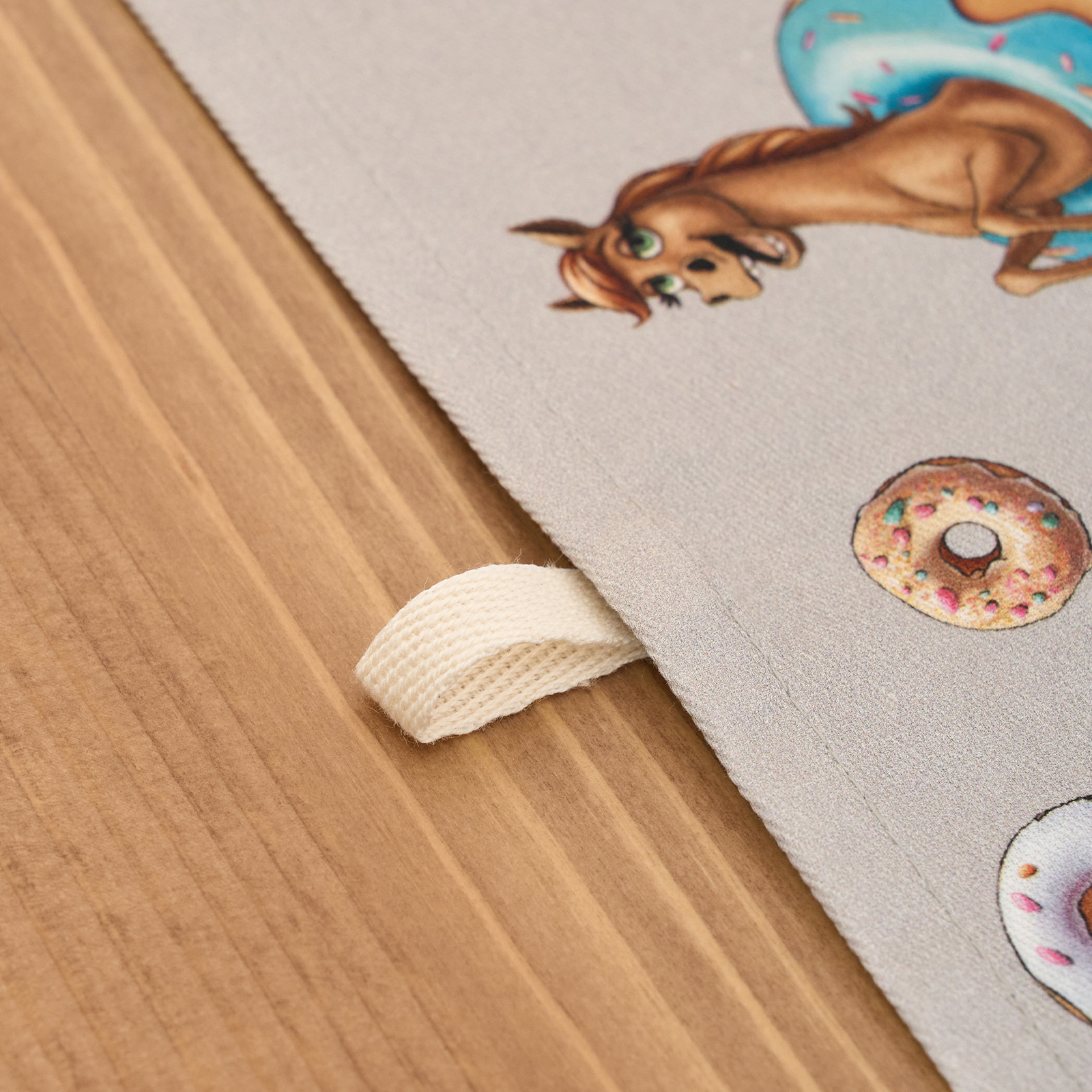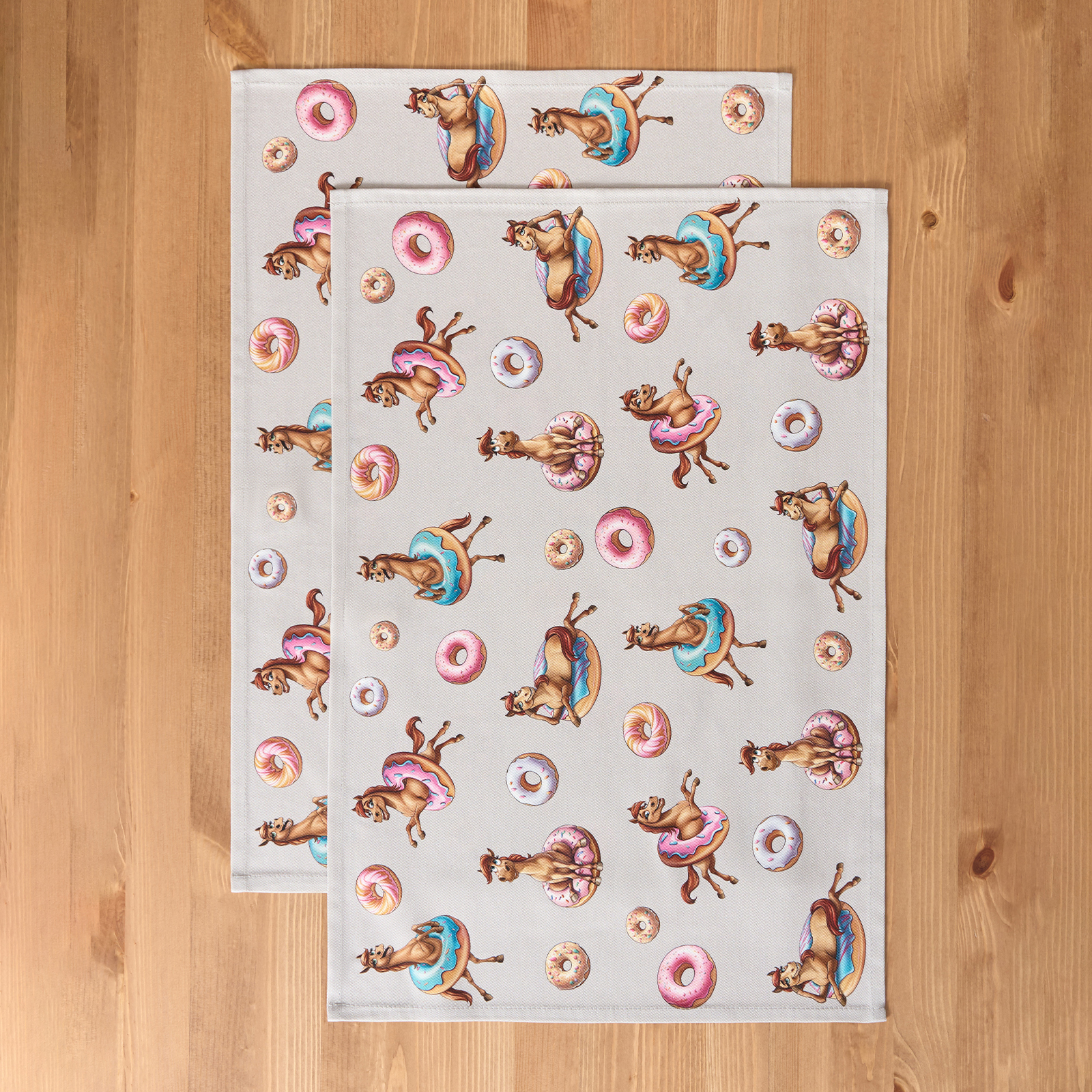 Прикольный принт с лошадками и пончиками поднимет настроение взрослым и детям, добавит уюта и праздничной атмосферы. Такие полотенца можно подарить подруге, маме, бабушке или ребёнку — как прикольный символ года, а также использовать для сервировки или как необычный новогодний сувенир.