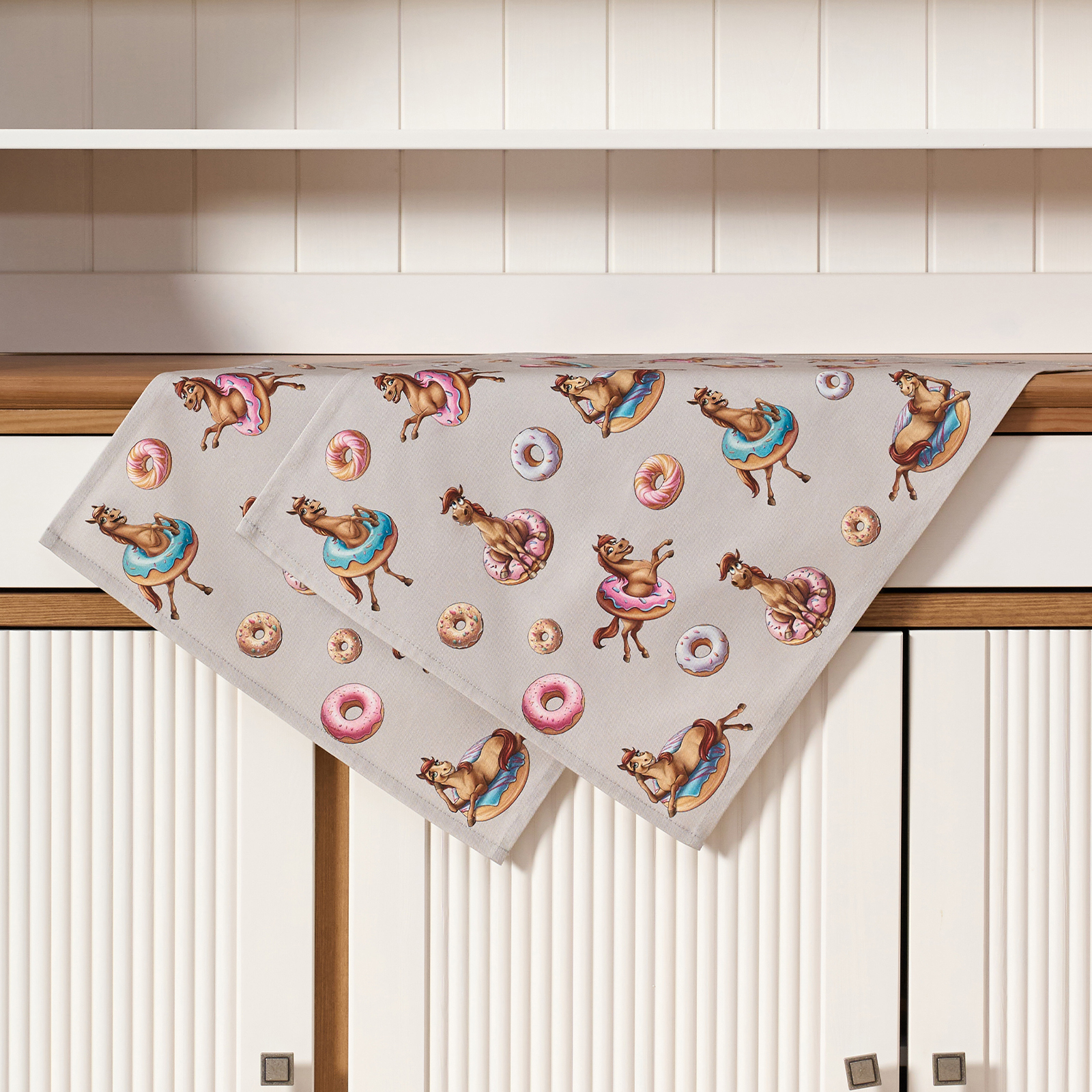 Набор кухонных полотенец с авторским принтом «Лошадь в пончиках» от бренда Lefard — яркий и праздничный акцент для кухни, символ наступающего года и забавный сувенир.