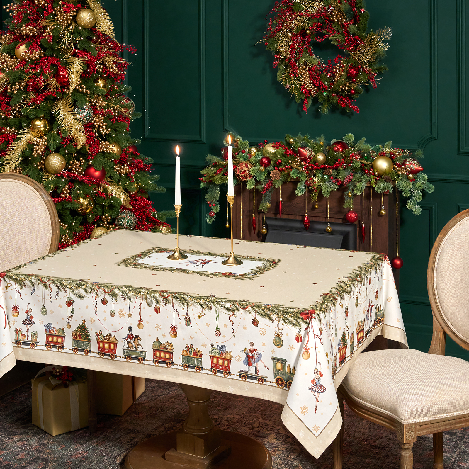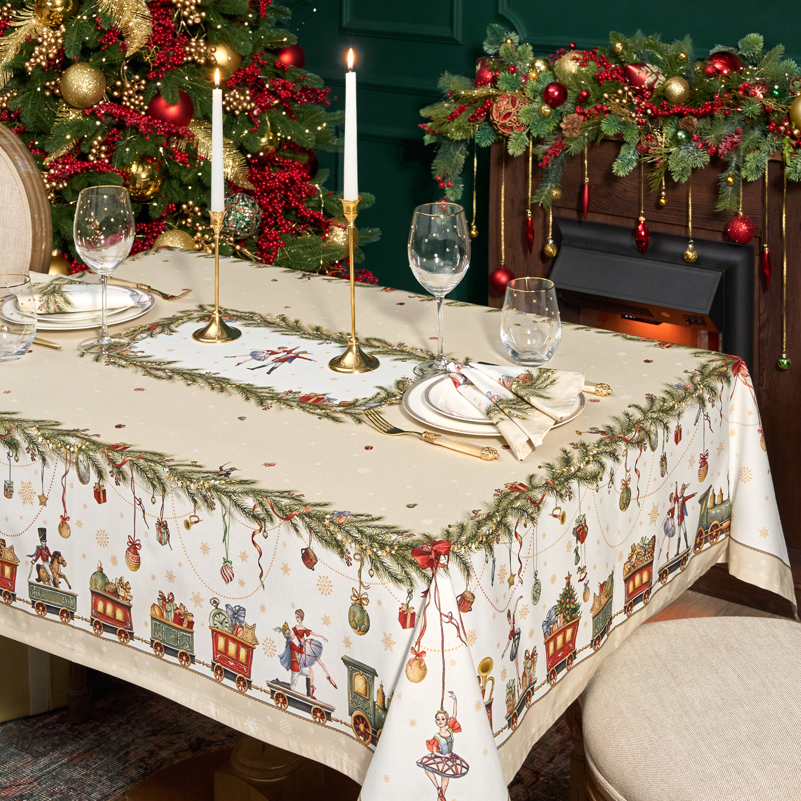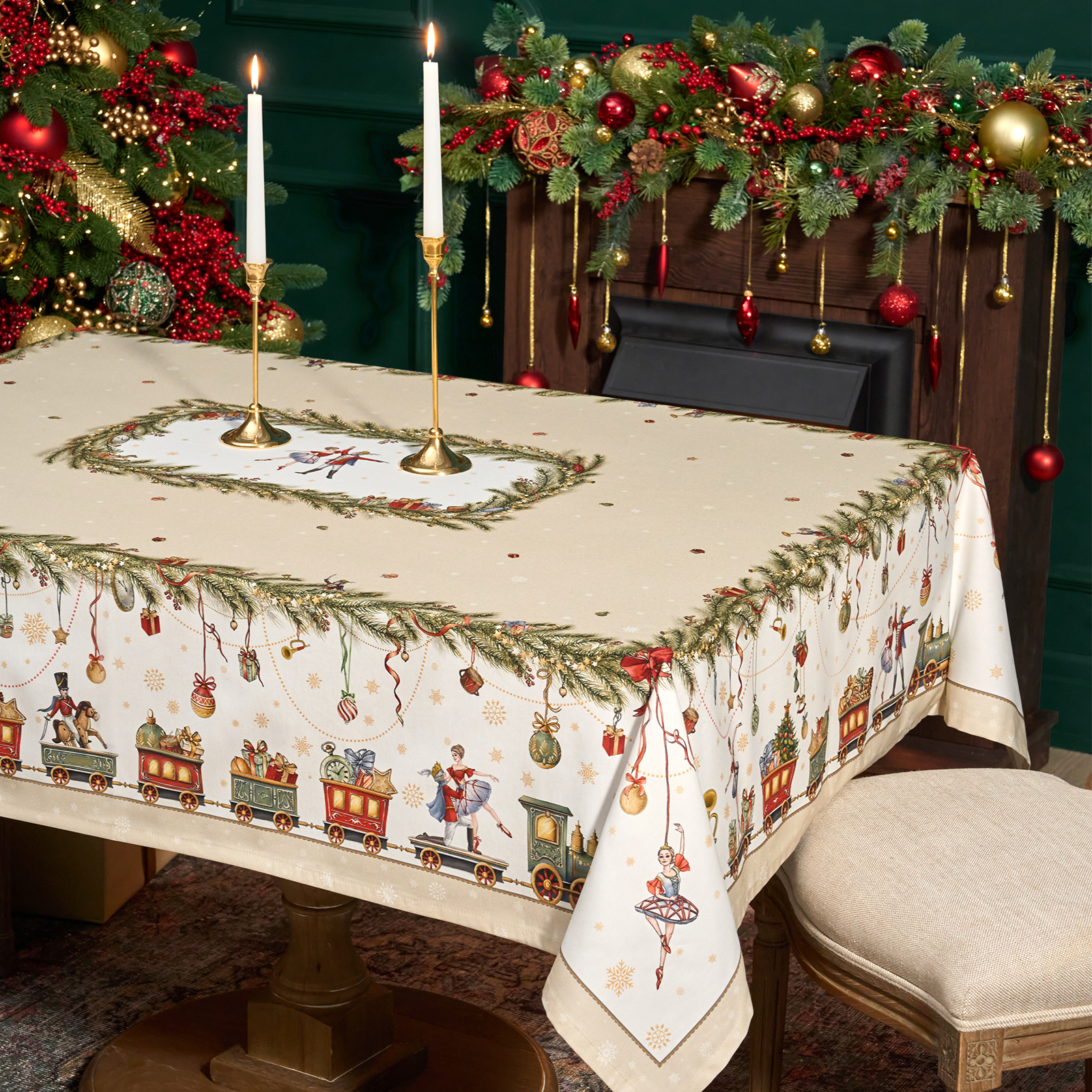 Скатерть создана по эксклюзивному дизайну для бренда Lefard и гармонирует с одноимённой посудой из коллекции Щелкунчик. Это текстиль высокого класса, который подойдёт как для домашнего использования, так и в качестве подарка.
