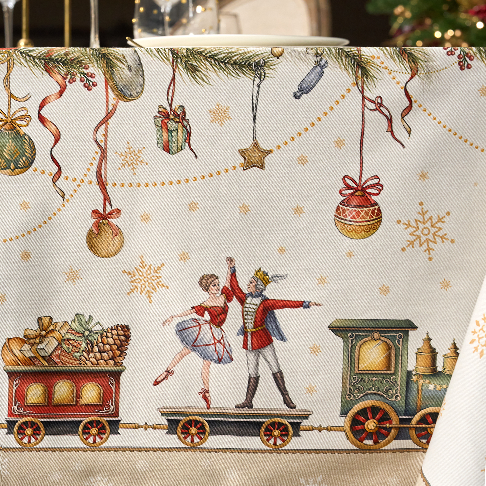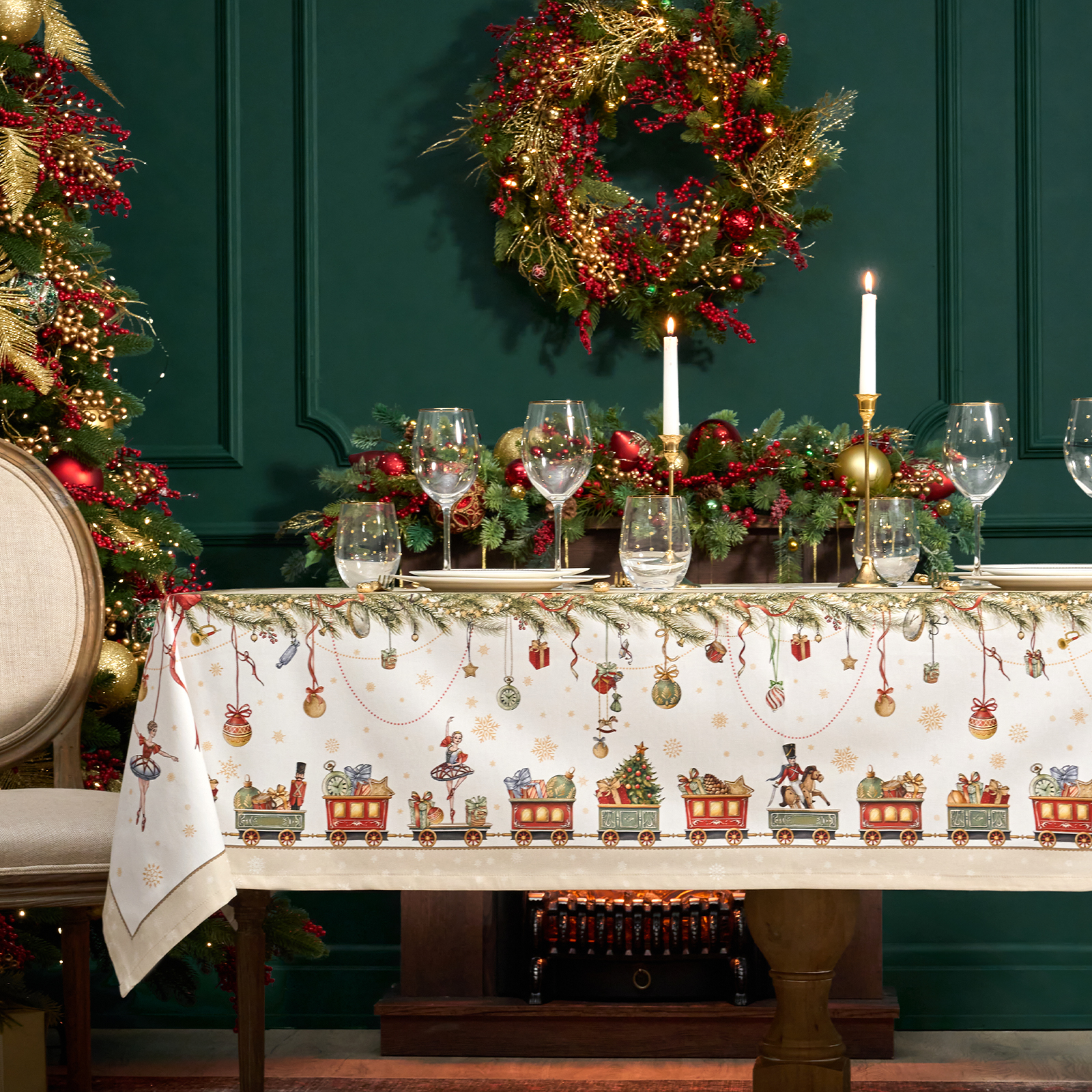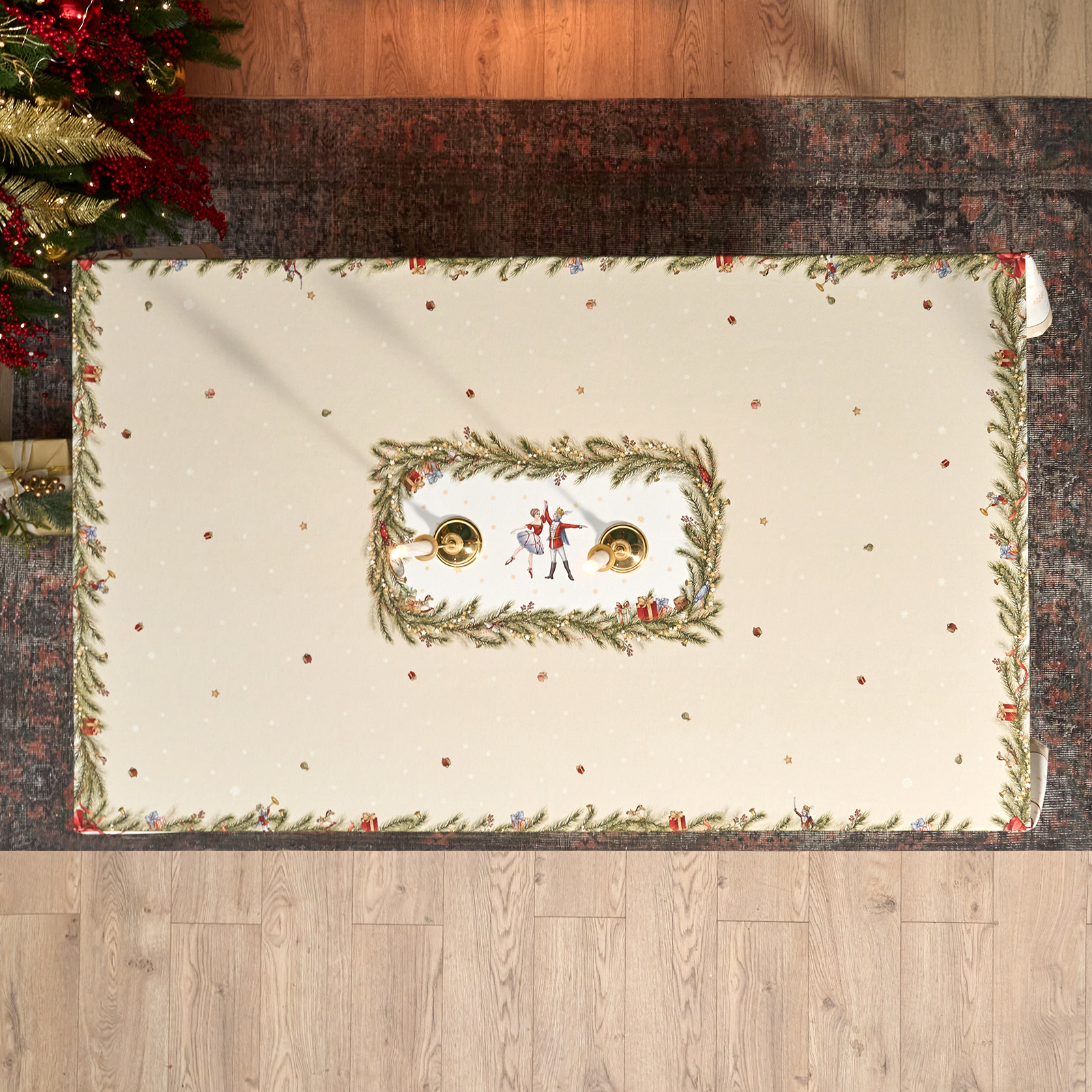 Скатерть создана по эксклюзивному дизайну для бренда Lefard и гармонирует с одноимённой посудой из коллекции Щелкунчик. Это текстиль высокого класса, который подойдёт как для домашнего использования, так и в качестве подарка.