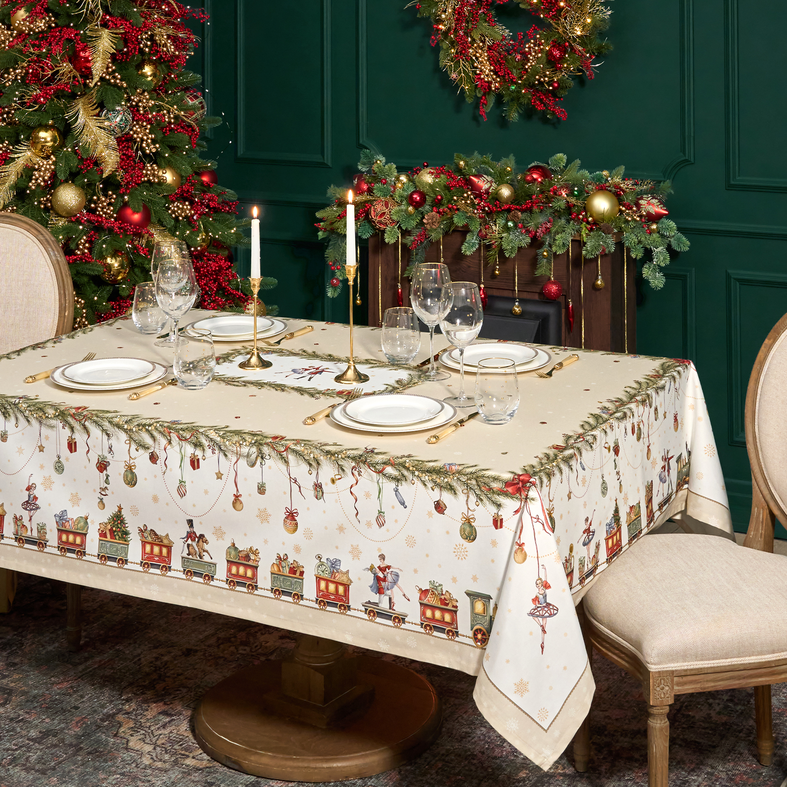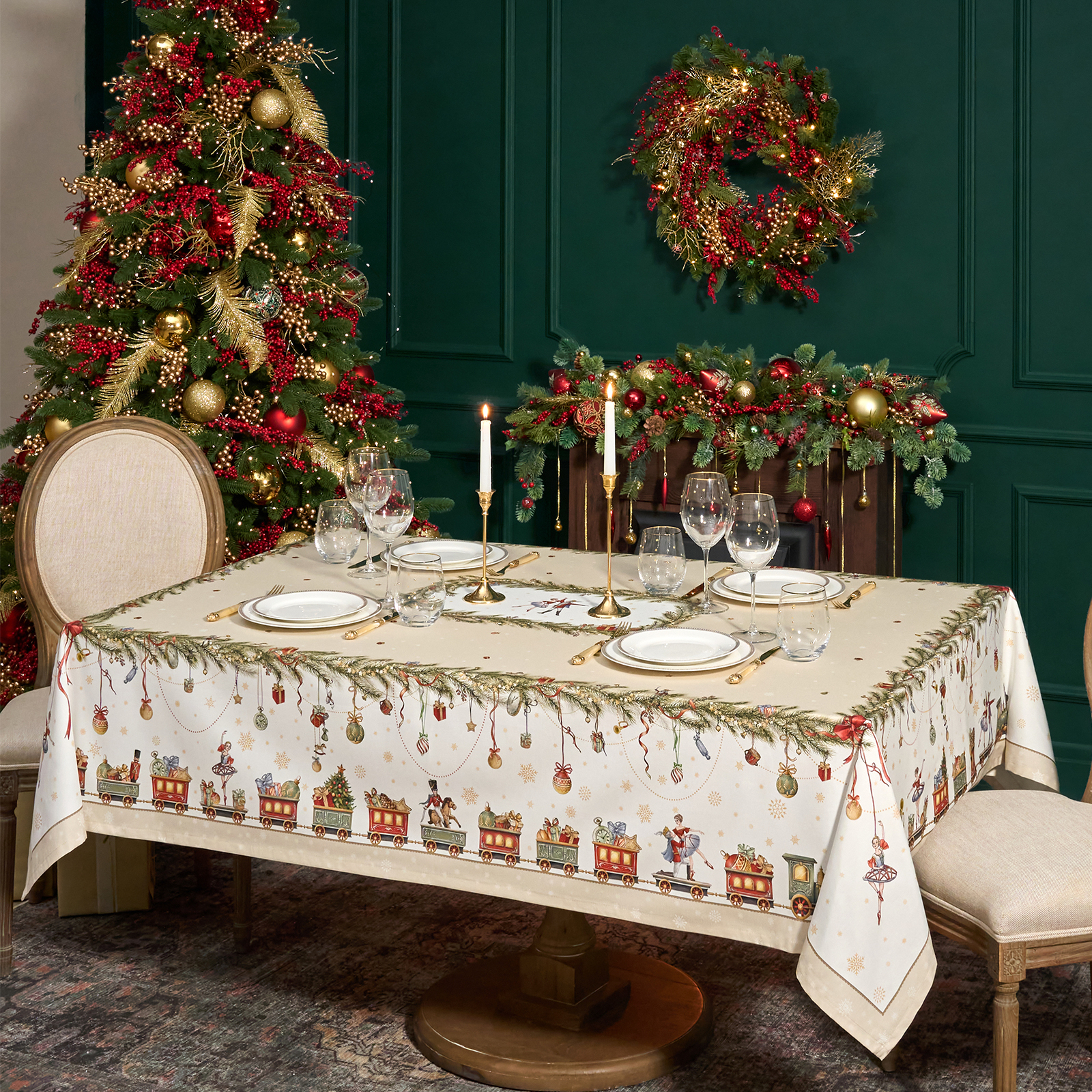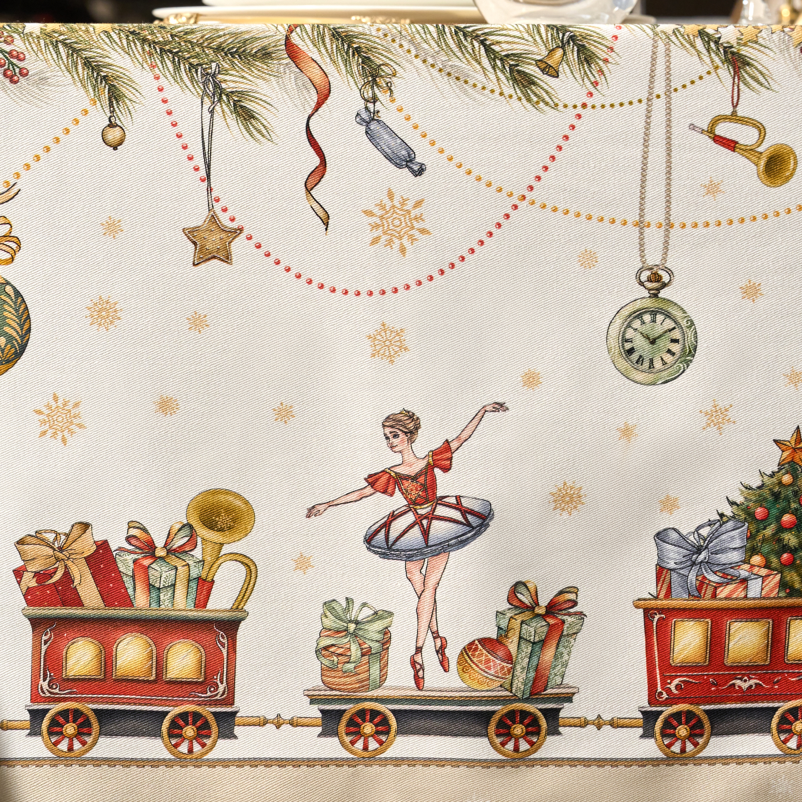 Скатерть от Lefard из коллекции Щелкунчик — элегантное решение для сервировки праздничного стола. Размер 160*220 подходит для больших столов, оптимальный размер стола 100*165 см, создавая равномерный и эстетичный свес.