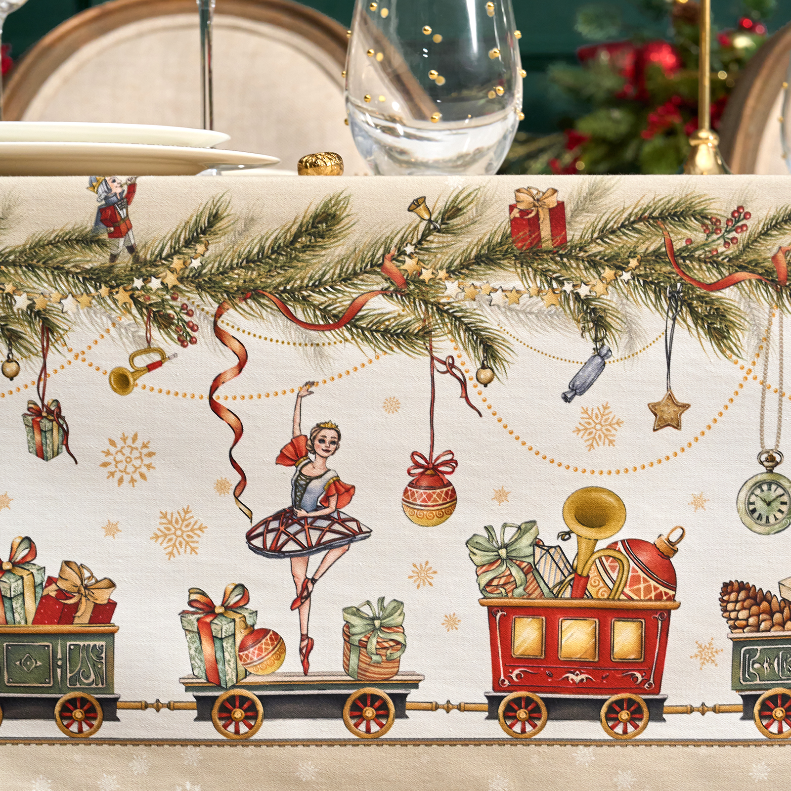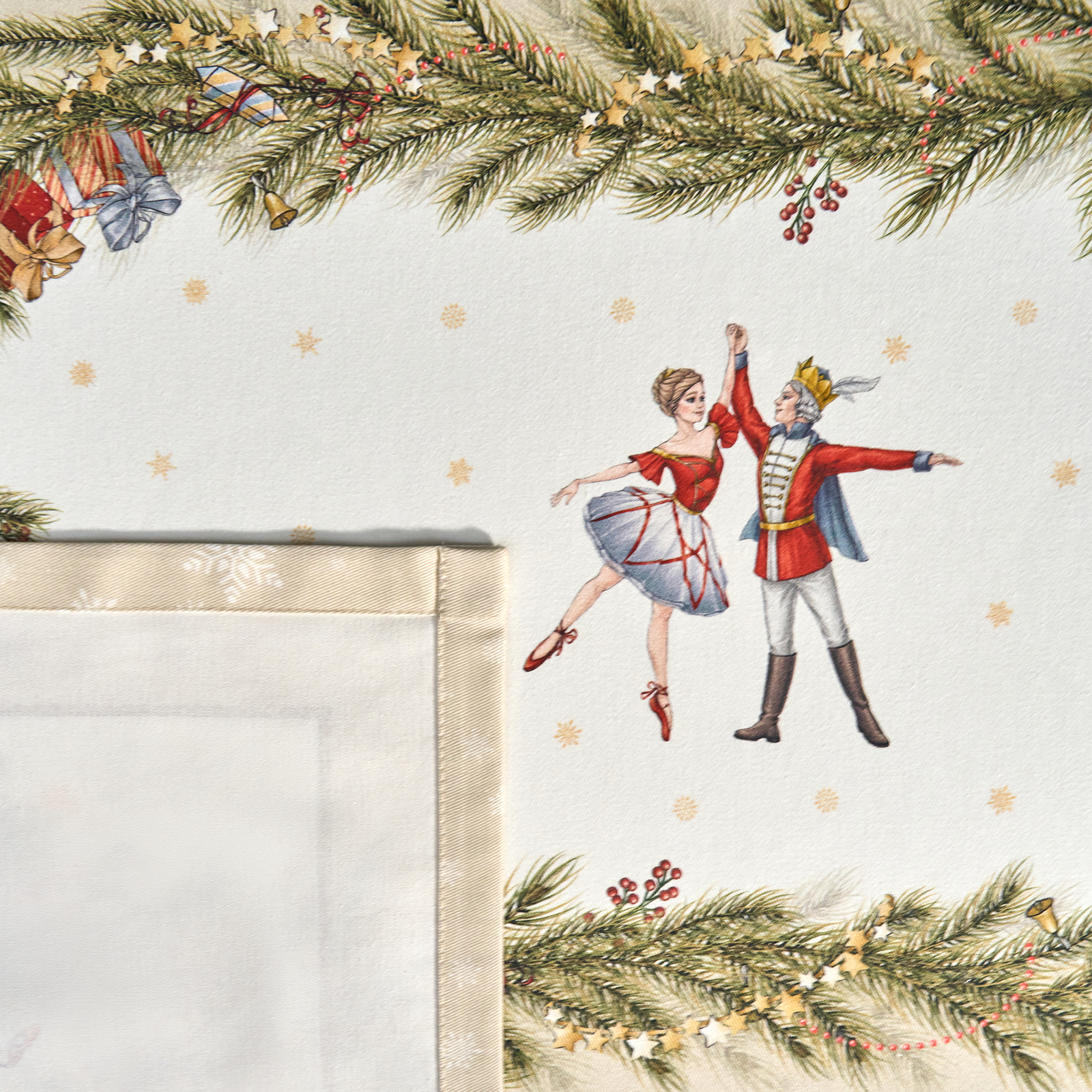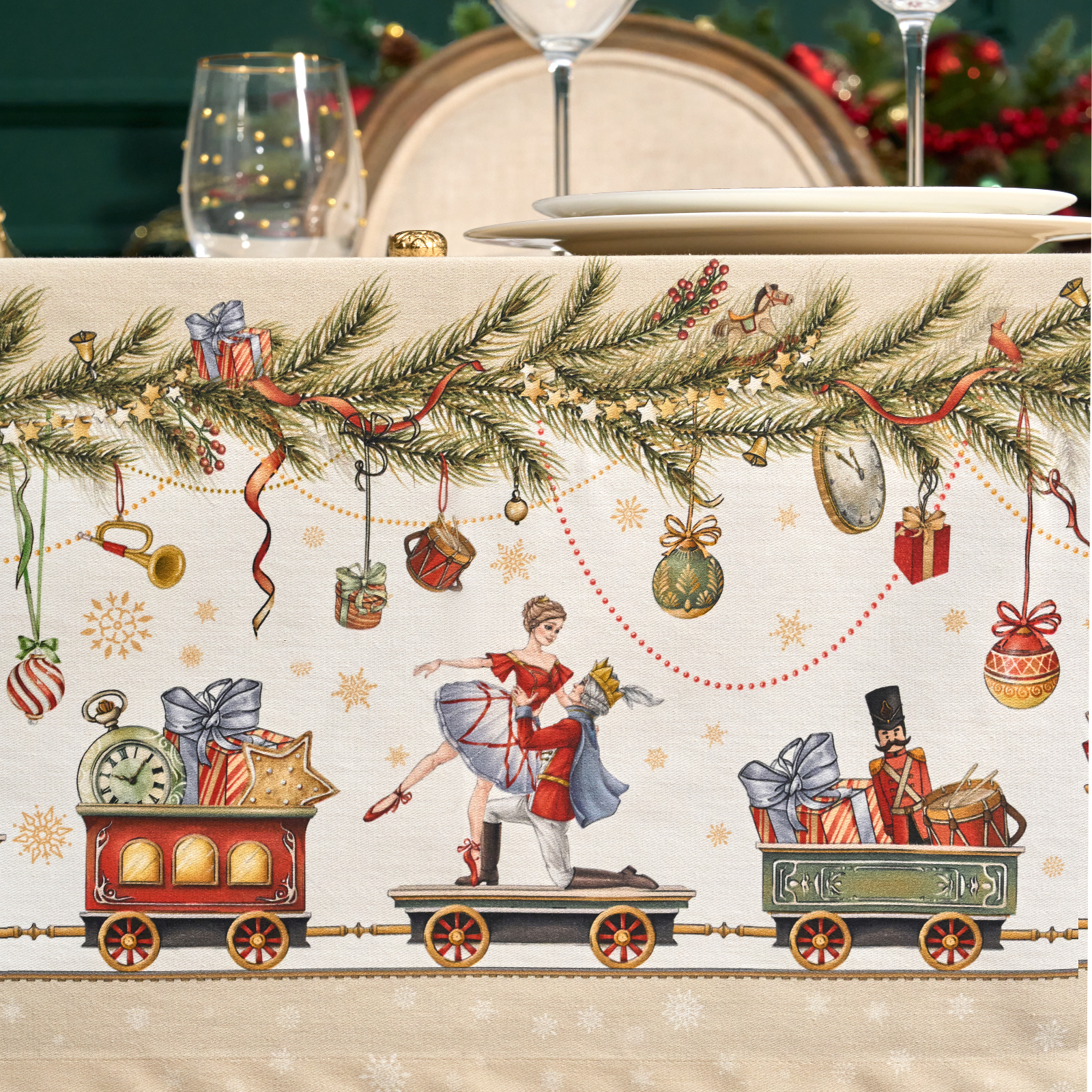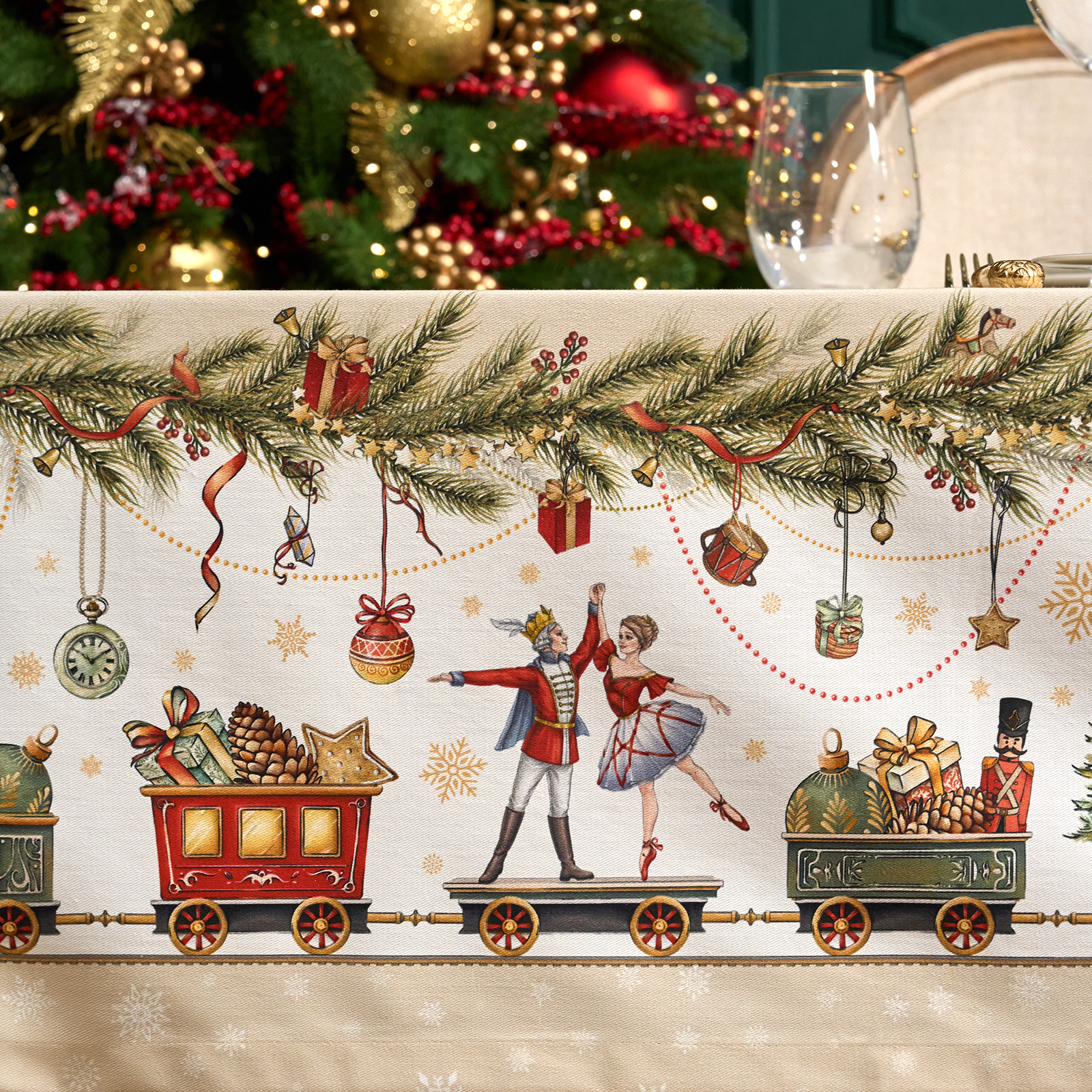Новогодняя скатерть Lefard из коллекции "Щелкунчик" — идеальный акцент для сервировки большого праздничного стола. Яркий праздничный узор с еловыми ветками, игрушками и Щелкунчиком наполняет интерьер атмосферой настоящего рождественского чуда. Этот сказочный герой — символ волшебства, домашнего тепла и защиты. Такой текстиль не просто украшает стол, а создаёт ощущение уюта и предвкушения праздника, где каждый гость почувствует себя желанным.