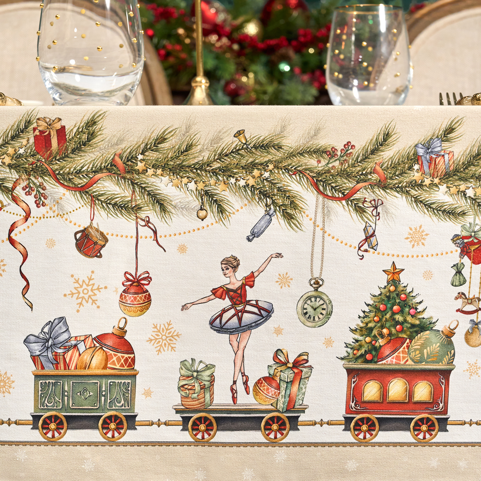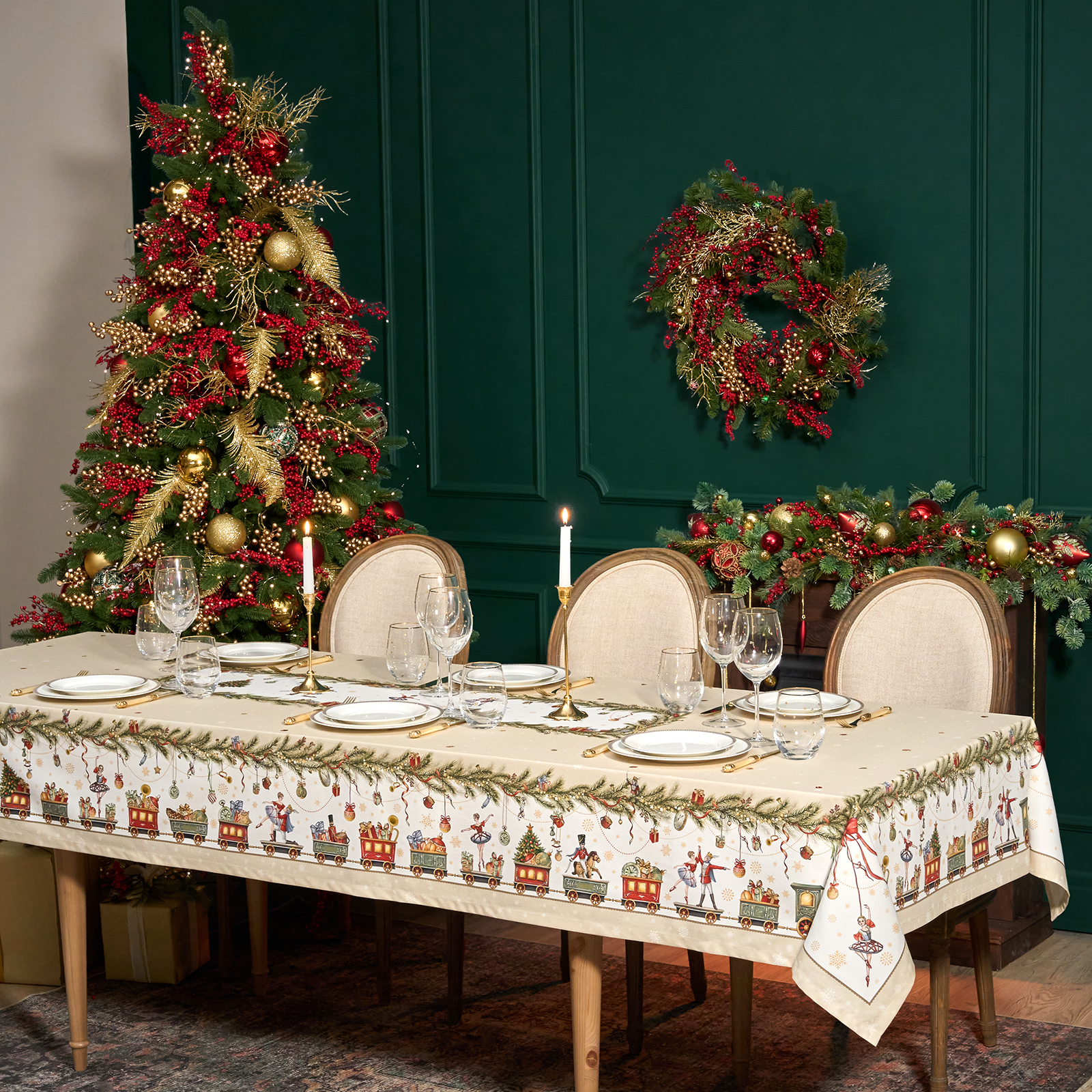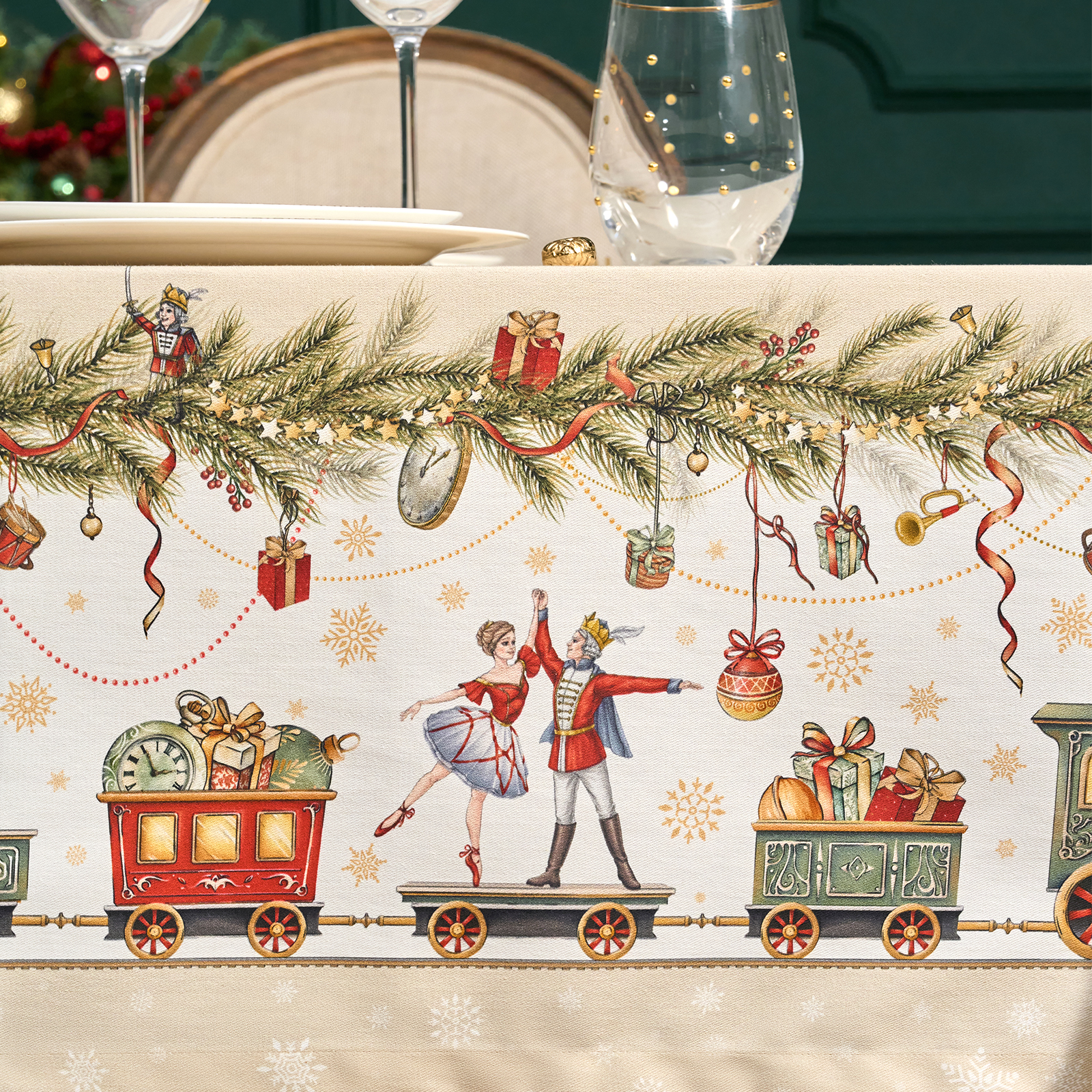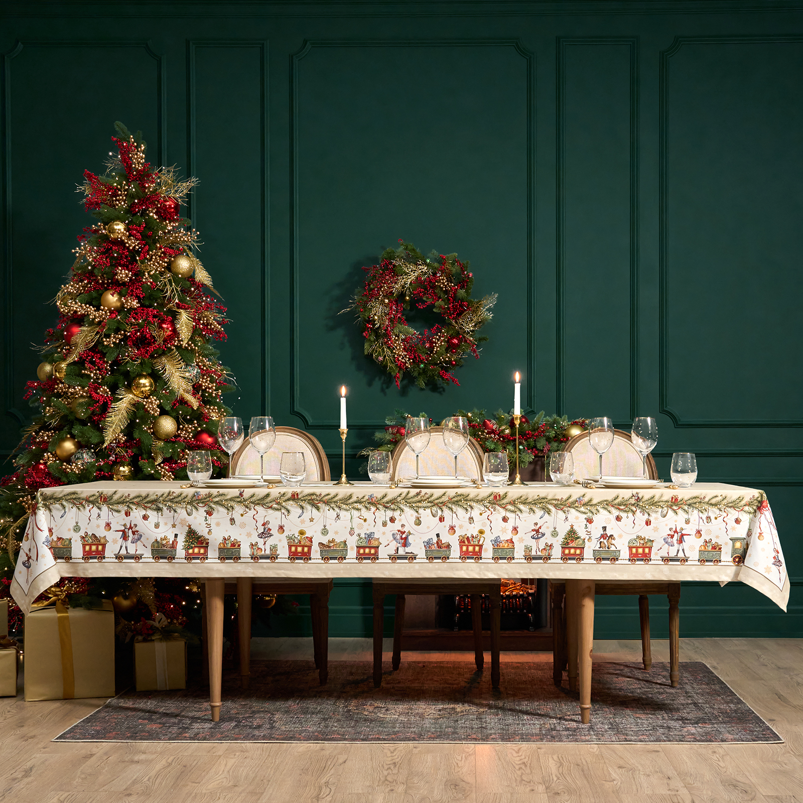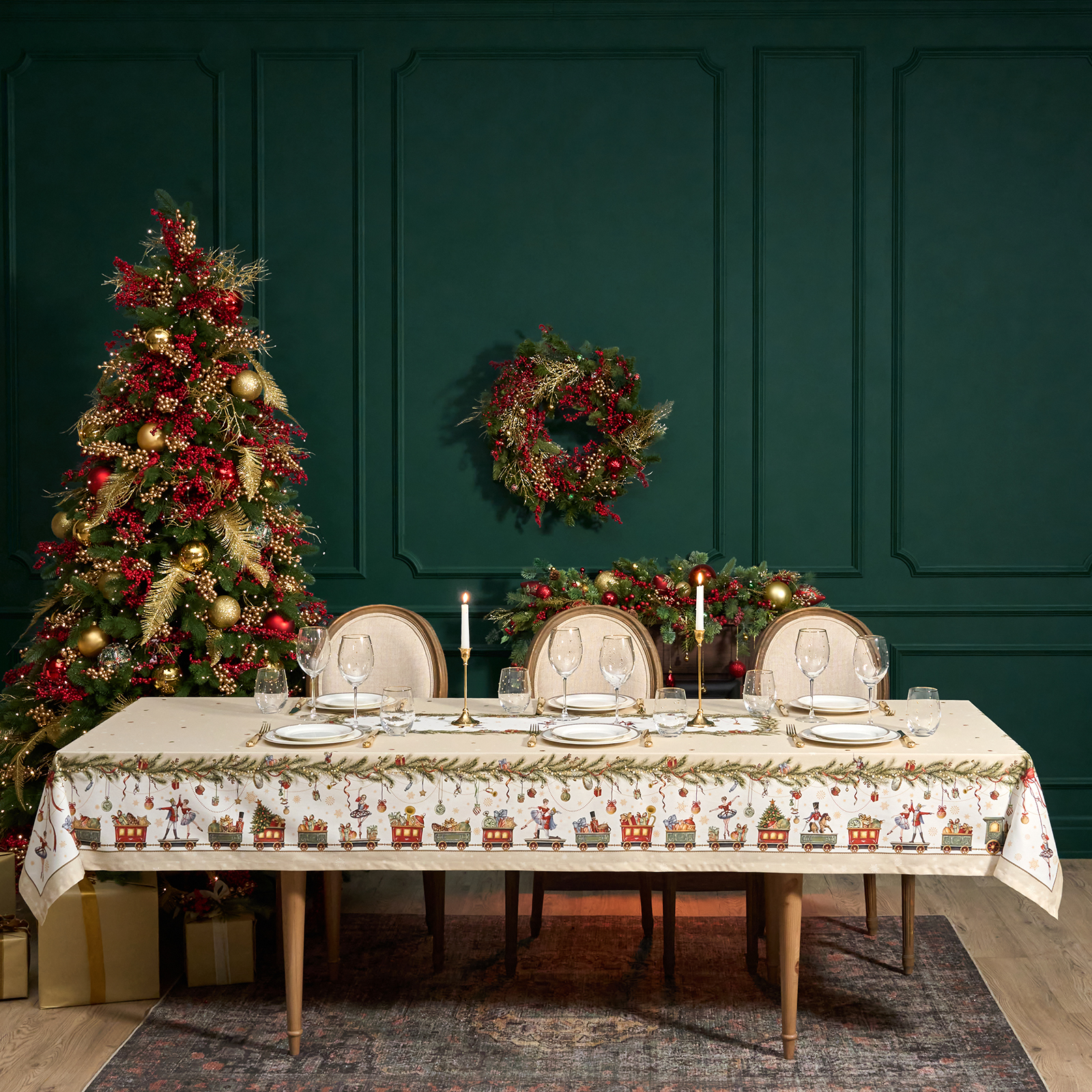 Новогодняя скатерть Lefard из коллекции "Щелкунчик" — идеальный акцент для сервировки большого праздничного стола. Яркий праздничный узор с еловыми ветками, игрушками и Щелкунчиком наполняет интерьер атмосферой настоящего рождественского чуда. Этот сказочный герой — символ волшебства, домашнего тепла и защиты. Такой текстиль не просто украшает стол, а создаёт ощущение уюта и предвкушения праздника, где каждый гость почувствует себя желанным.