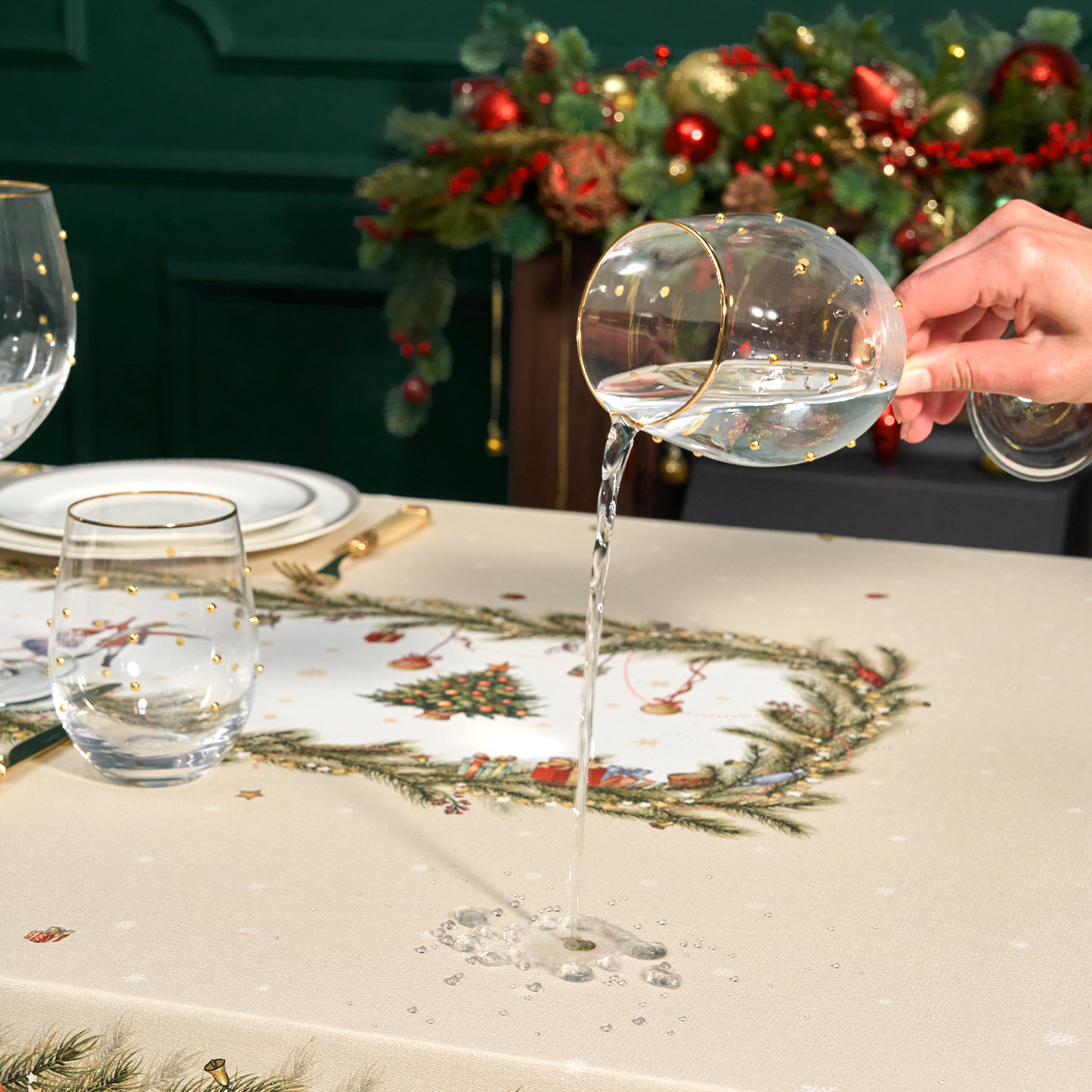 Благодаря размеру 140×300 см, скатерть идеально подходит для длинных прямоугольных и овальных столов длиной более 2,5 метров. Это удачное решение, если вы ищете качественную скатерть 3 метра из плотной ткани с праздничным и выразительным дизайном.