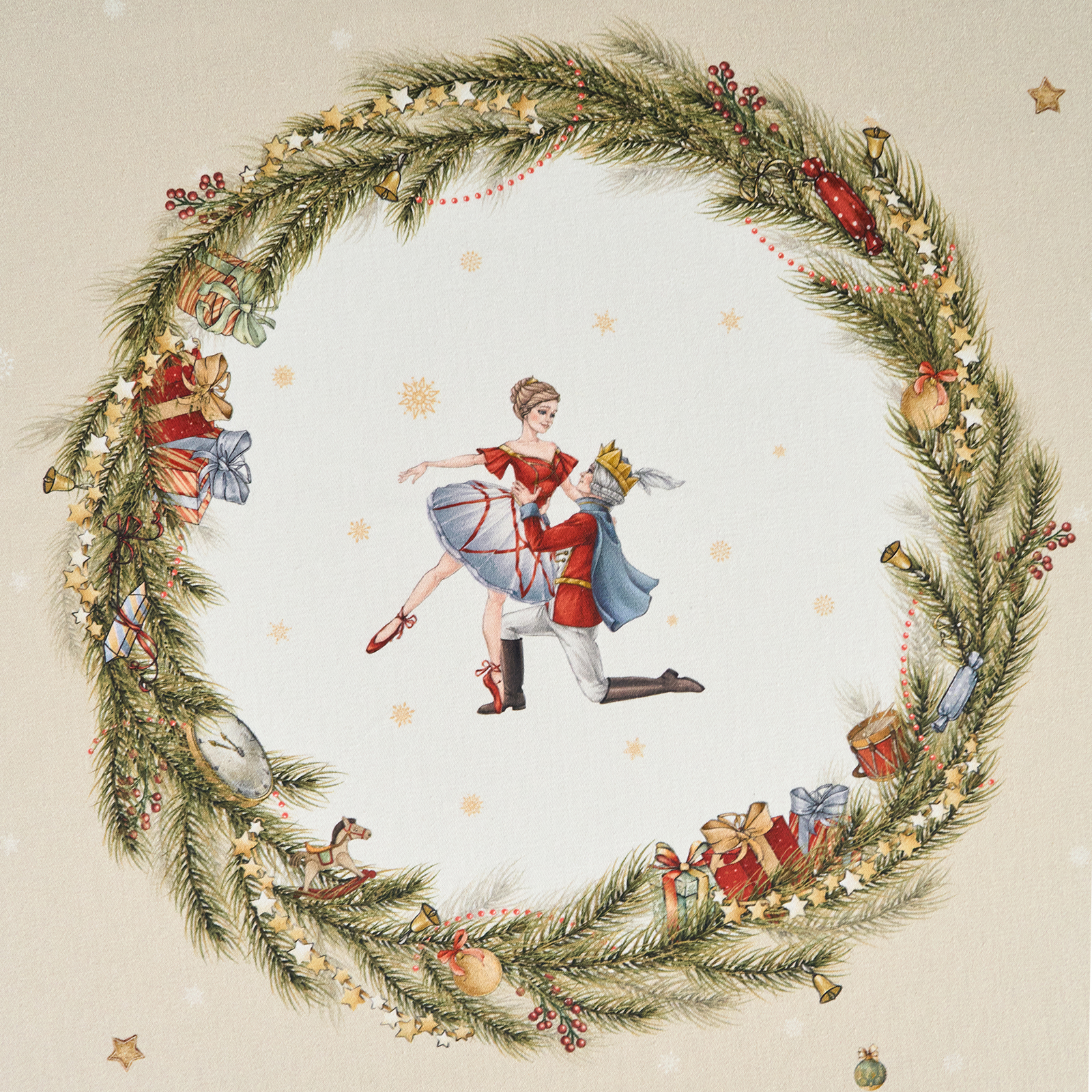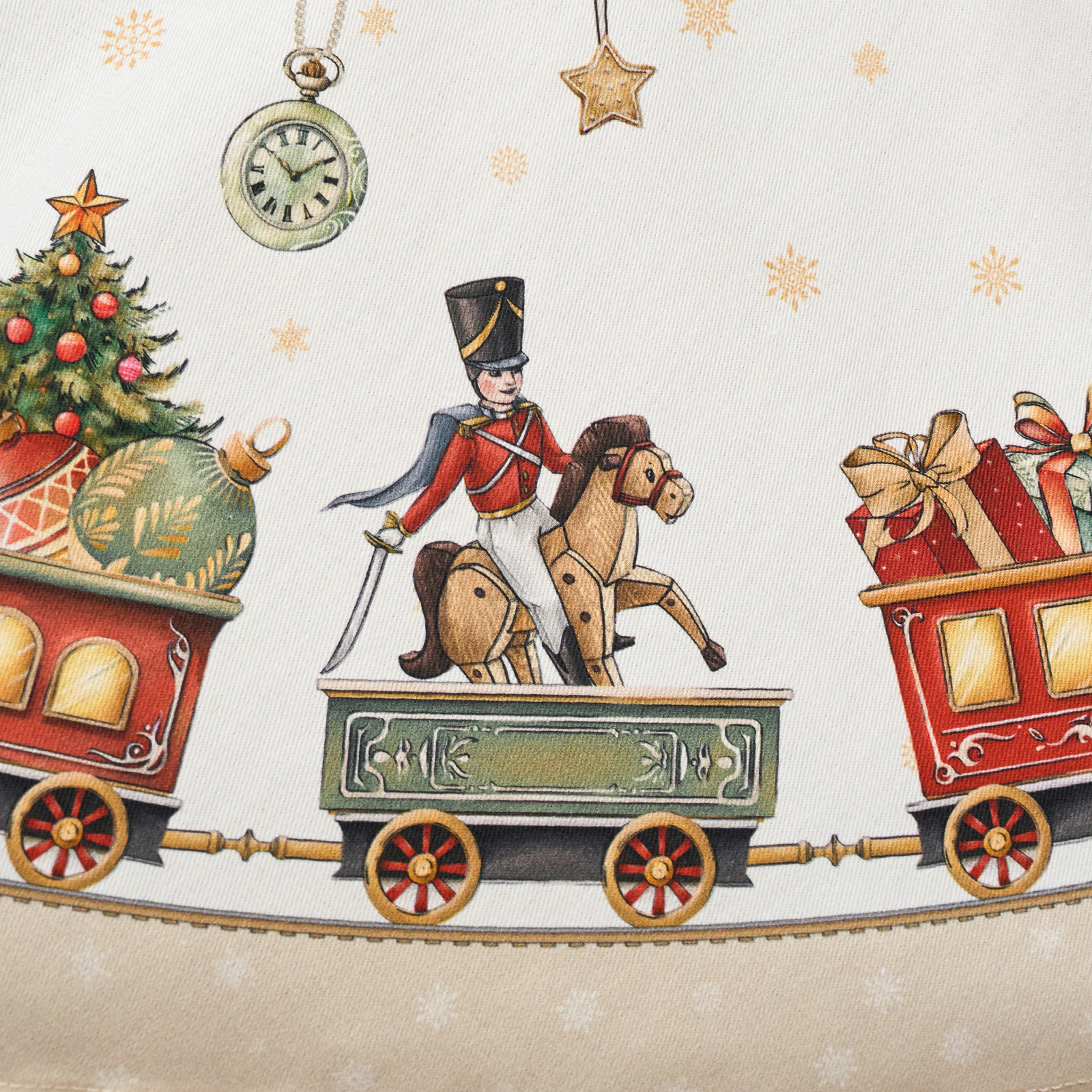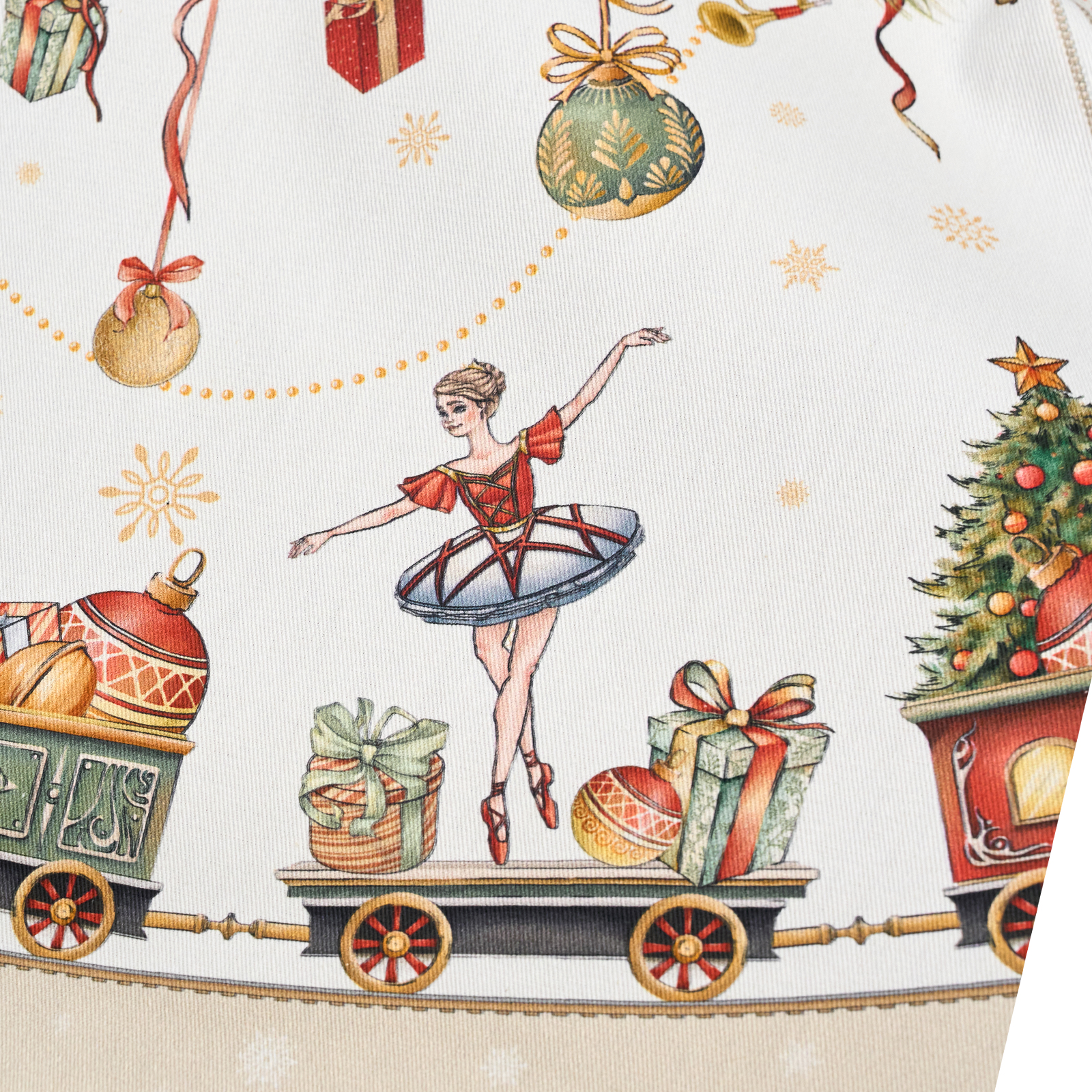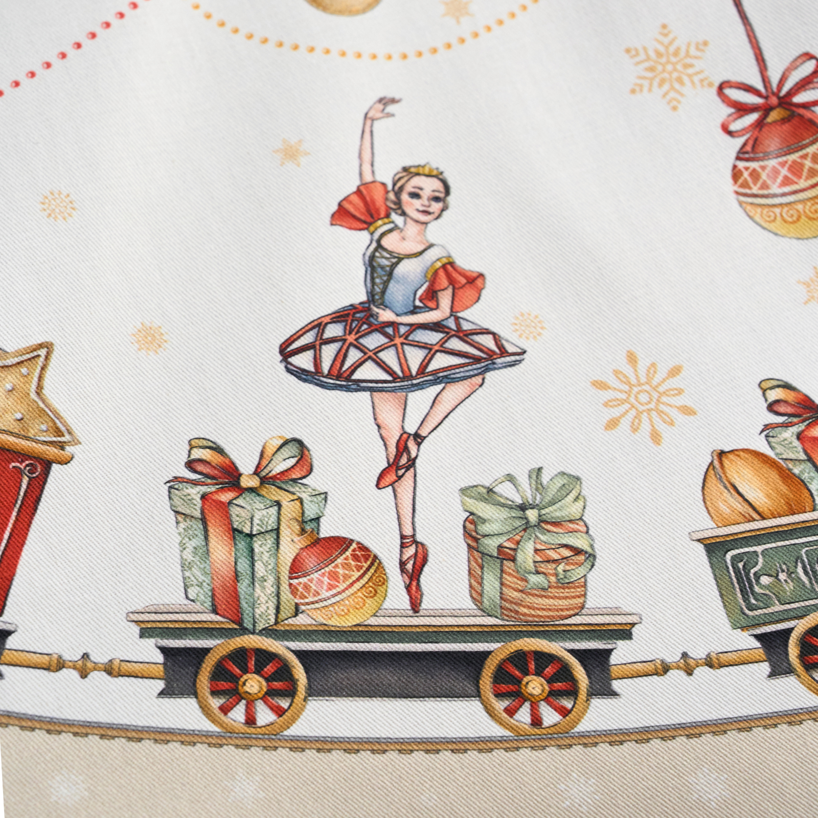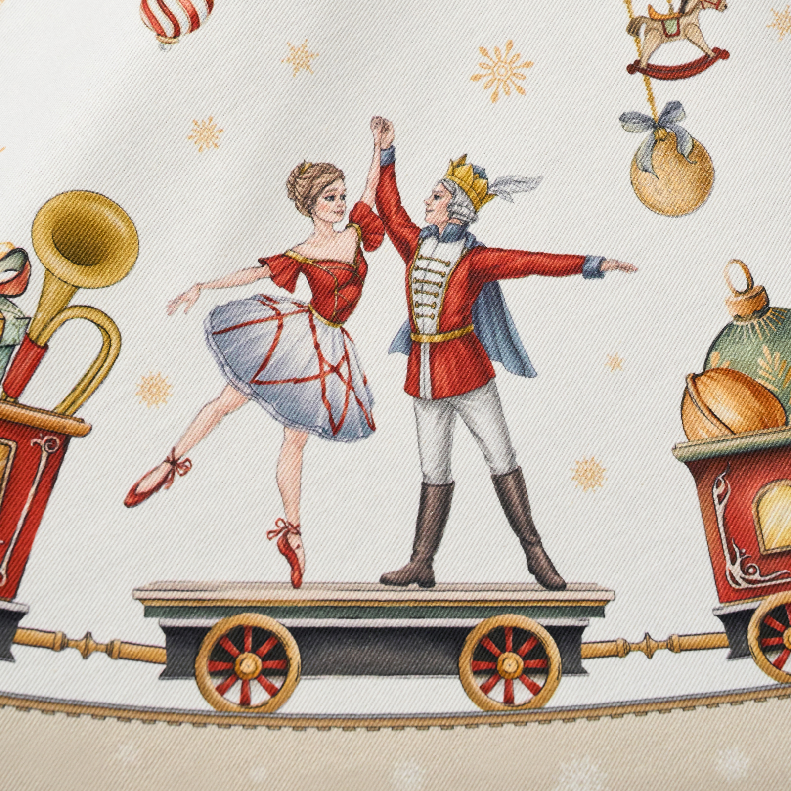 Цифровая печать по всей поверхности гарантирует яркий, детализированный рисунок даже после многочисленных стирок. Дизайн в зимней рождественской стилистике передаёт атмосферу волшебства: на ткани изображены игрушки, подарки и герои балета «Щелкунчик».