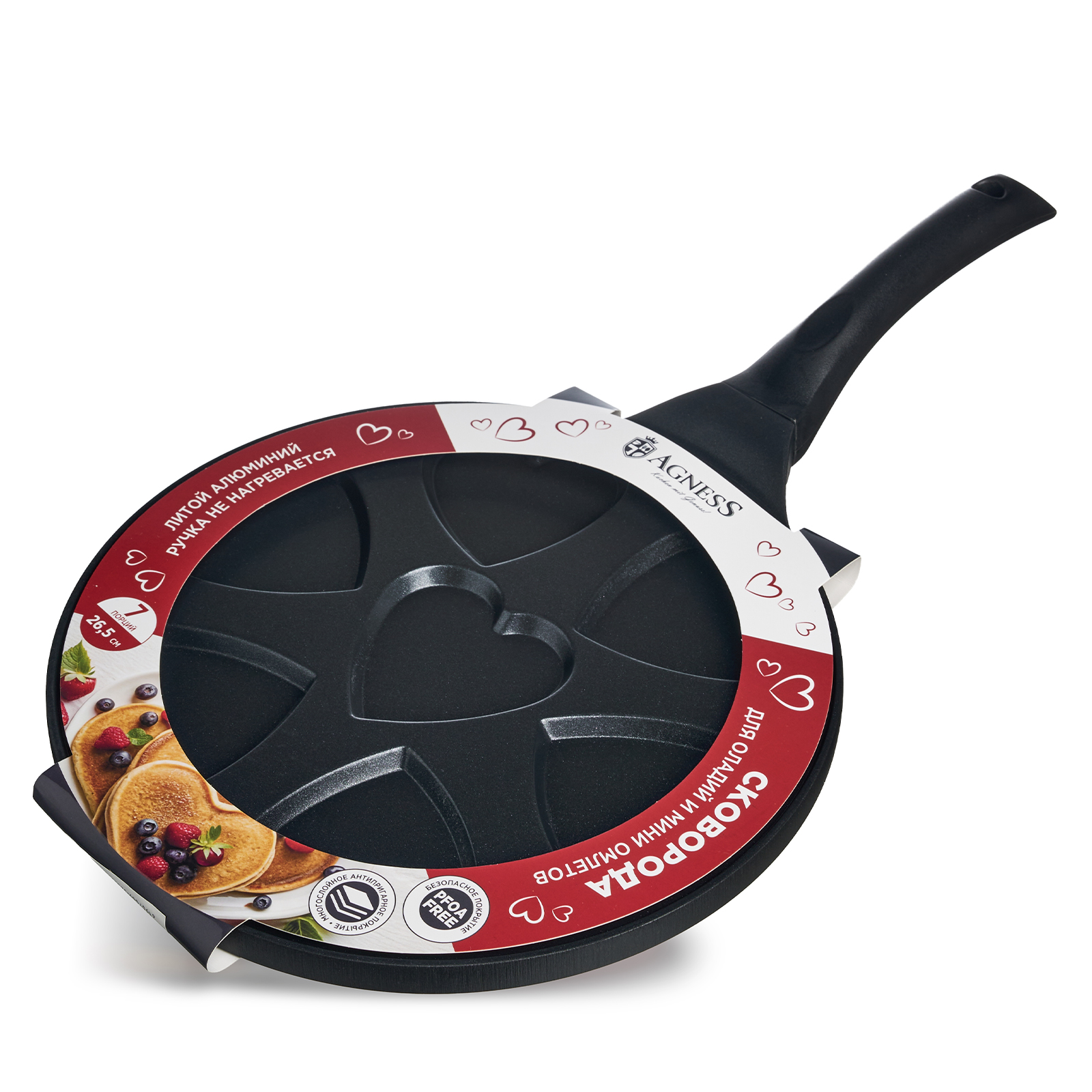 СКОВОРОДА AGNESS "СЕРДЦЕ" ДЛЯ ОЛАДИЙ С АНТИПРИГАР.ПОКРЫТИЕМ ДИАМЕТР=26.5 СМ.
