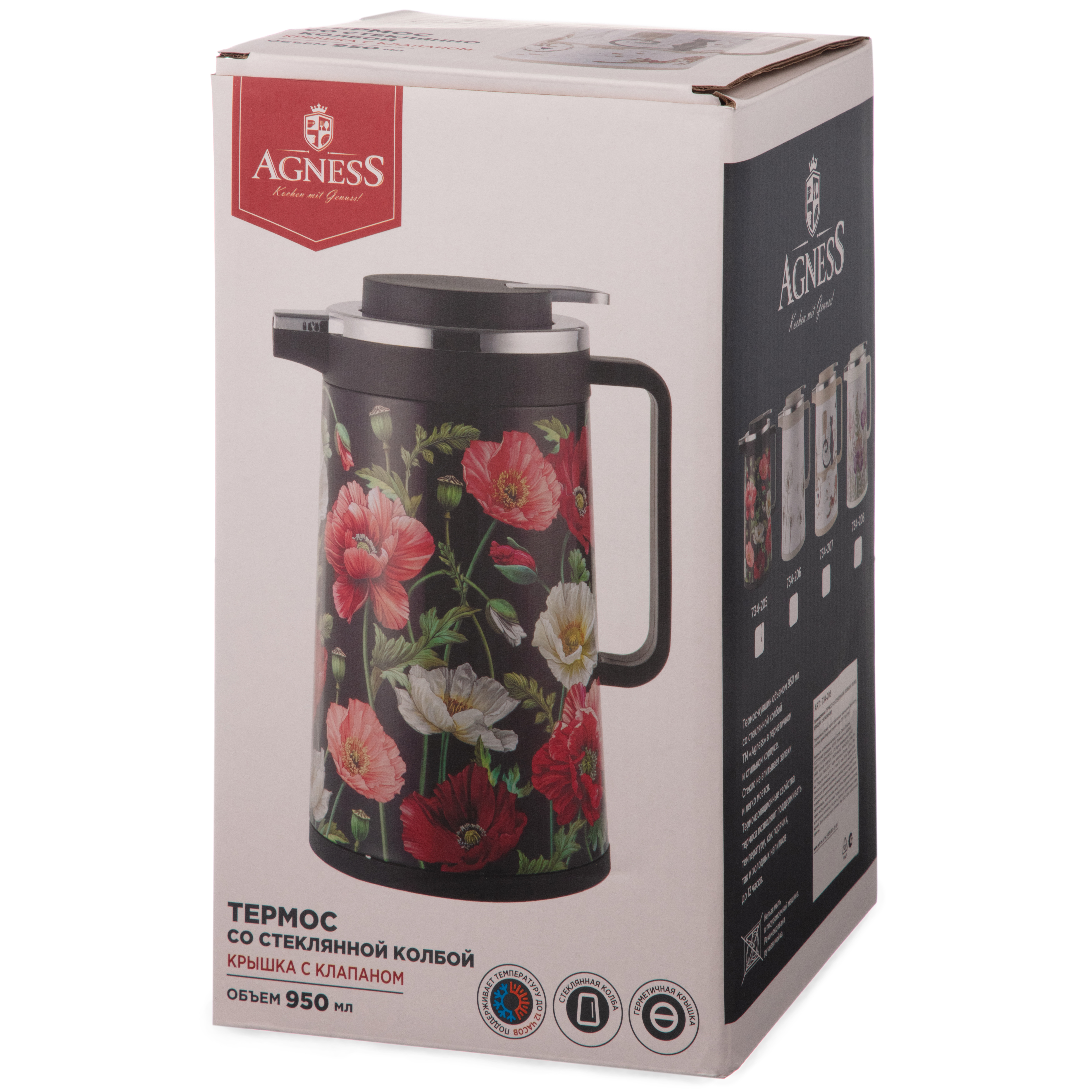 Наслаждайтесь легкостью работы, отдыха и жизни вместе с вашим любимым напитком! Стильный термос AGNESS серии "МАКИ" с двойной стеклянной колбой — сочетает в себе функциональность и эстетику.Термос со стеклянной колбой поддерживает температуру, сохраняя напиток горячим на долгое время. Изысканный пластиковый корпус вокруг внутренней стеклянной колбы не только дополнительно сохраняет тепло, но и обеспечивает надежную защиту. Ручка-стопер и носик обеспечивают легкий доступ к напитку, делая использование термоcа максимально удобным. Просто нажмите на ручку, чтобы налить напиток. Герметичная крышка защищае напиток от протекания. Колба из стекла экологична и безопасна для здоровья, вода в ней не приобретает лишних привкусов. Привлекательный дизайн и современные расцветки делают термос AGNESS неотъемлемым элементом вашего стиля. Выбирайте качество, комфорт и стиль термосом AGNESS.