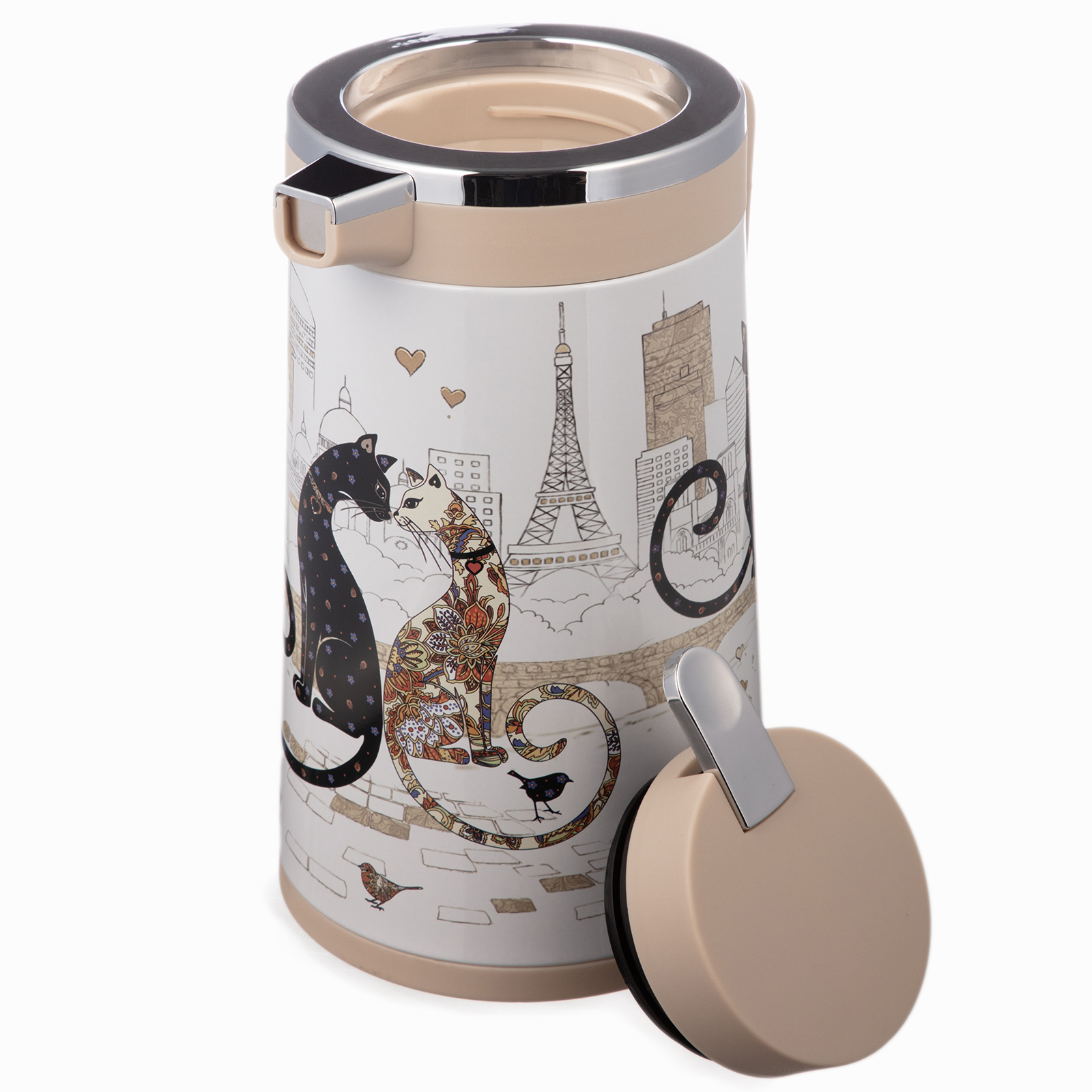 ТЕРМОС СО СТЕКЛЯННОЙ КОЛБОЙ, 950 МЛ, КРЫШКА С КЛАПАНОМ, СЕРИЯ "ПАРИЖСКИЕ КОТЫ"