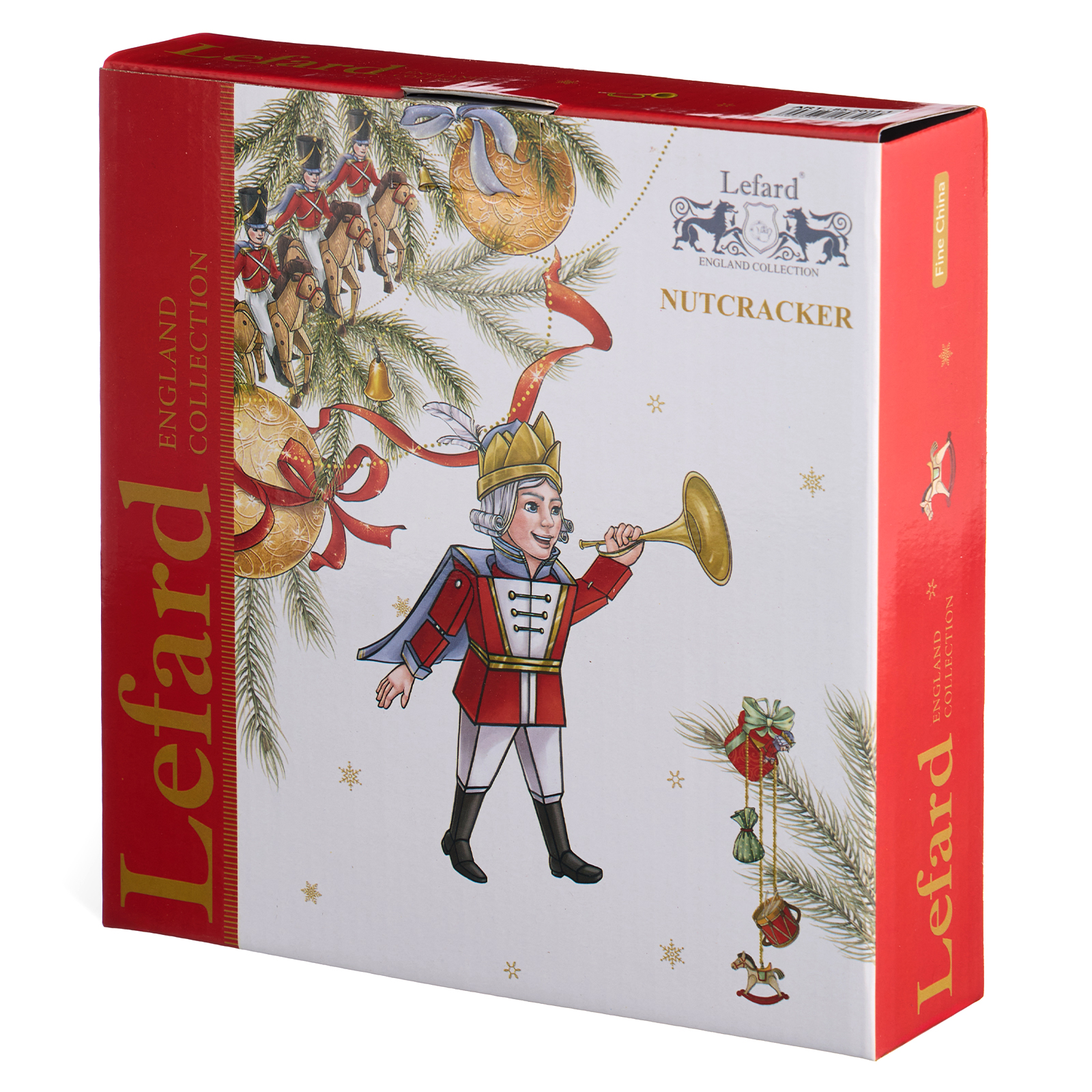 ТМ LEFARD эксклюзивная коллекция «Nutcracker» - Щелкунчик создана по мотивам одноименной истории, с которой знакомы все дети и взрослые. Волшебная история о новогоднем чуде идеально подходит для создания праздничного настроения. Широкий ассортимент тарелок, салатников, кружек, чайных пар поможет сервировать праздничный стол и создать сказочную атмосферу. Все изделия выполнены из качественного тонкого фарфора. Прямые современные формы, удобные объемы. Стильная, подарочная упаковка. Дарите сказку друзьям и близким людям! Можно использовать в СВЧ, не рекомендуется мыть в посудомоечных машинах.