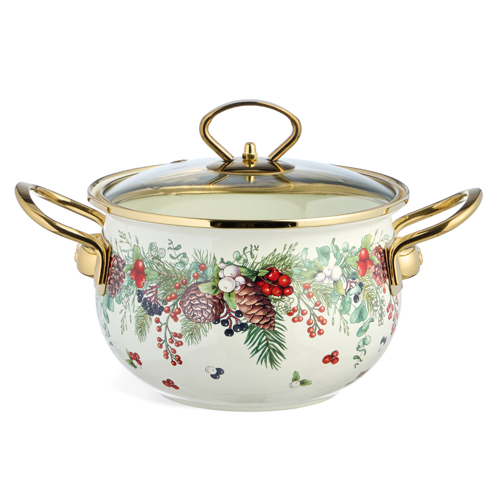КАСТРЮЛЯ ЭМАЛИРОВАННАЯ AGNESS СО СТЕКЛЯННОЙ КРЫШКОЙ СЕРИЯ "CELEBRATION", 2.0 Л, 18*11 СМ