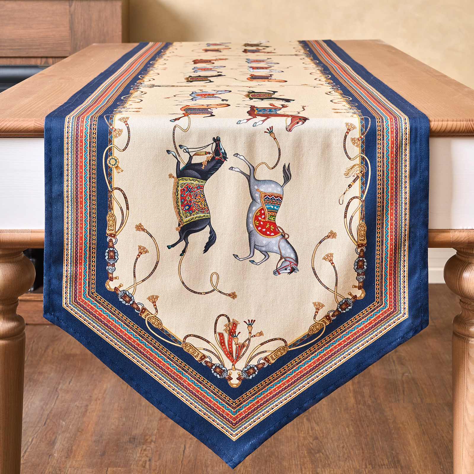Хорошо комбинируется с однотонными скатертями, посудой в классическом или бохо стиле. Подходит для дома, дачи, загородного коттеджа. Размер 45×145 см идеально подойдёт для прямоугольных и овальных столов, позволяя создать аккуратный и завершённый образ сервировки.