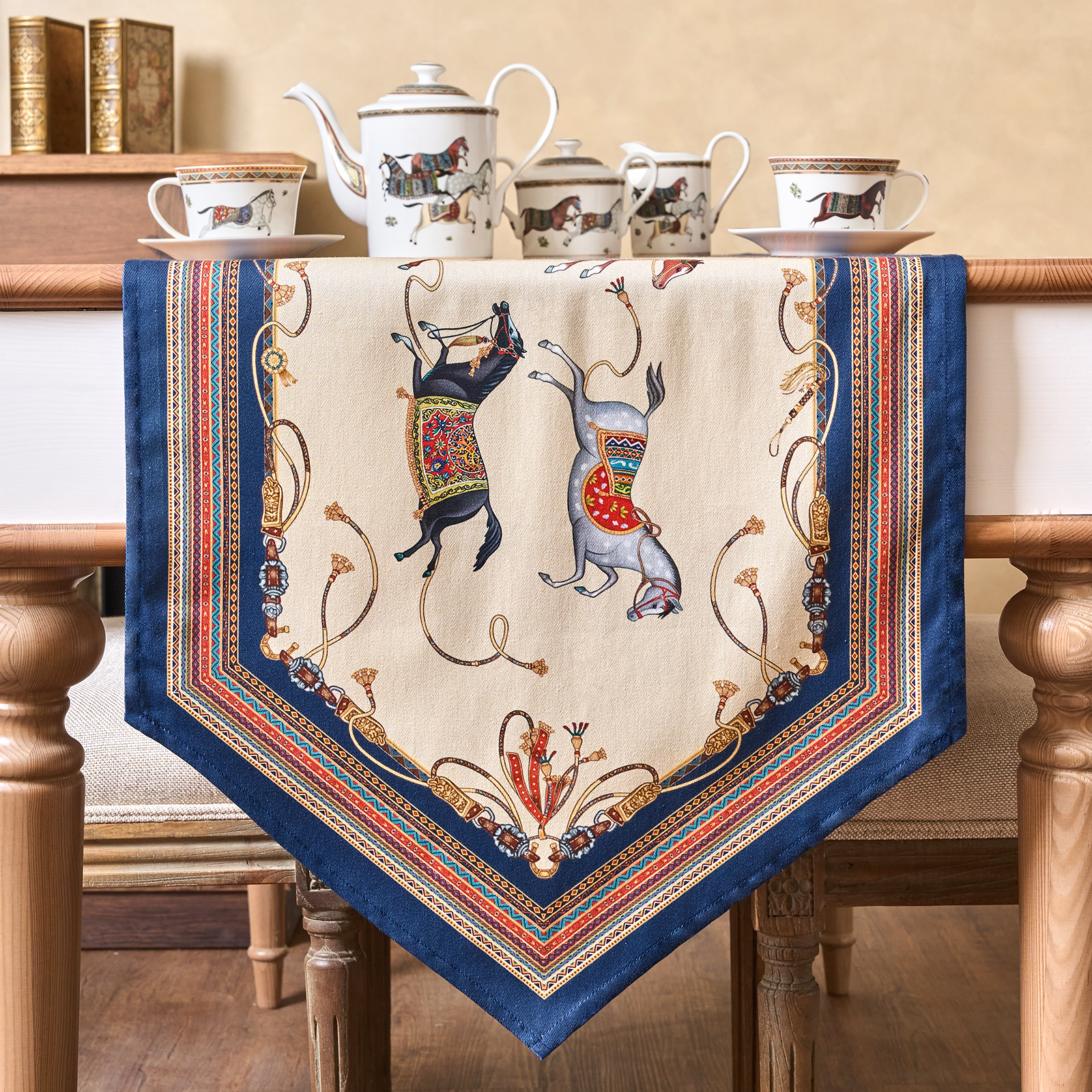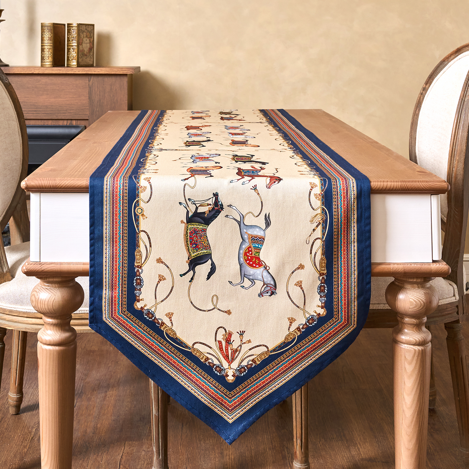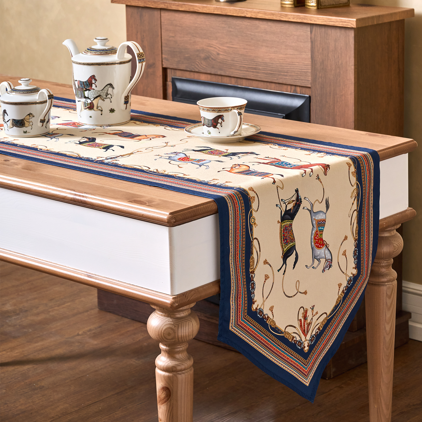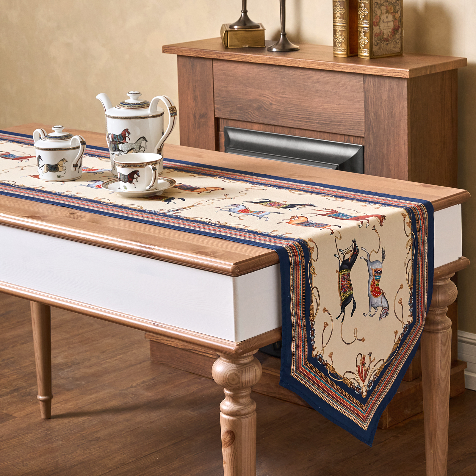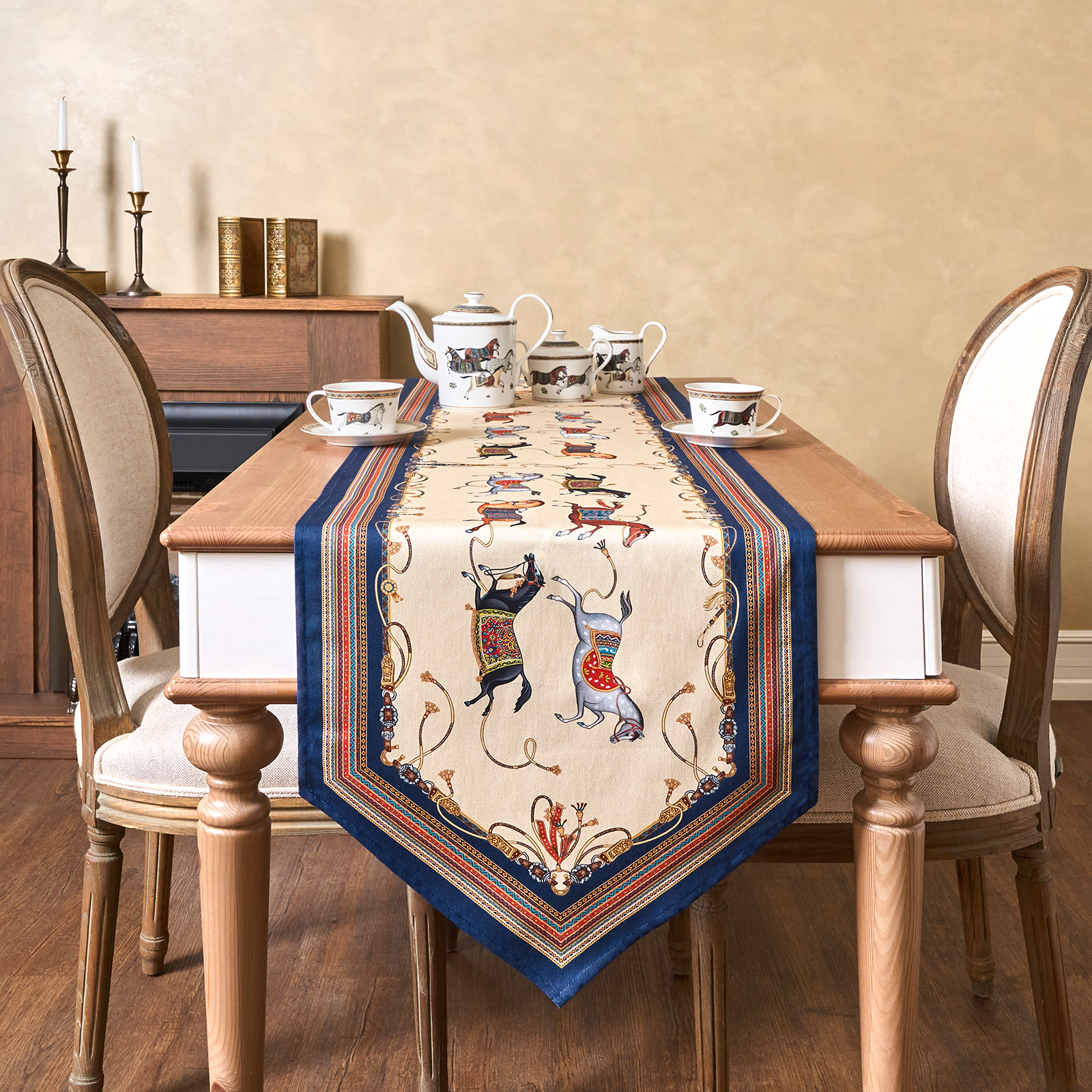 Хорошо комбинируется с однотонными скатертями, посудой в классическом или прованском стиле, текстилем в зимней палитре. Подходит для дома, дачи, загородного коттеджа. Размер 45×300 см идеально подойдёт для прямоугольных и овальных столов, позволяя создать аккуратный и завершённый образ сервировки.
