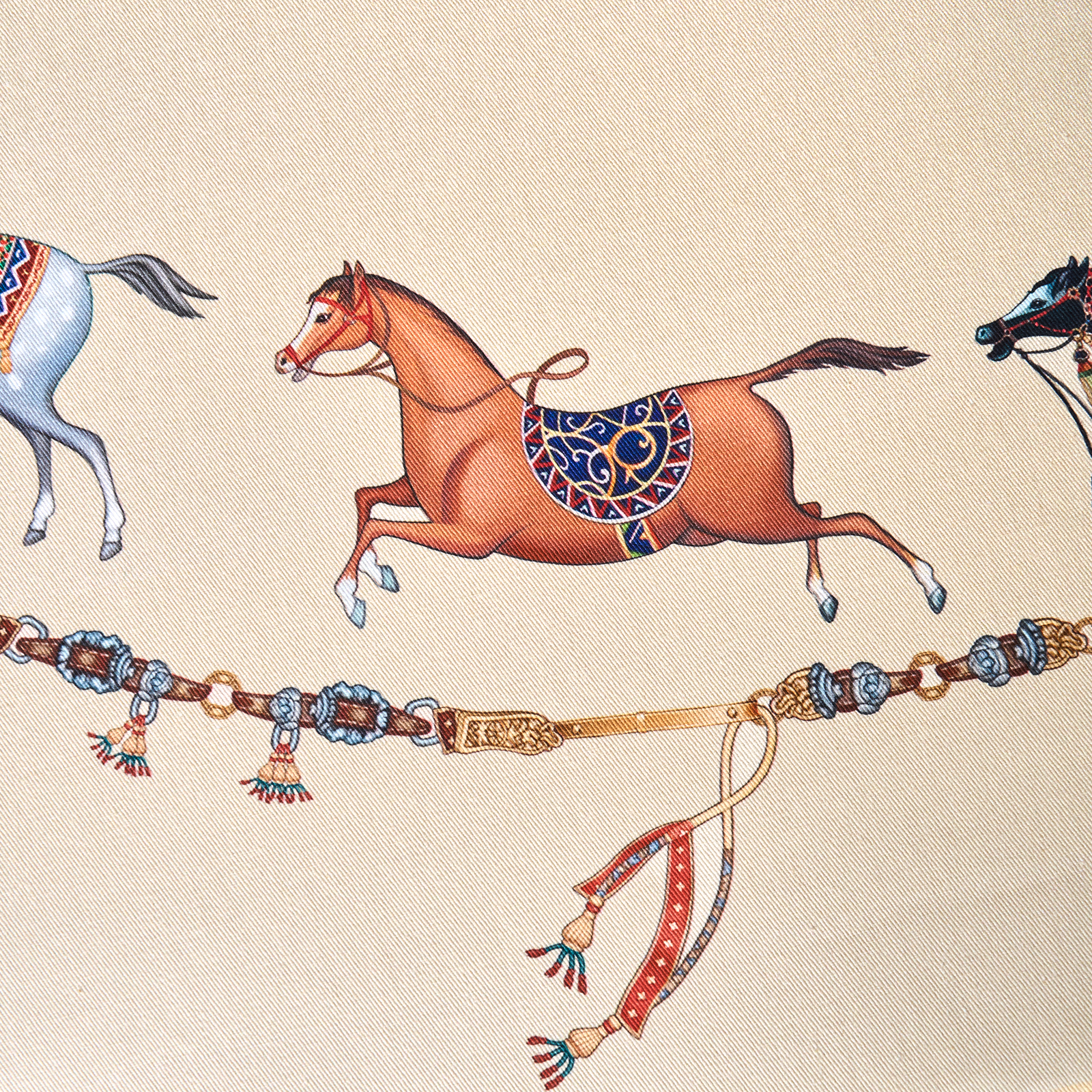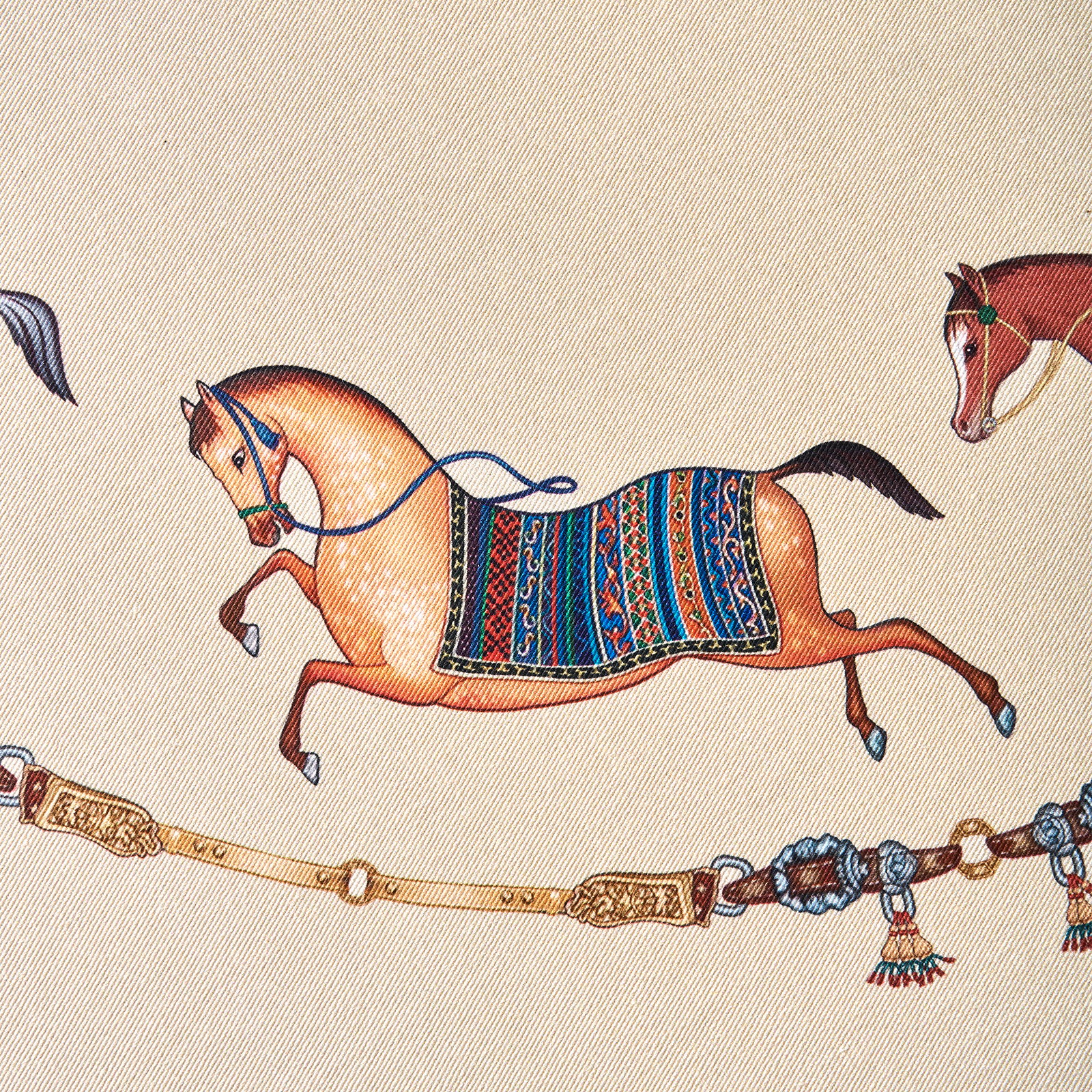 Благородный тёмно-синий фон украшен орнаментом с грациозными лошадьми, создавая атмосферу восточной роскоши. Лошадь — символ 2026 года, поэтому скатерть будет актуальна как для ежедневного использования в интерьере в стиле бохо, так и для праздничной сервировки. Авторский принт разработан художниками эксклюзивно для Lefard и нанесён методом цифровой печати, что гарантирует яркость и стойкость красок даже после множества стирок.
