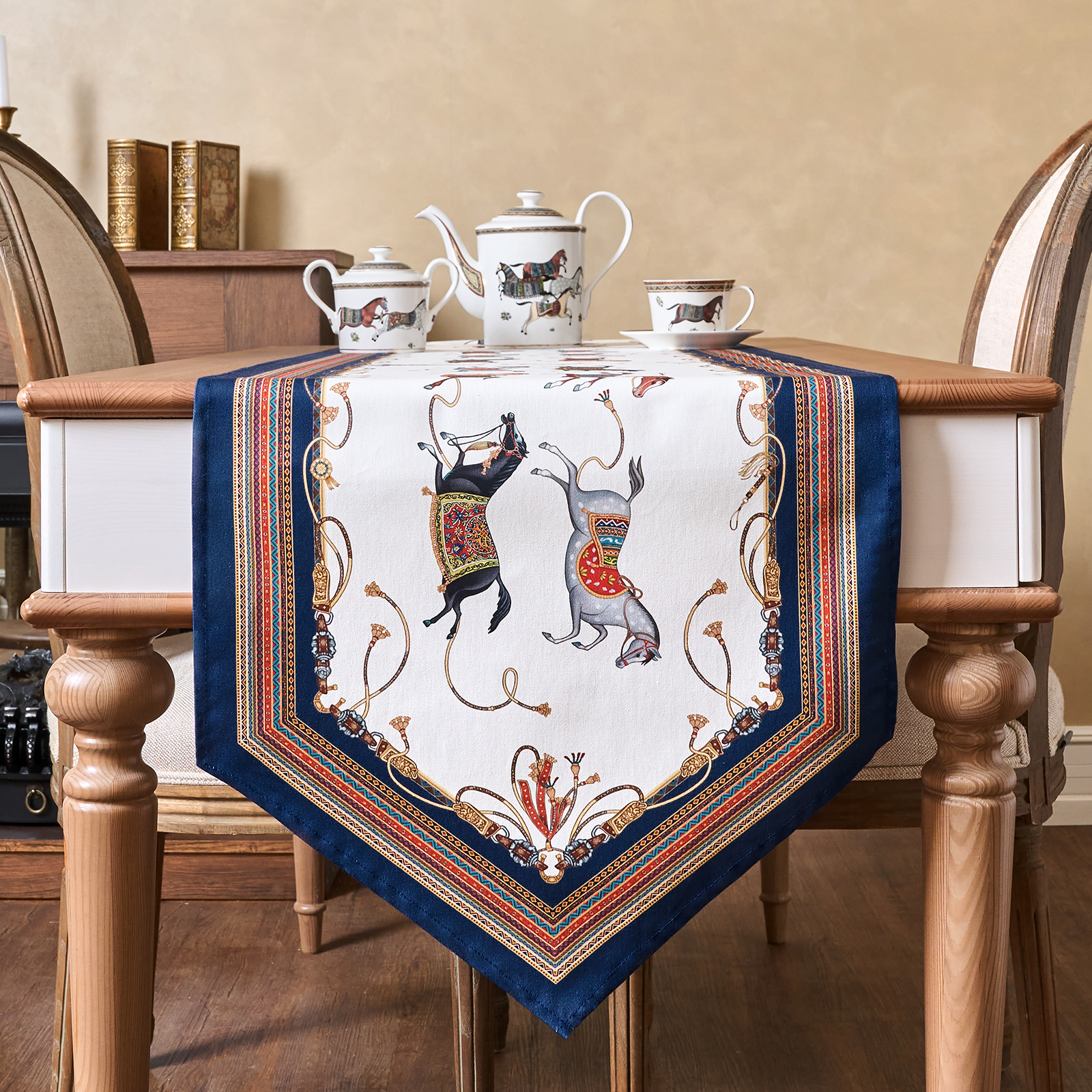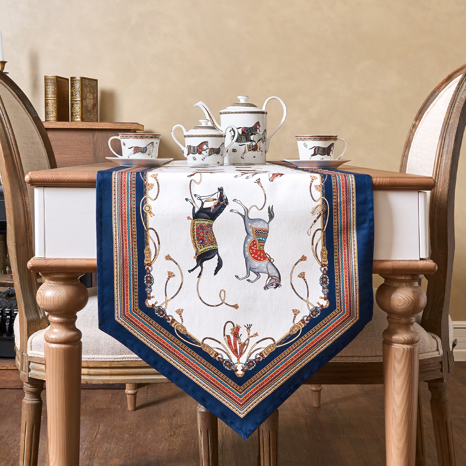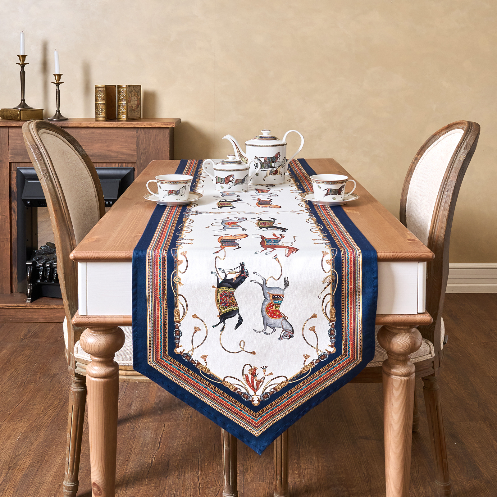 Хорошо комбинируется с однотонными скатертями. Подходит для дома, дачи, загородного коттеджа. Размер 45×215 см идеально подойдёт для прямоугольных и овальных столов, позволяя создать аккуратный и завершённый образ сервировки.