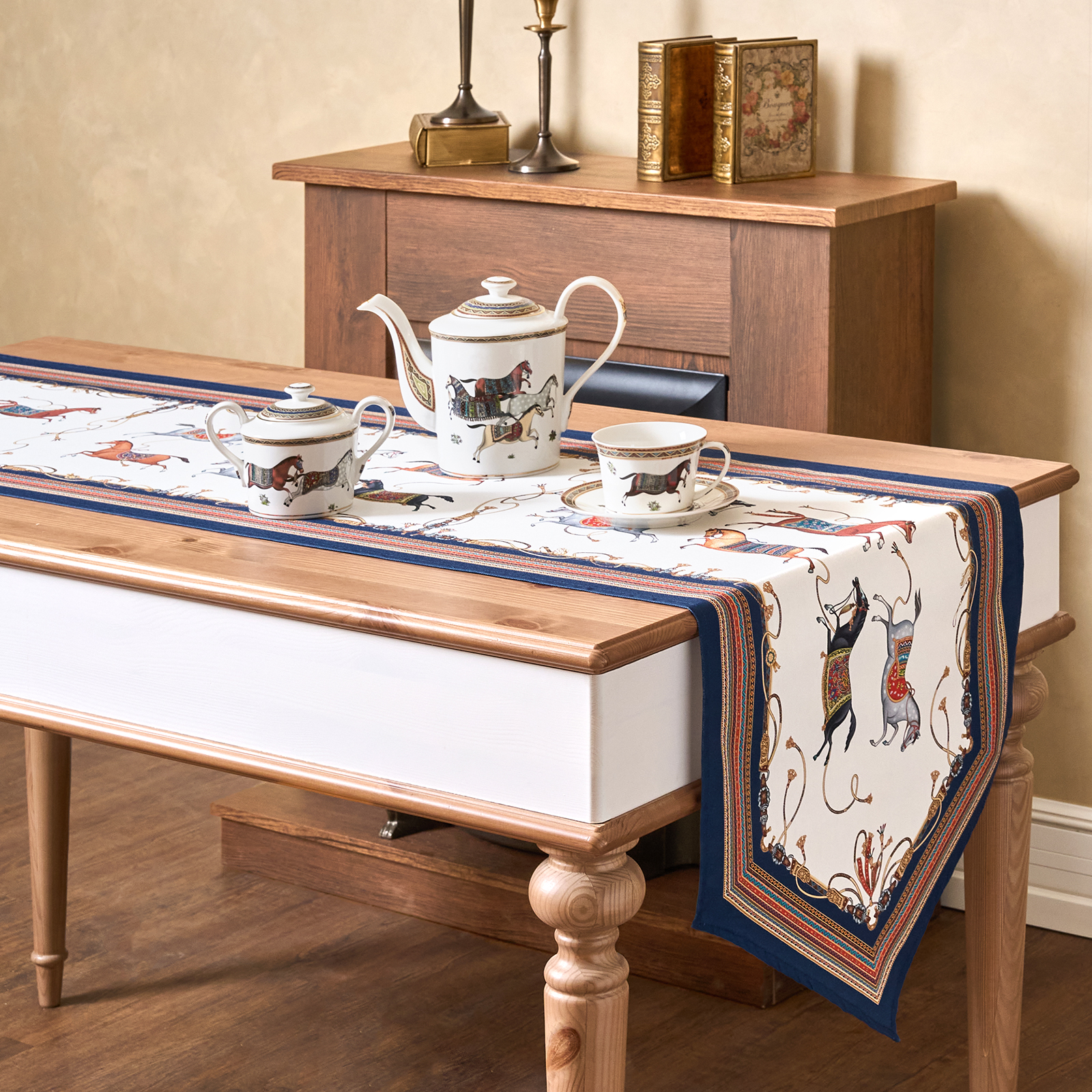 Хорошо комбинируется с однотонными скатертями, посудой в классическом или бохо стиле. Подходит для дома, дачи, загородного коттеджа. Размер 45×145 см идеально подойдёт для прямоугольных и овальных столов, позволяя создать аккуратный и завершённый образ сервировки.