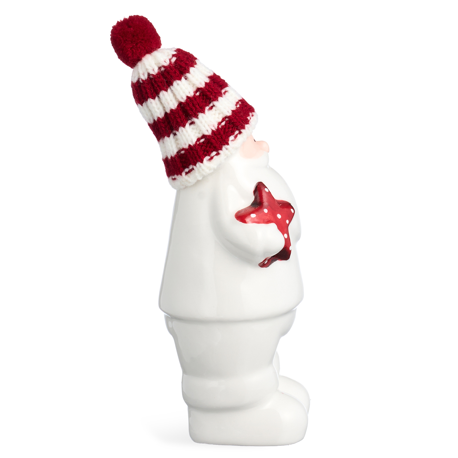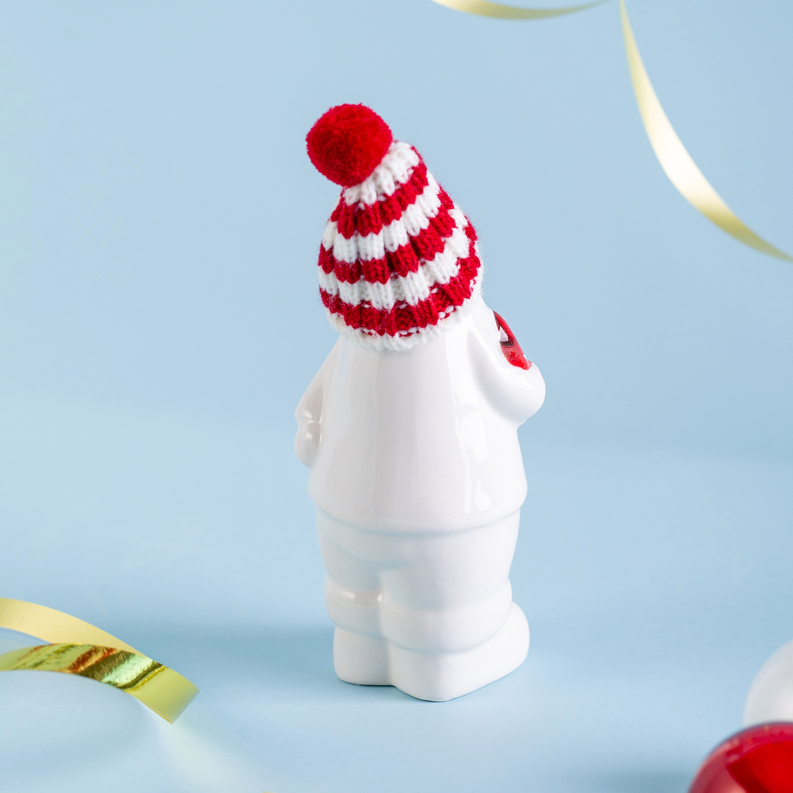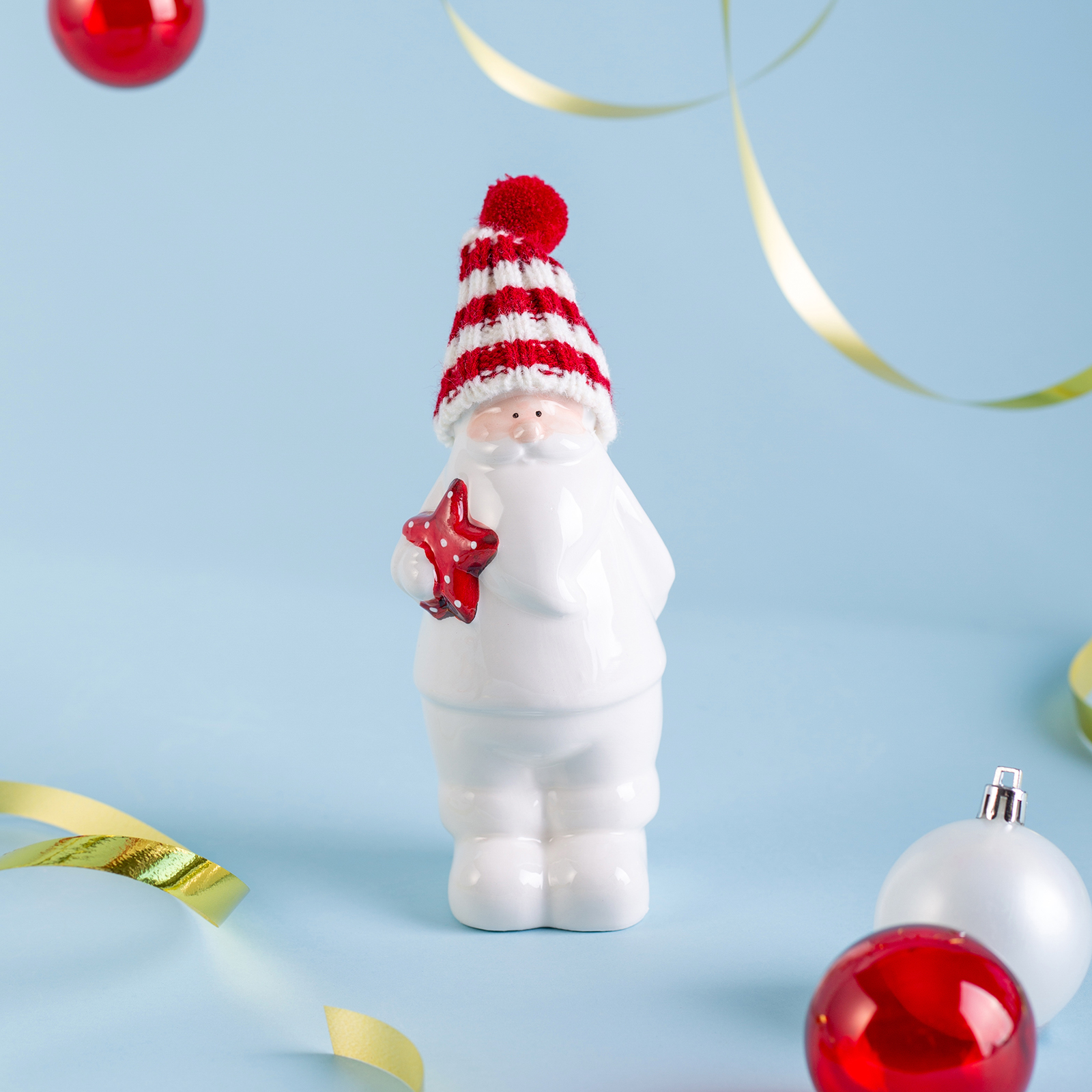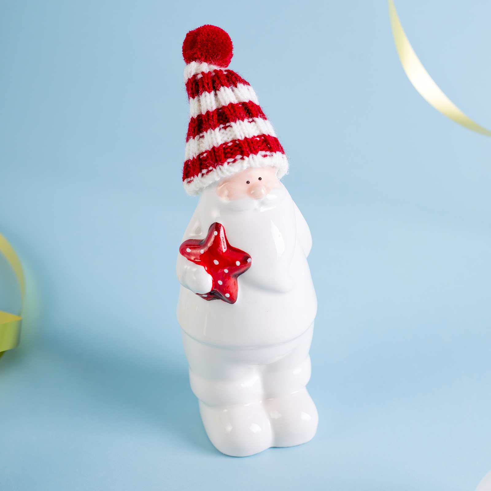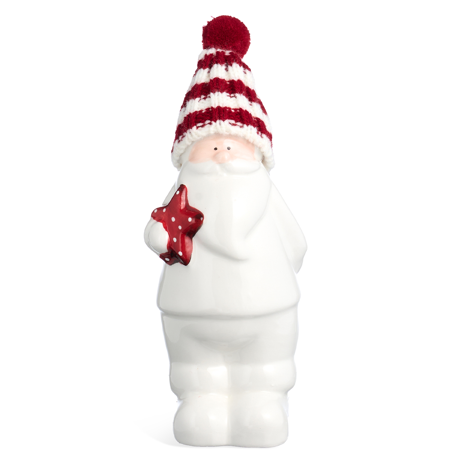 Пусть ваш дом наполнится теплом, волшебством и предвкушением чуда — с этим очаровательным Дедом Морозом из белоснежного фарфора! Он словно только что вышел из зимнего леса, чтобы принести вам подарок: в мягкой полосатой шапке с пушистым помпоном, с добрым взглядом и красной звездой в руках — он готов стать центром вашего новогоднего декора или милым акцентом на полке, камине или рабочем столе.