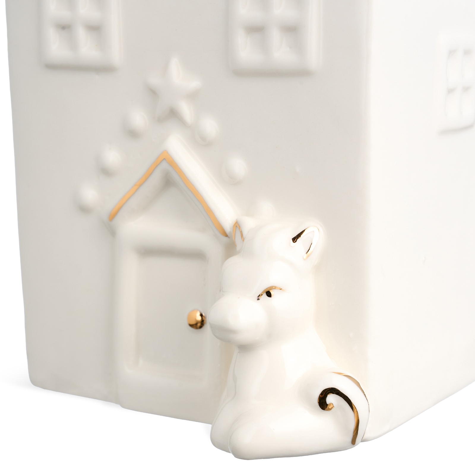 - Дизайн в виде миниатюрного домика с рельефными окнами, золотой каймой по крыше и дверью с звёздочкой — создаёт ощущение уюта и волшебства;