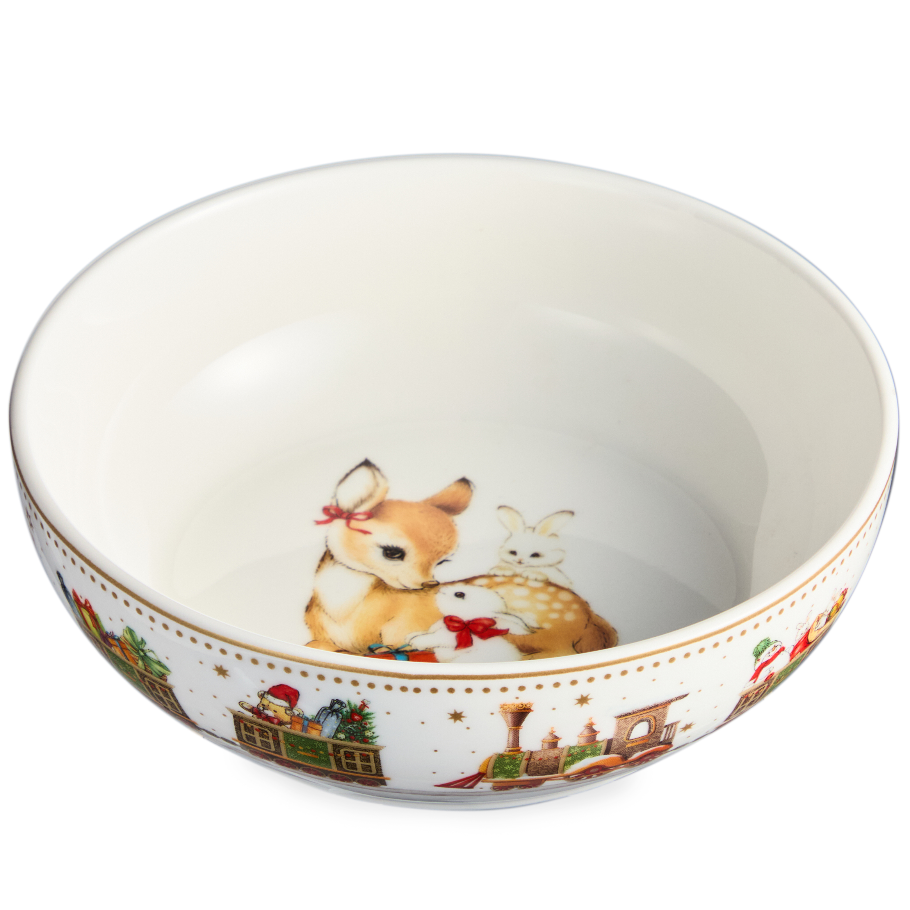 ТМ LEFARD New Year Collection для детей украсит праздничный новогодний стол и порадует Ваших детей в самые ожидаемые дни в году. С 1699 года указам Петра Первого Новый год празднуется в ночь на 1 января каждого года (по юлианскому календарю). Символом праздника стал дедушка с белой бородой, имя которого - Дед Мороз, и его помощница - девочка из снега по имени Снегурочка. Изделия с любимыми персонажами, лесными жителями и нарядной новогодней Елкой в веселом хороводе выполнены на тонкостенном высококачественном фарфоре. Посуда упакована в яркие коробки. Это прекрасный подарок. Продукция прошла сертификацию, безопасна для контакта с пищевыми продуктами. Можно использовать в СВЧ, не рекомендуется мыть в посудомоечных машинах во избежание повреждения золотой отводки (деколи) на изделиях.