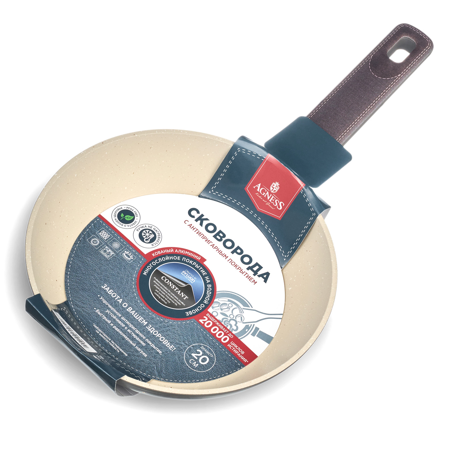 СКОВОРОДА AGNESS С АНТИПРИГАРНЫМ ПОКРЫТИЕМ "CONSTANT" - это идеальный выбор для тех, кто ценит удобство и функциональность в посуде. Одним из главных достоинств этой сковороды является УСИЛЕННОЕ АНТИПРИГАРНОЕ ПОКРЫТИЕ "CONSTANT", которое позволяет готовить без использования большого количества масла и выдерживает до 20 000 циклов истирания. Благодаря этому, продукты готовятся быстрее и сохраняют свои полезные свойства. Равномерное нагревание сокращает время приготовления и сохраняет вкус и аромат продуктов. Многослойная структура покрытия обеспечивает превосходные эксплуатационные качества и увеличивает срок службы, не содержит PFOA. Эргономичная ручка из бакелита со стильными вставками не нагревается и не плавится, обеспечивает безопасное использование сковородки в процессе приготовления пищи. Посуда AGNESS - это современный дизайн и новейшие технологии производства.