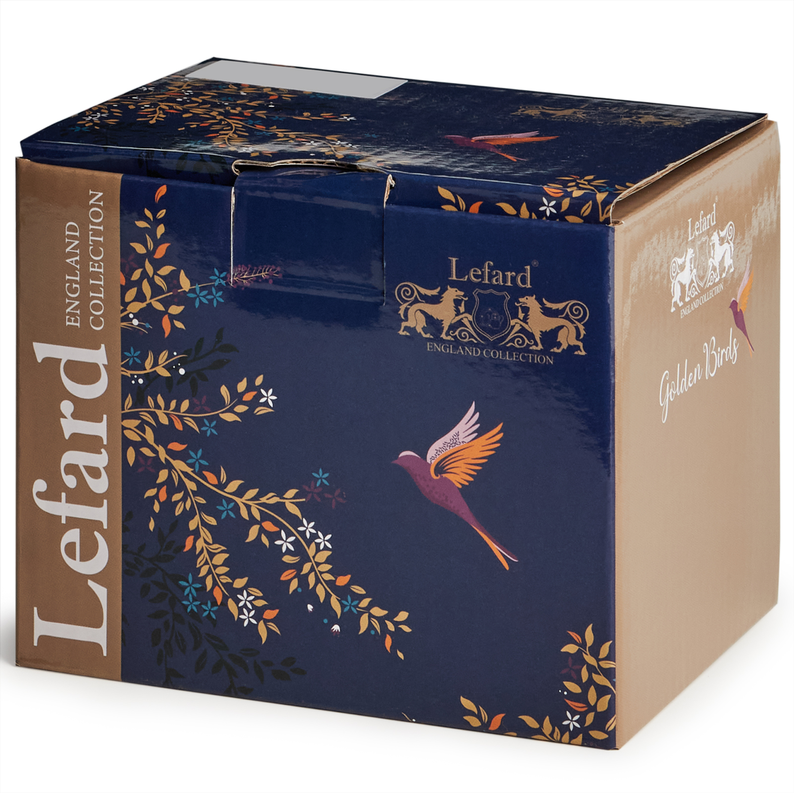 ТМ LEFARD роскошная коллекция «Golden Birds» яркой сказочной посуды из качественного фарфора. Перенесите себя в новый яркий мир, созданный для традиционного чаепития. Необычайно красивая, изящная, изысканная и утонченная посуда с изображением экзотических птиц и растений. Краски рисунка сохраняют яркость даже после длительного использования. Прекрасный подарок. Изделия упакованы в фирменную цветную коробку. Нельзя использовать в микроволновой печи. Разрешена только деликатная ручная мойка.