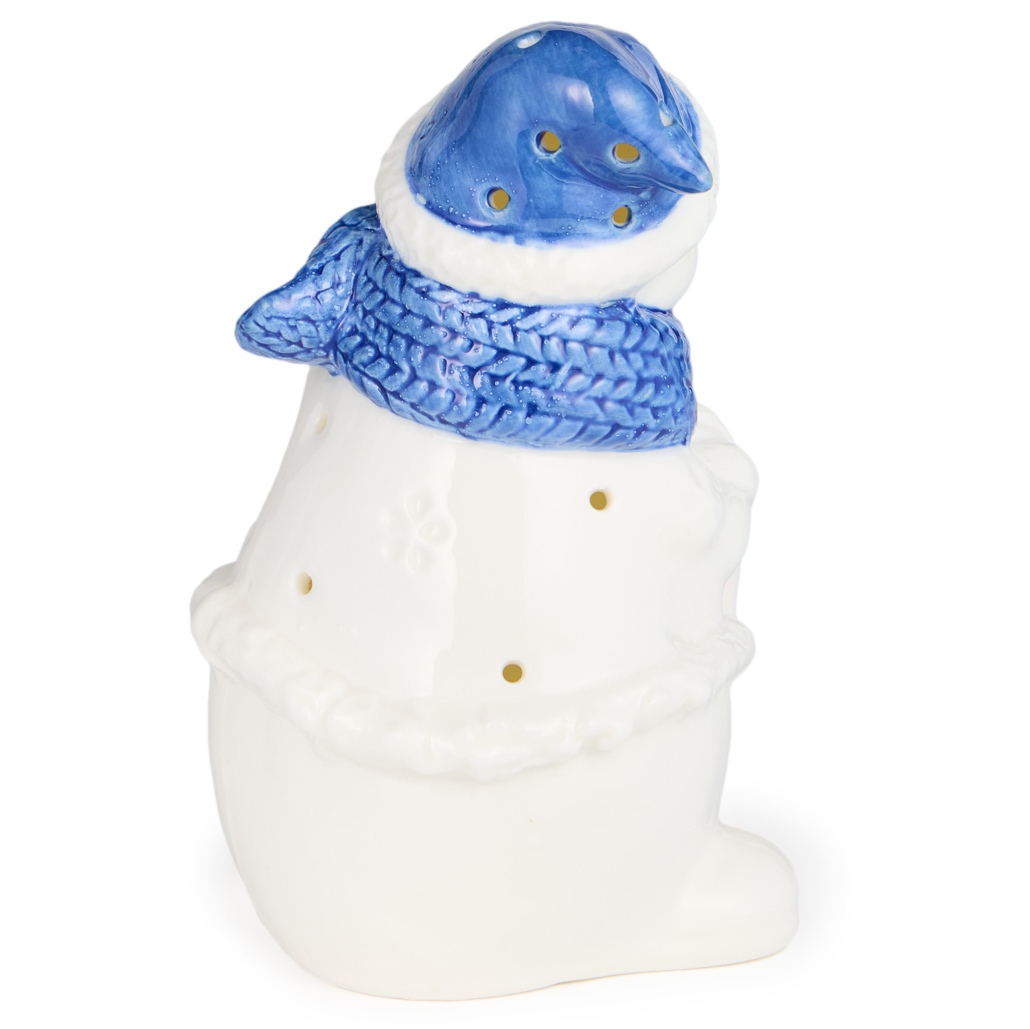 Пусть в вашем доме всегда живёт дух зимы — добрый, уютный и сказочный! Этот очаровательный снеговик из белоснежного фарфора с ярким синим шарфом и шапкой — не просто украшение, а маленький персонаж, который радует глаз каждый день. Его ласковая улыбка, золотой носик и объёмный шарф создают ощущение тепла и веселья, даже когда за окном метель.