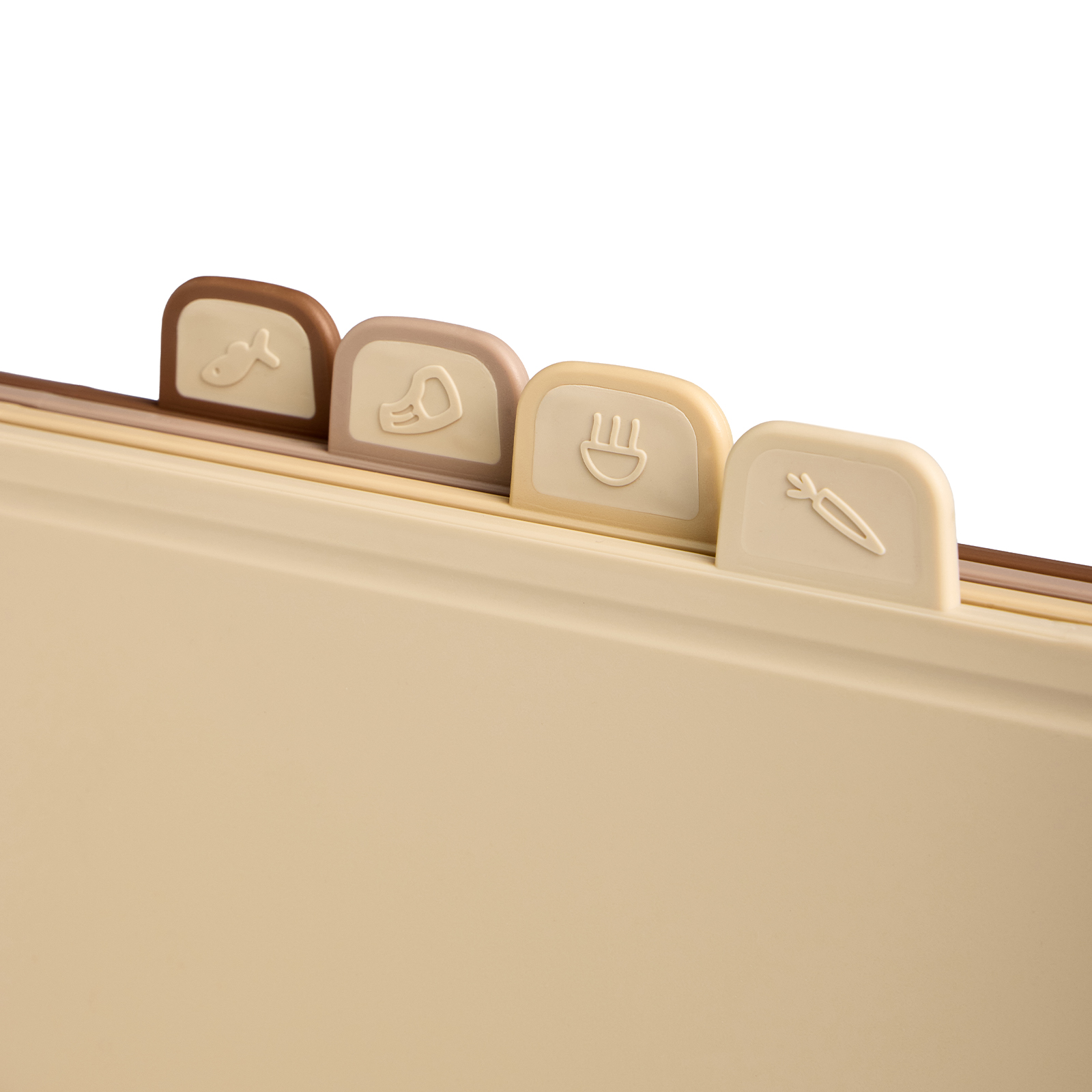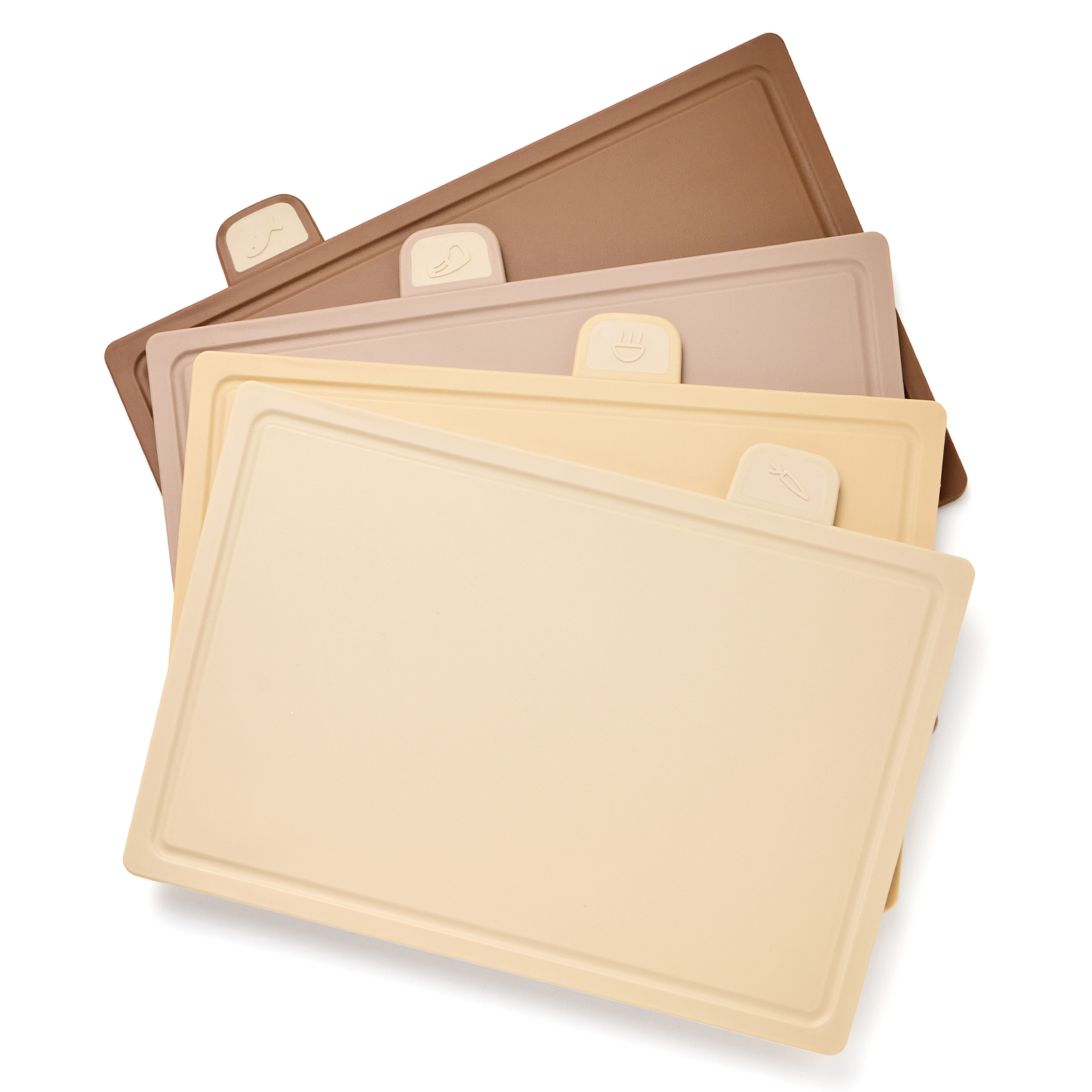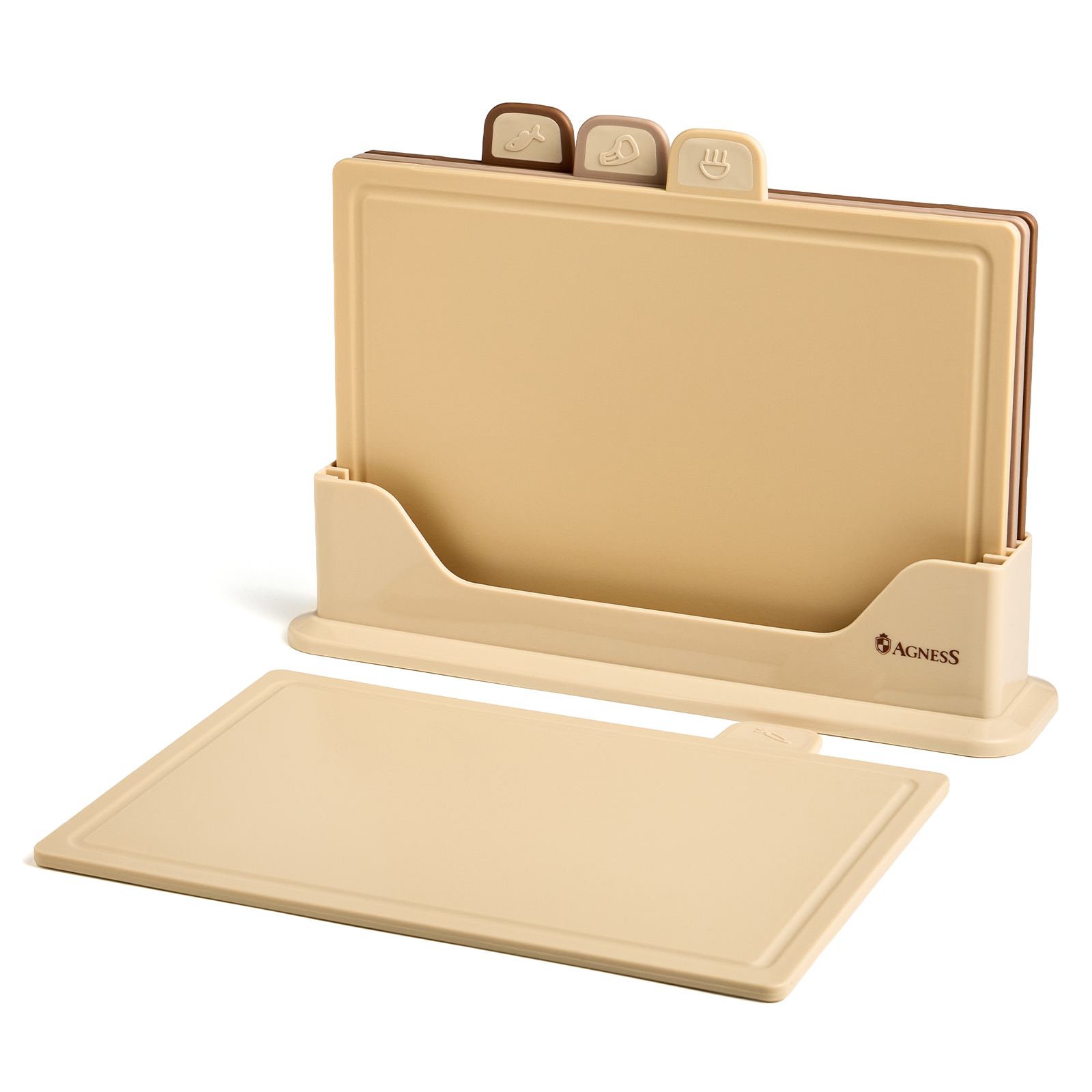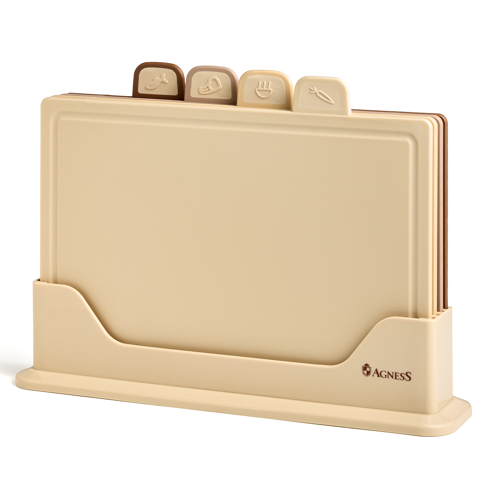 Набор разделочных досок состоит из четырёх разноцветных досок , размещенных в оригинальной подставке, что делает набор не только многофункциональным, но и очень удобным для хранения на кухне. Цветные разделочные доски выполнены из прочного пищевого пластика и могут использоваться для нарезки сырого мяса и рыбы, овощей, фруктов, варенных и копченых продуктов, хлеба и т.д.Небольшой выступающий "ярлычок", имеющийся на каждой из досок, позволяет с легкостью извлекать их из подставки, а также служит удобной ручкой.Набор станет незаменимым и полезным аксессуаром на вашей кухне, который к тому же и стильно дополнит кухонный интерьер. Рекомендована ручная мойка.