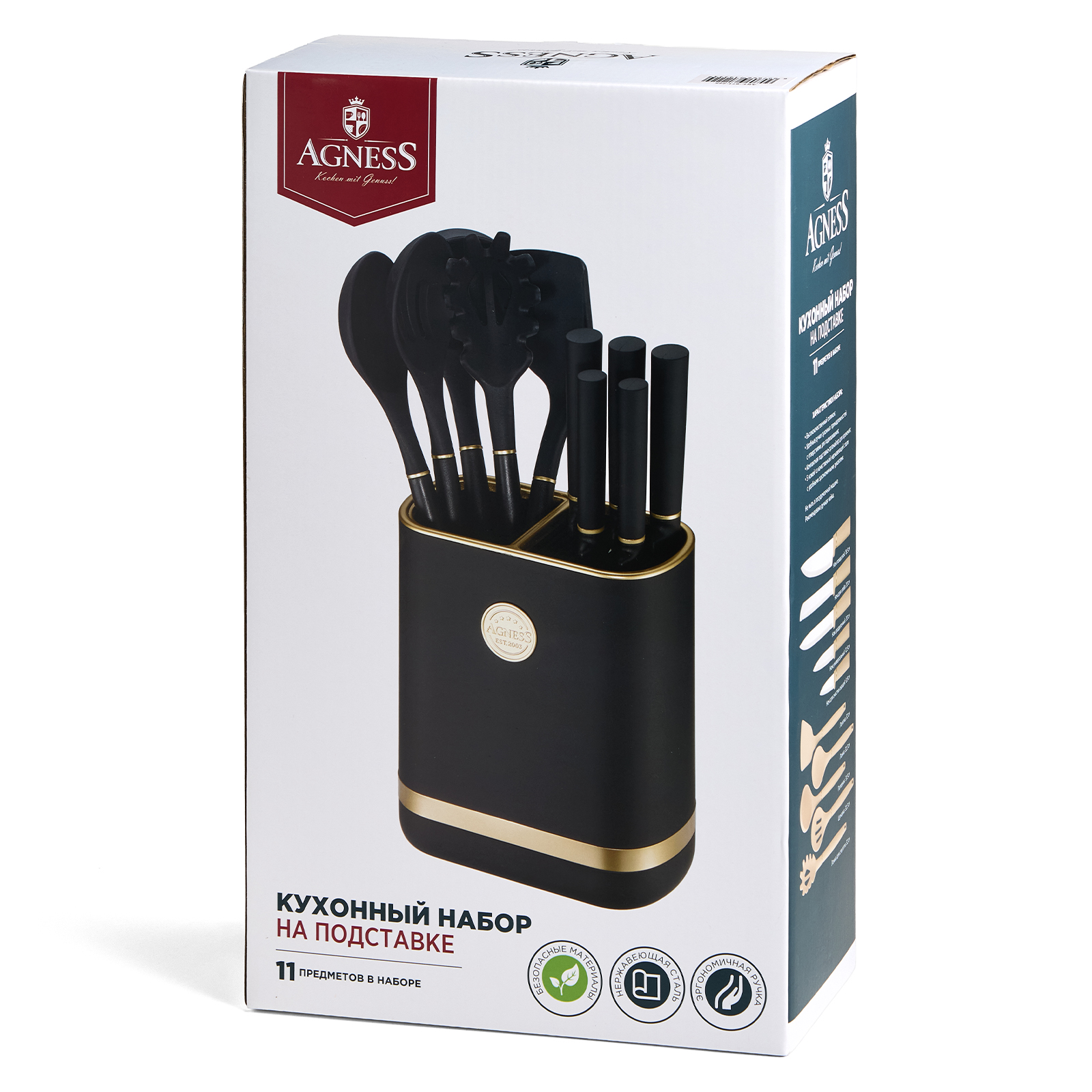 НАБОР AGNESS ИЗ 11ПР: 5 НОЖЕЙ,ПОДСТАВКА,ПОЛОВНИК,ЛОЖКА,ЛОПАТКА,ШУМОВКА,ЛОЖКА ДЛЯ СПАГЕТТИ