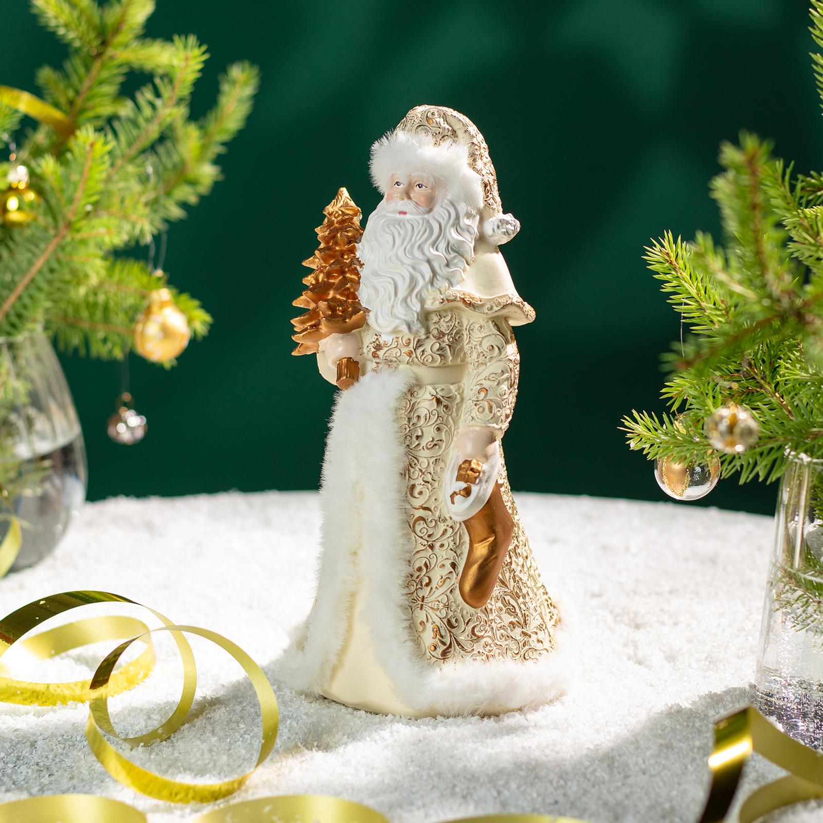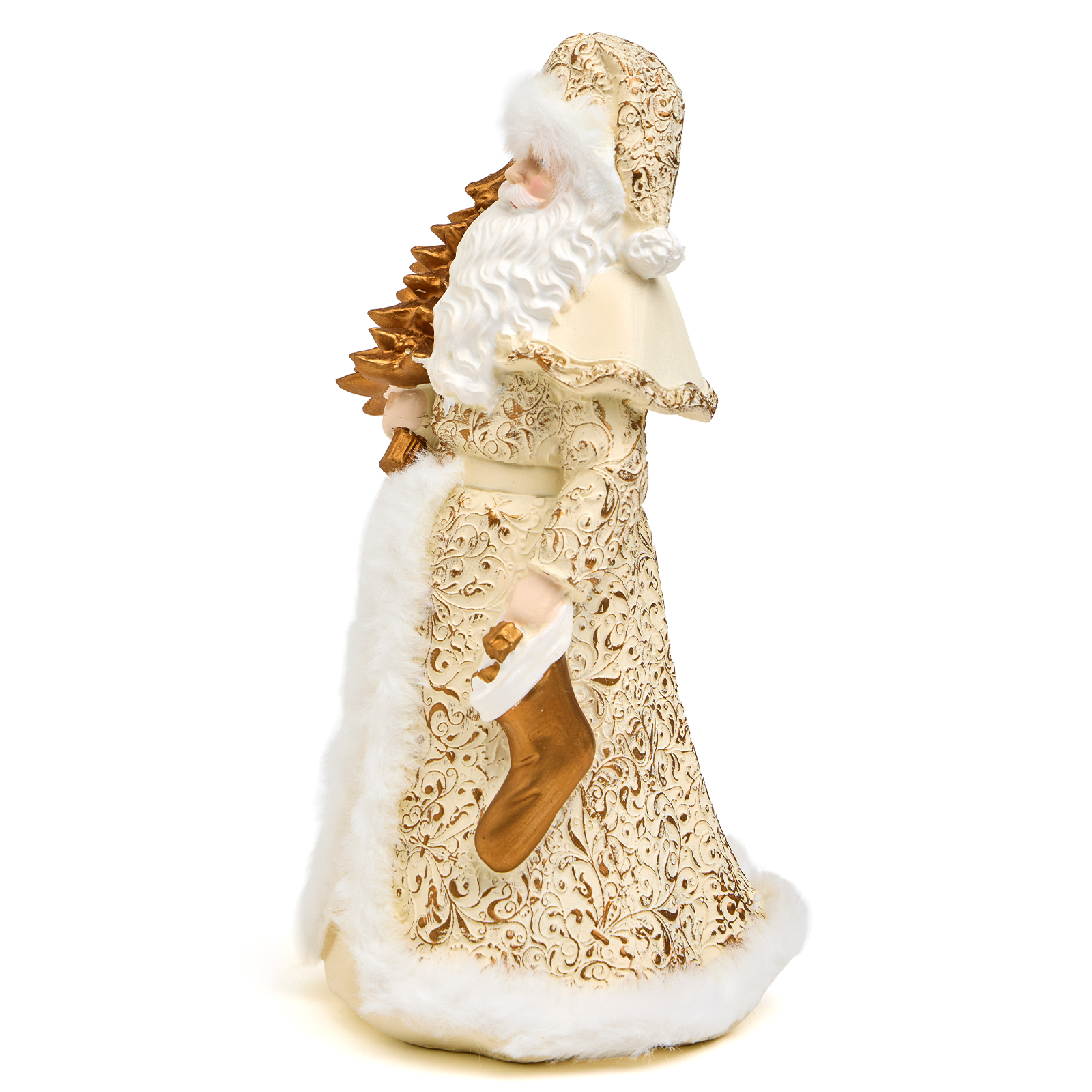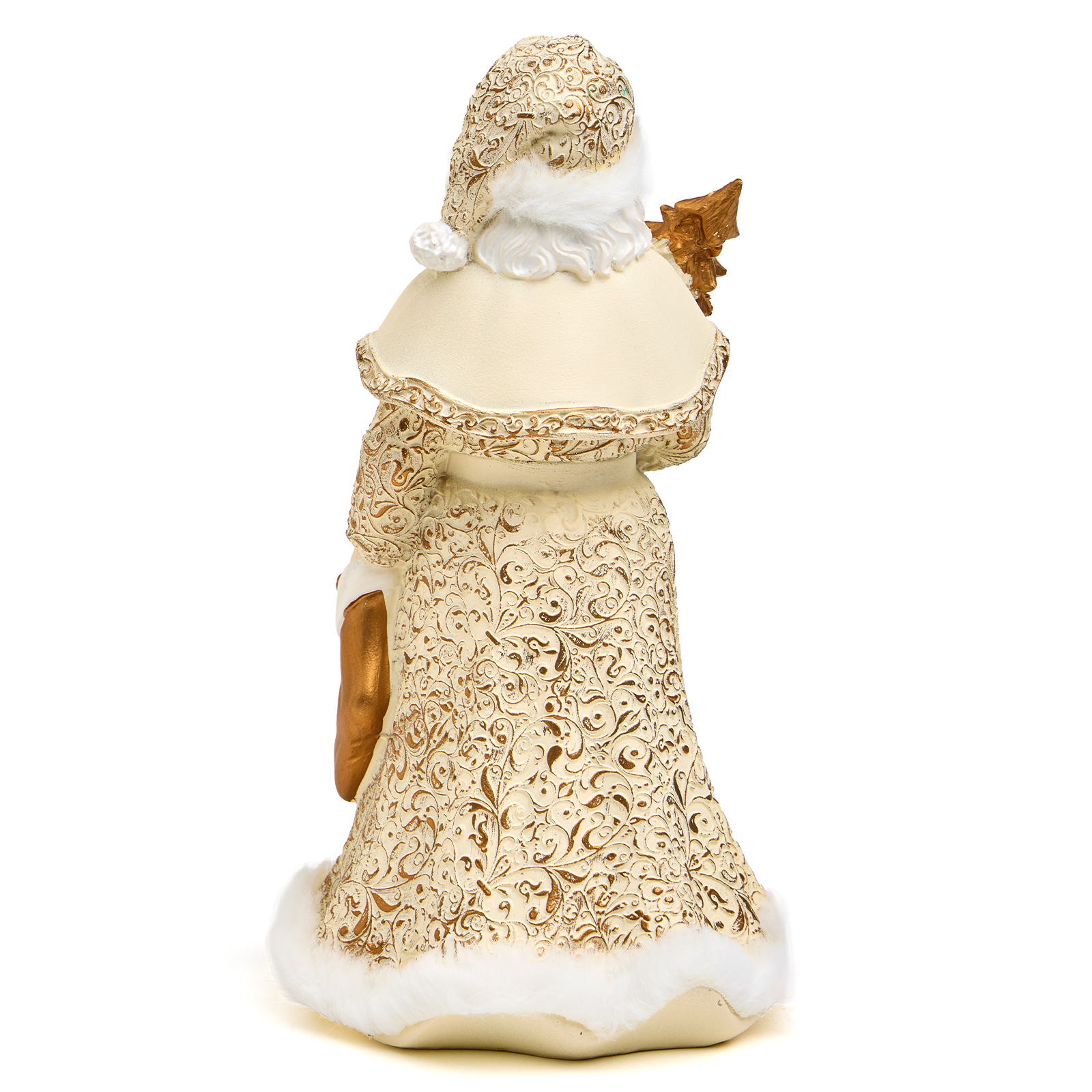 Пусть ваш дом наполнится теплом и волшебством — с этим величественным Дедом Морозом из прочного и благородного полистоуна! Он словно только что сошёл со страниц новогодней сказки: в роскошном кафтане с золотыми узорами и белым мехом, с пышной бородой и золотой ёлочкой в руках — он готов стать центром вашего новогоднего декора или любимым акцентом на камине, полке или рядом с ёлкой.