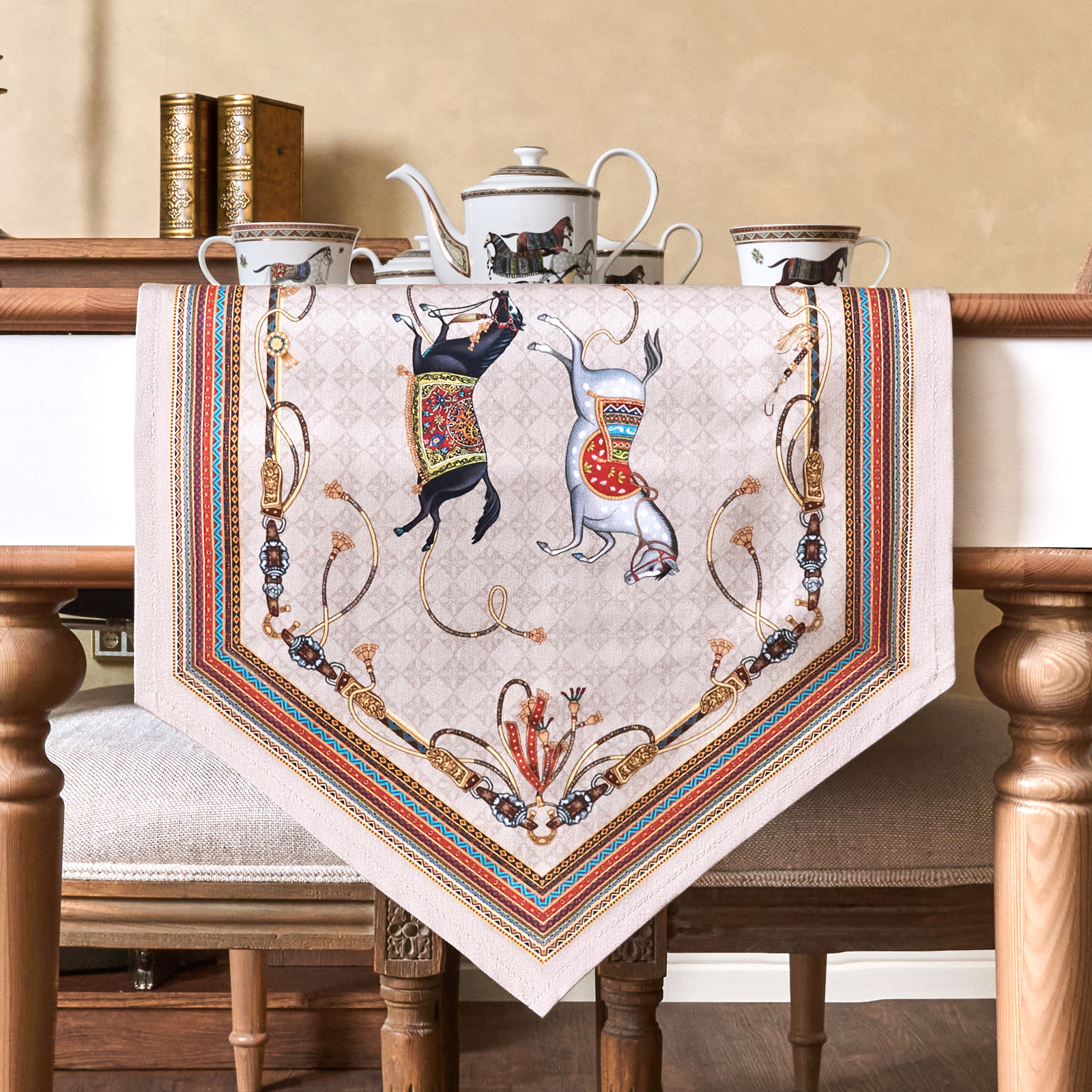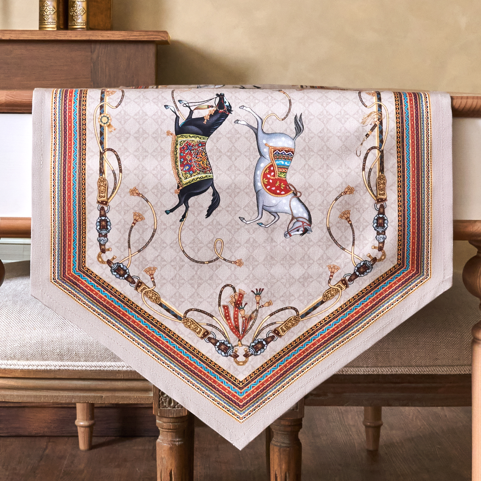 Хорошо комбинируется с однотонными скатертями, посудой в классическом или прованском стиле, текстилем в зимней палитре. Подходит для дома, дачи, загородного коттеджа. Размер 45×300 см идеально подойдёт для прямоугольных и овальных столов, позволяя создать аккуратный и завершённый образ сервировки.