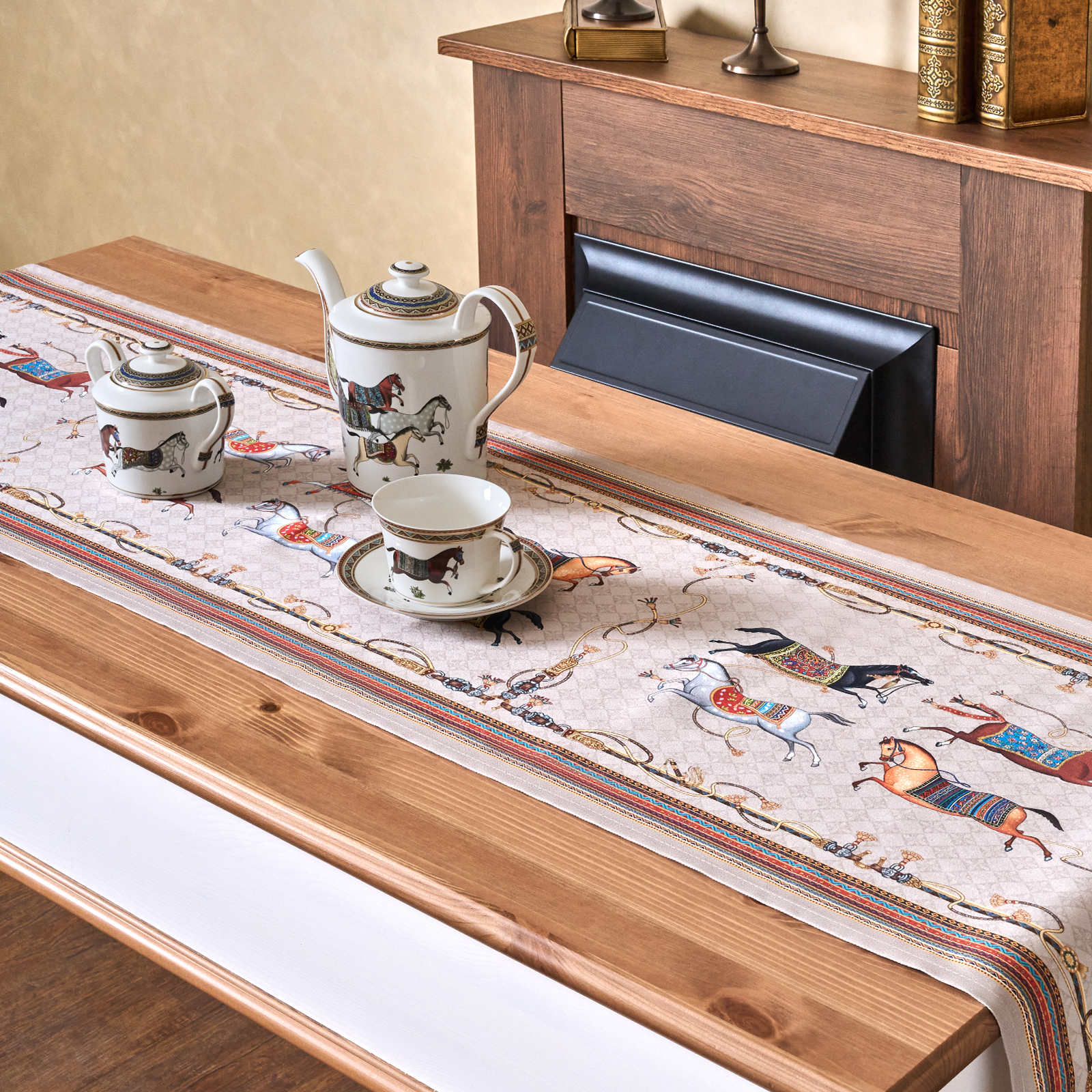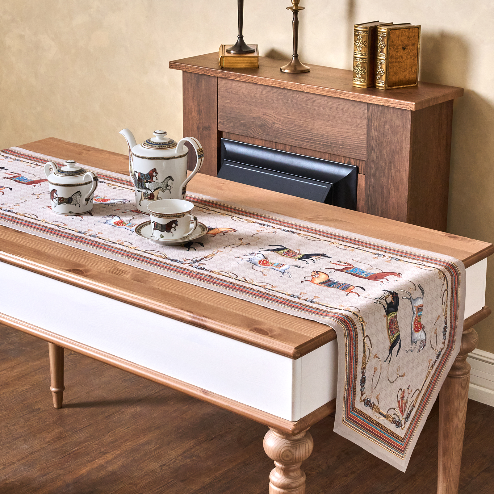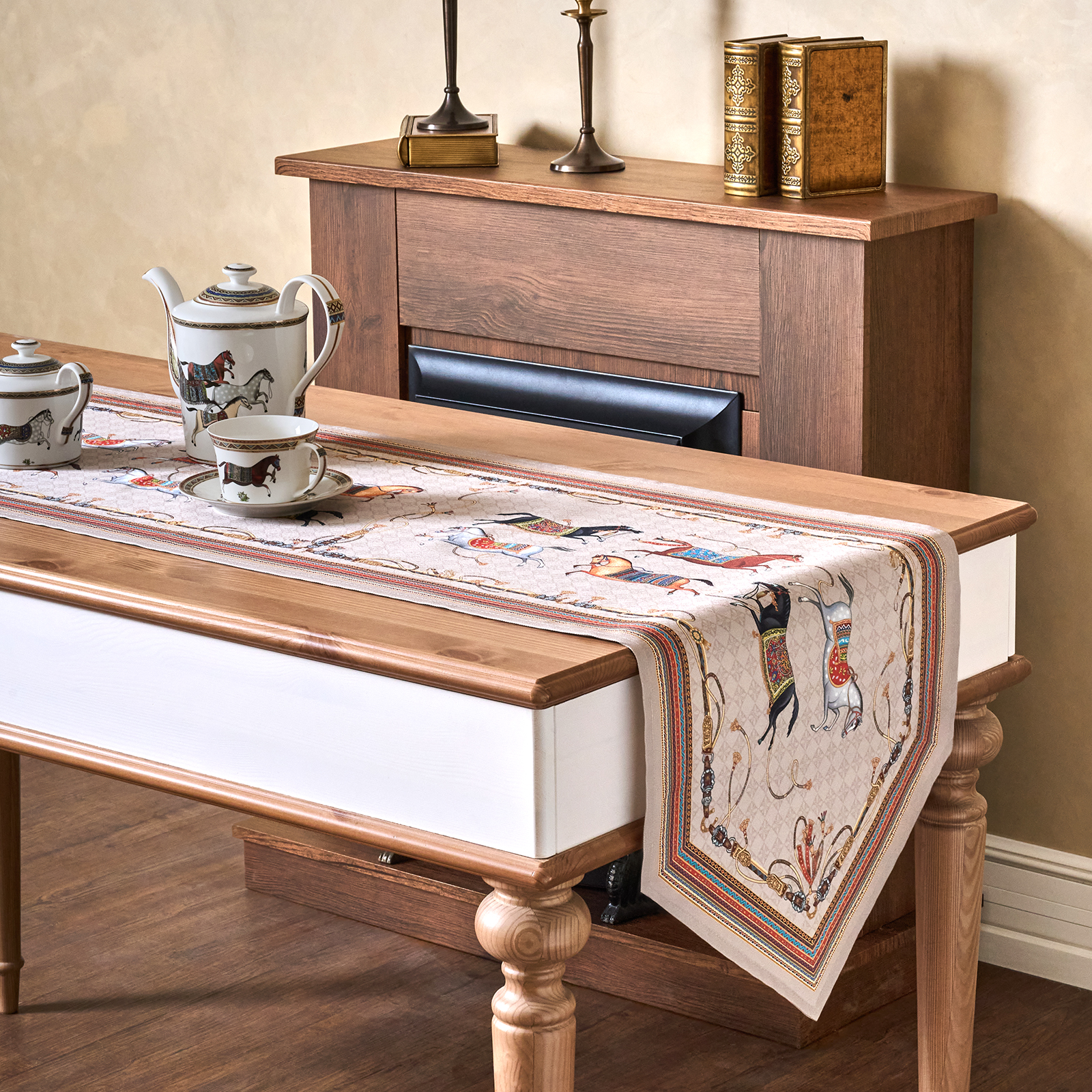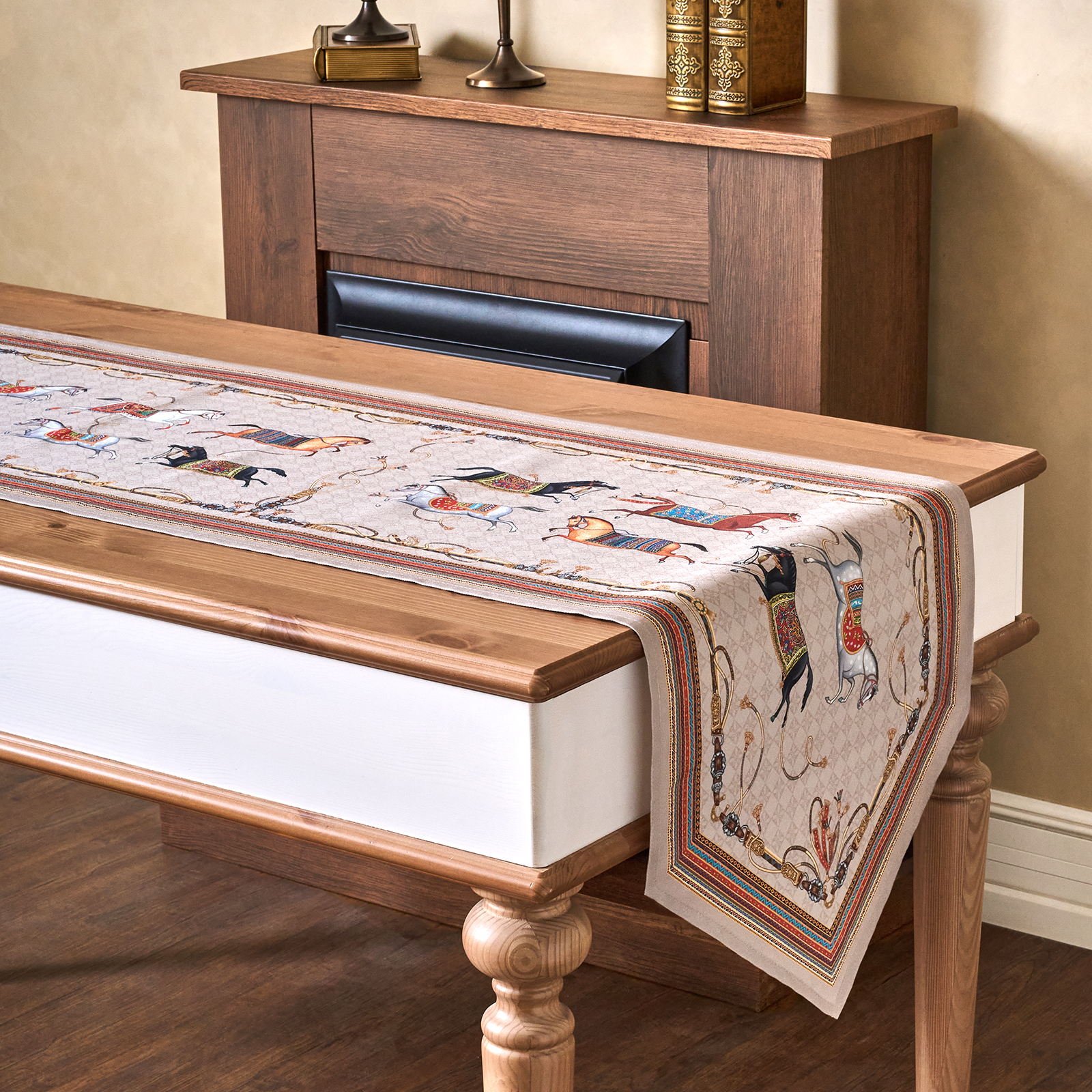 Хорошо комбинируется с однотонными скатертями, посудой в классическом или прованском стиле, текстилем в зимней палитре. Подходит для дома, дачи, загородного коттеджа. Размер 45×400 см идеально подойдёт для прямоугольных и овальных столов, позволяя создать аккуратный и завершённый образ сервировки.